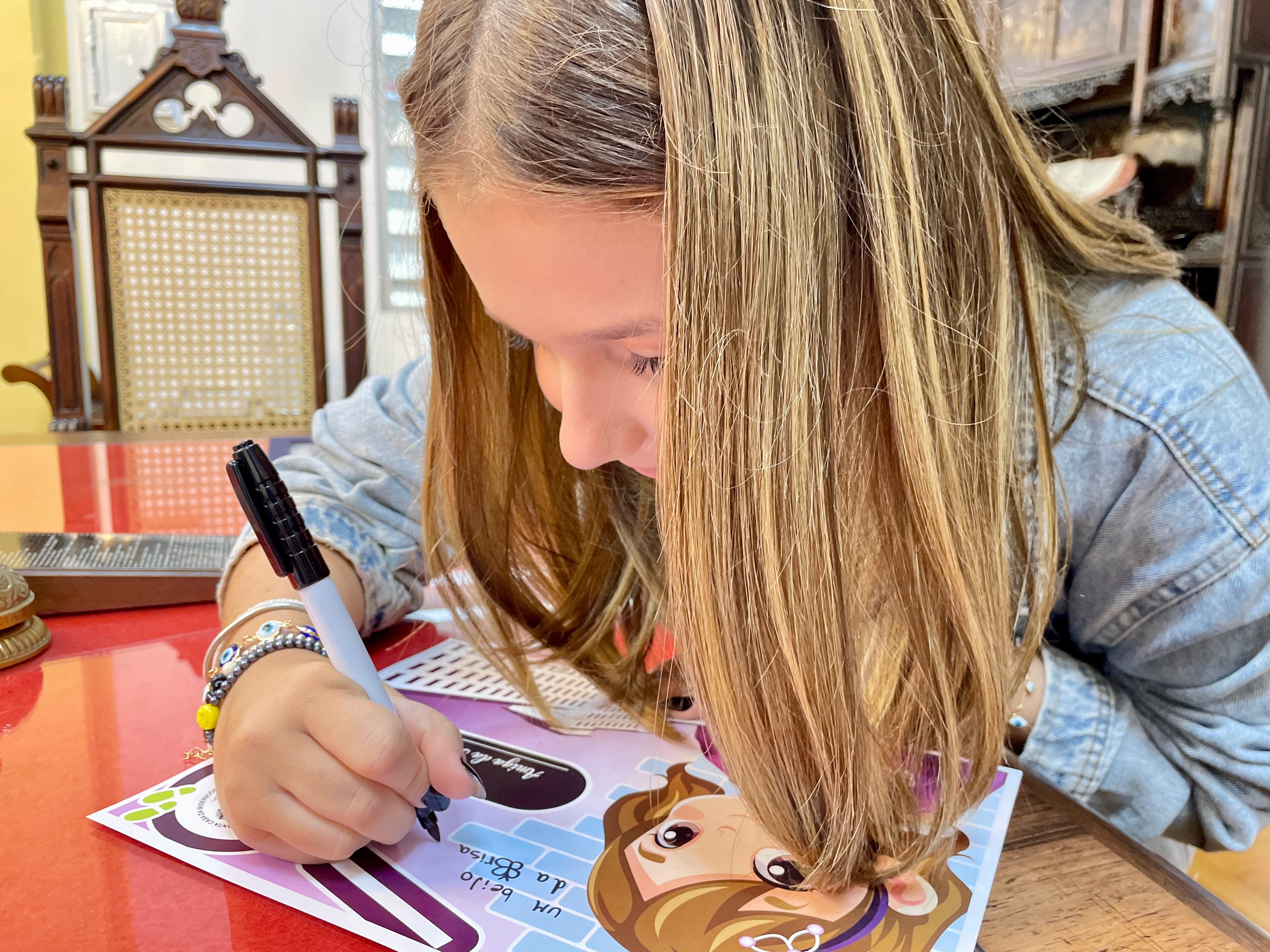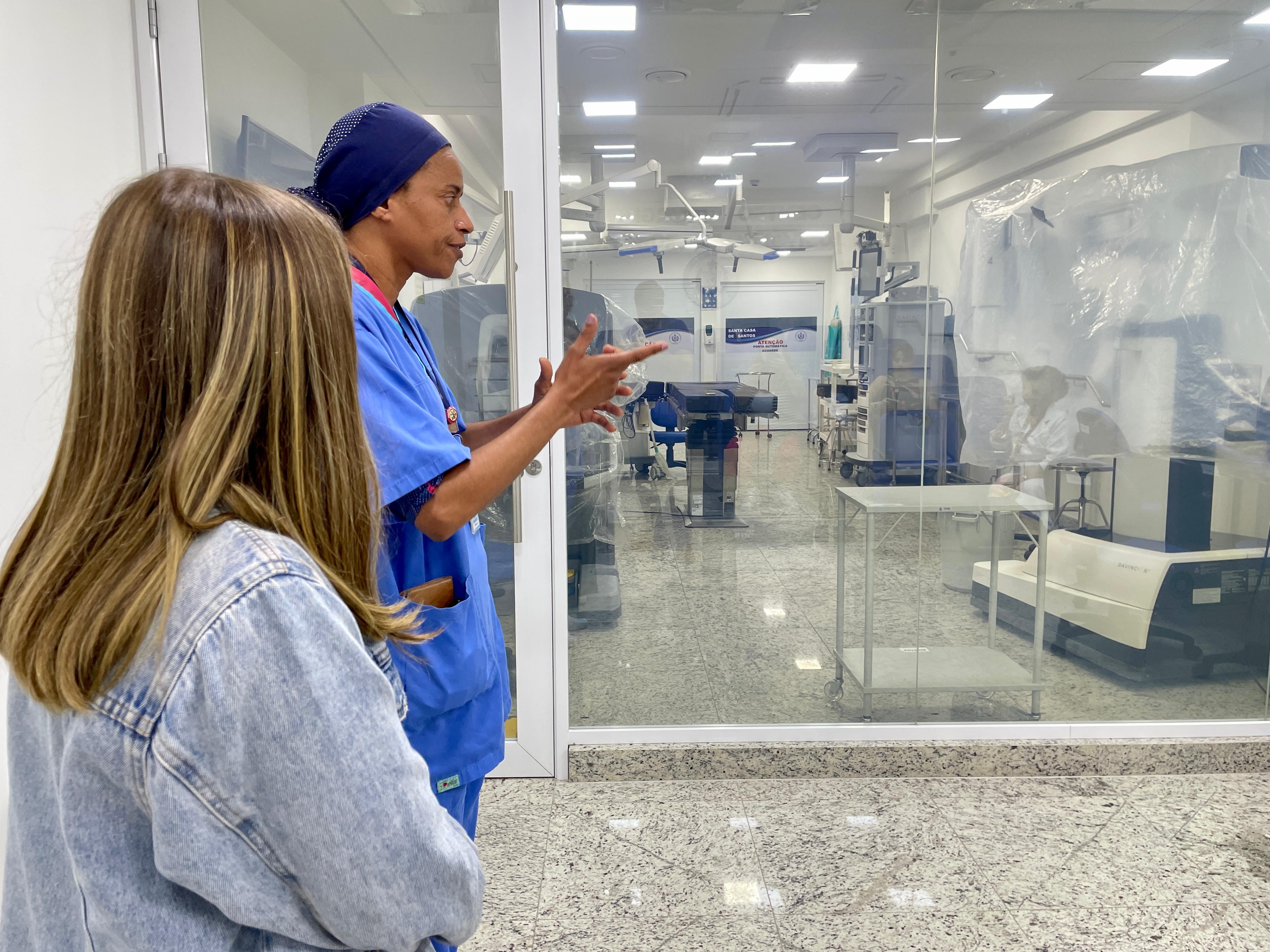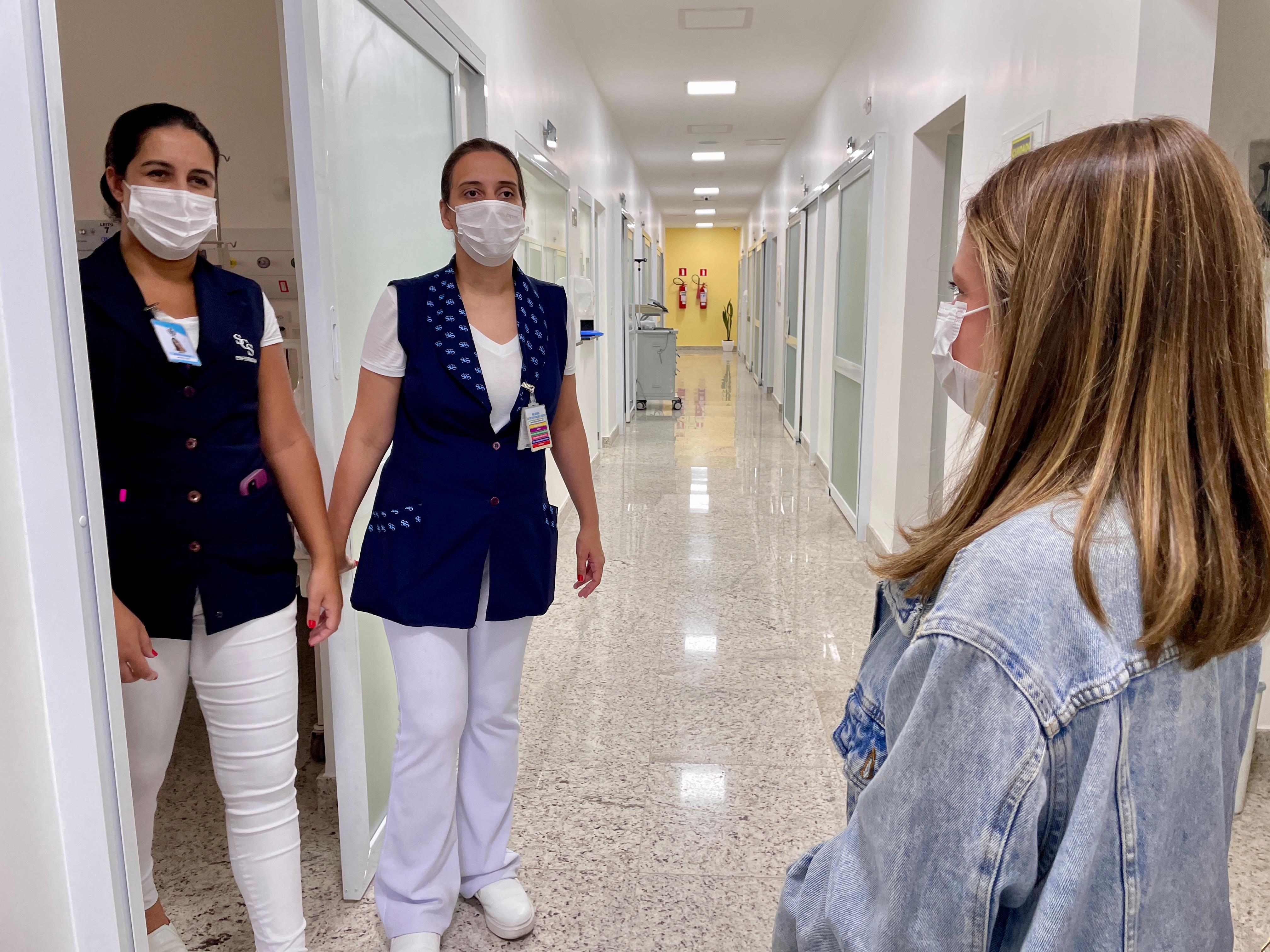 Cléo Faria, a Brisa da série infantil DPA, visita a Santa Casa de Santos