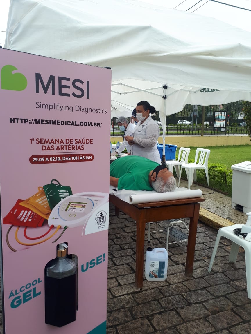 Esta foi a primeira vez que este tema foi abordado em uma campanha no país. Em parceria com a MESI Medical, a Santa Casa de Santos trouxe um equipamento da Eslovênia, inédito no Brasil, e o único que detecta bloqueio de artérias em apenas 1 minuto. Em ação organizada pelo hospital, a população teve a oportunidade de realizar o exame, que consiste na medição do índice tornozelo-braquial, e os resultados foram entregues na hora. Todos que tiveram alguma alteração também receberam orientações da equipe de Cirurgia Vascular da Santa Casa de Santos. Tudo gratuito!