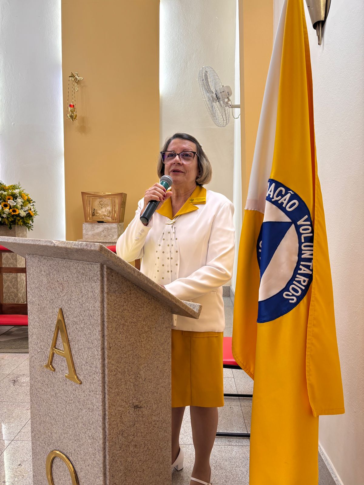 Após a cerimônia, a presidente da AVOSC, Aparecida Regina Ramos Santos, ao lado da voluntária Maria Emília, realizou a entrega das tradicionais estrelas de horas trabalhadas e das homenagens aos voluntários, em reconhecimento à dedicação e ao compromisso de cada um com a causa.