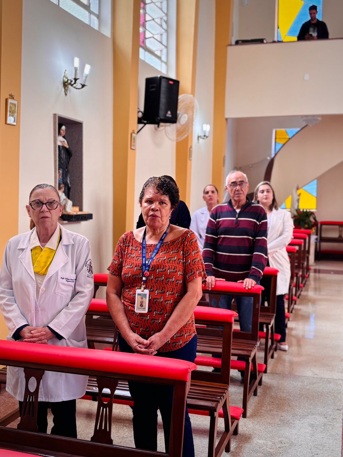 O grupo, carinhosamente conhecido como “Amarelinhos”, é o mais antigo em atividade na instituição, prestando serviços voluntários desde 1957. A celebração foi conduzida pelo capelão da Santa Casa, Padre Denilson, e contou com a presença do Diretor de Infraestrutura e Apoio, Bruno Dantas.