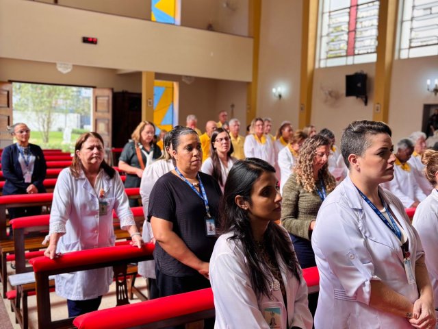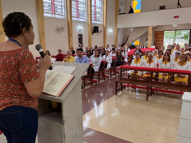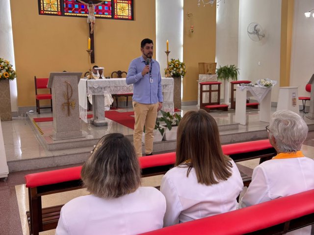 Durante a homilia, Padre Denilson ressaltou o papel essencial dos voluntários no acolhimento aos pacientes e familiares. “Os ‘Amarelinhos’ são parte da história da Santa Casa. Eles estão presentes nos momentos de dor e sofrimento, oferecendo uma palavra amiga ou até mesmo um abraço”, destacou.