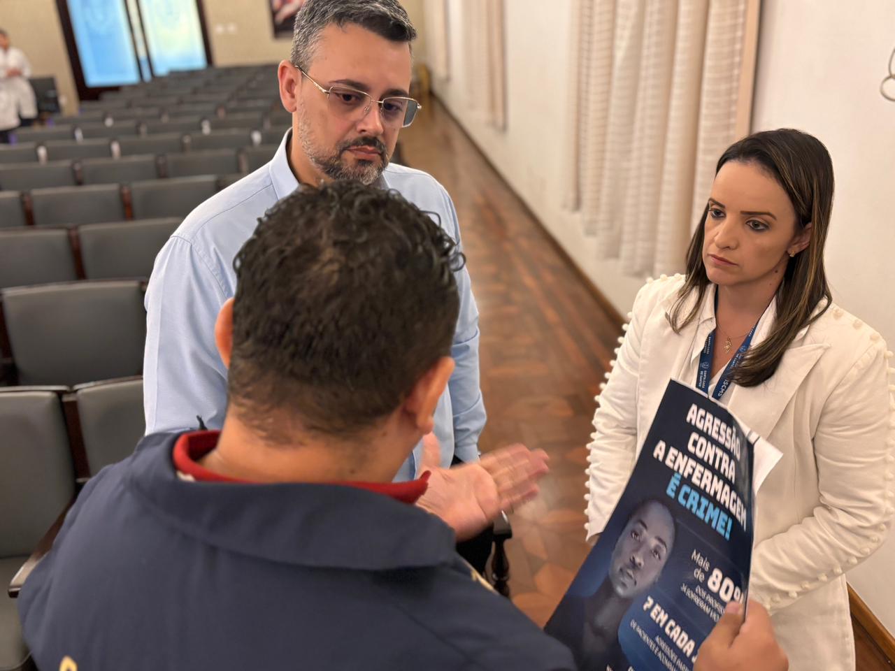 Durante o encontro, o Coren-SP apresentou uma palestra sobre violência contra a equipe de enfermagem, tema essencial para a categoria. A Santa Casa de Santos já atua preventivamente nessa frente. Há mais de seis meses, a Instituição implantou um protocolo específico para acolher, orientar e proteger seus profissionais em situações de violência, reforçando o compromisso com um ambiente de trabalho seguro.