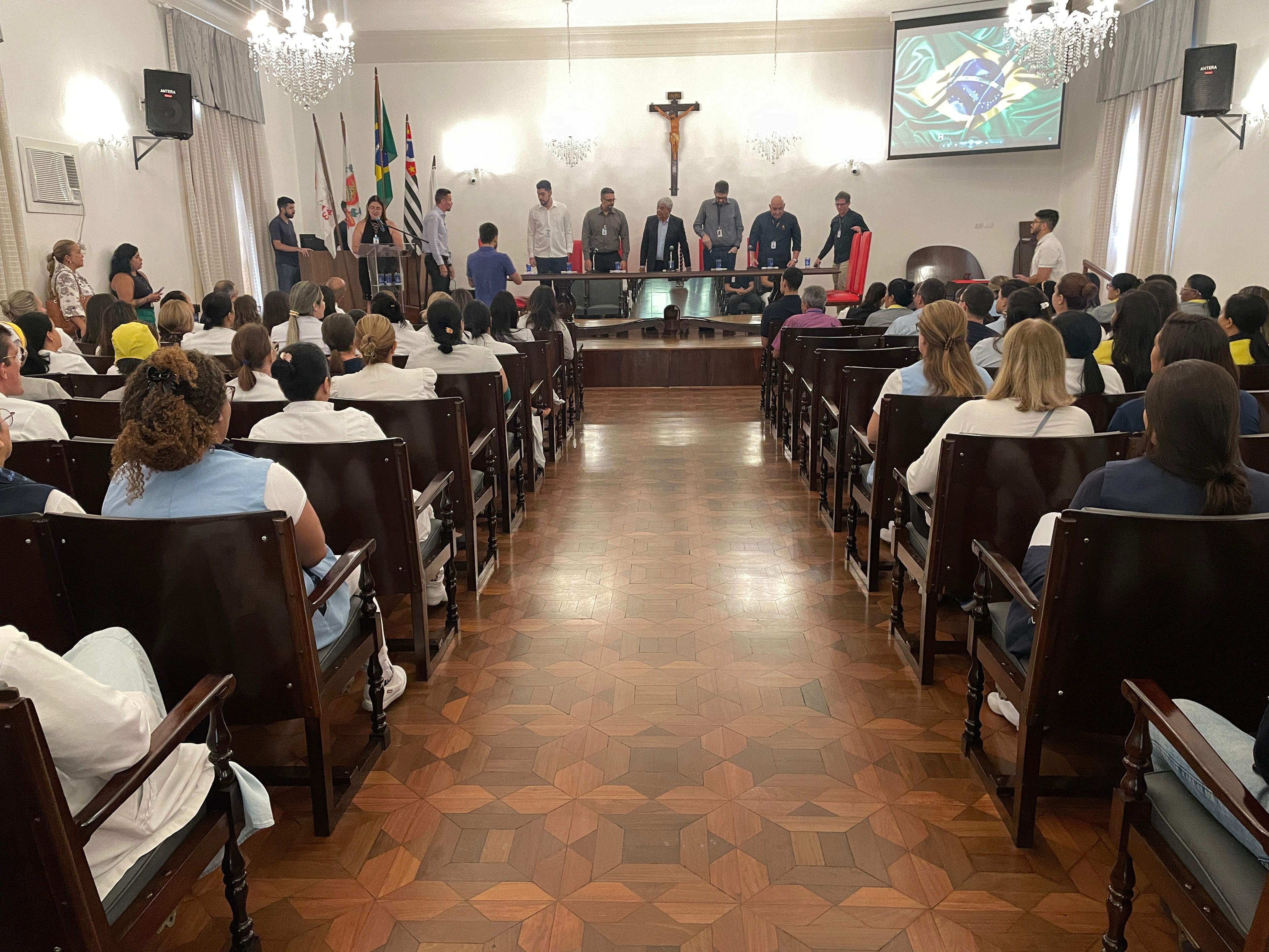 A SIPAT 2025 – Semana Interna de Prevenção de Acidentes de Trabalho da Santa Casa de Santos já começou e, no 1º dia de programação (24/3), gestores e lideranças prestigiaram a abertura oficial realizada pelo vice provedor, Carlos Teixeira Filho, e a palavra do presidente da CIPA gestão 2024/2025, Luiz Lima.