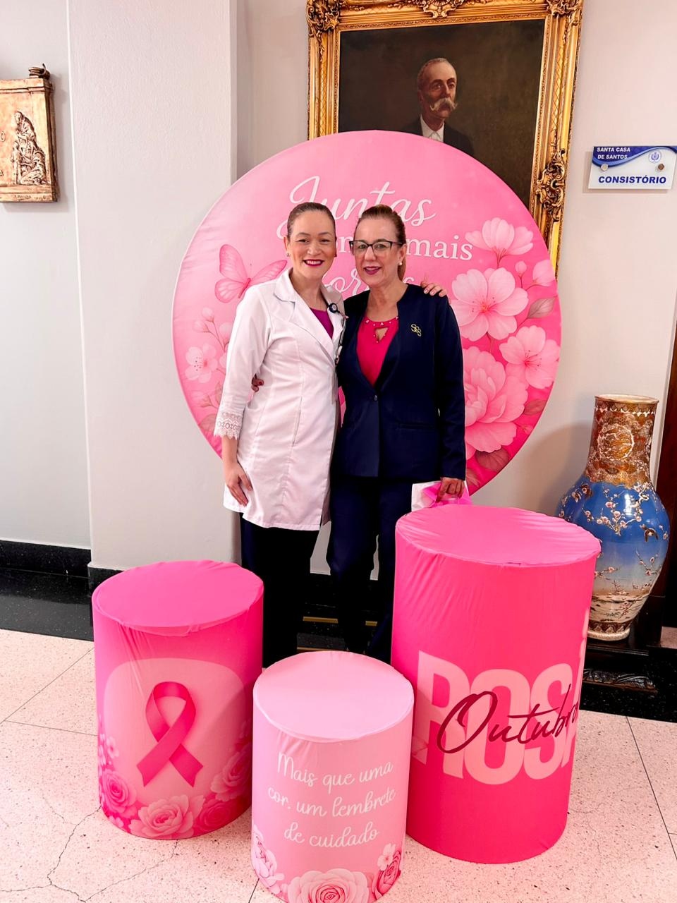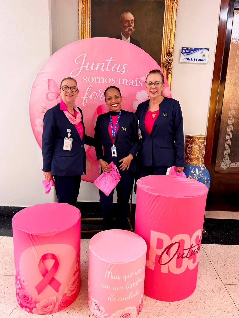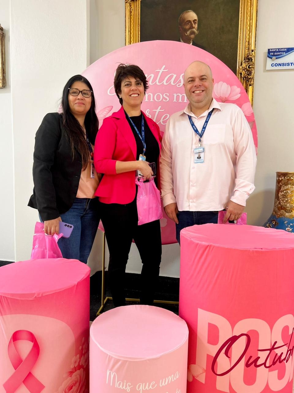 Durante todo o evento, os colaboradores da Santa Casa vestiram camisetas rosas, demonstrando apoio à campanha e reforçando a mensagem de conscientização. Muitos também compartilharam o momento em suas redes sociais, marcando o perfil oficial @santacasadesantos, ampliando o alcance da iniciativa.