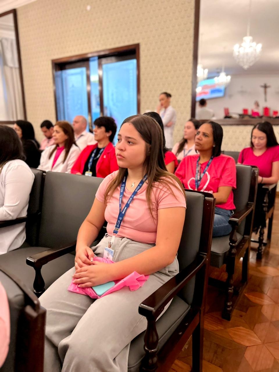 A Santa Casa de Santos promoveu, no dia 21 de outubro, no Consistório, o Dia ‘D’ Outubro Rosa, uma manhã dedicada à conscientização sobre a prevenção do câncer de mama e temas relacionados à saúde da mulher. O evento reuniu colaboradores e equipe multiprofissional em uma programação especial com palestras, música e momentos de integração.
