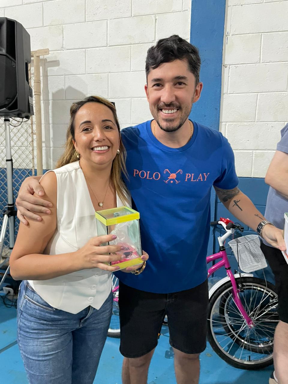 Foram sorteadas 2 bicicletas, cerca de 20 aquários com peixe beta e outros diversos brindes.