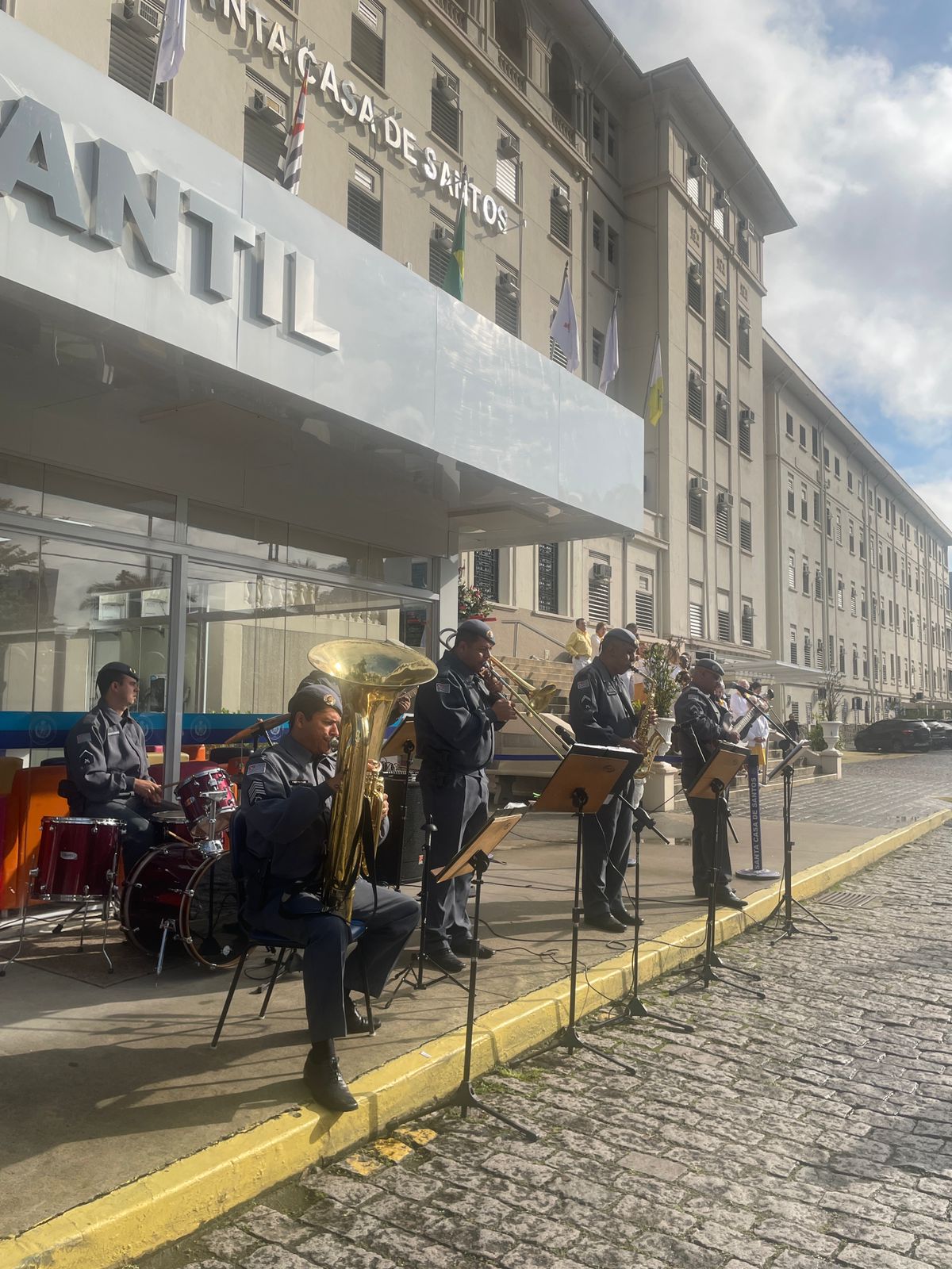 O Dia de Santa Isabel, padroeira das Santas Casas, foi celebrado no dia 4 de julho, com programação especial na Santa Casa de Santos, seguindo a tradição da instituição. Na manhã da última sexta-feira, o público se reuniu em frente às escadarias para o Hasteamento das Bandeiras e prestigiar a Banda Regimental de Música do CPI 6, que fez uma excelente apresentação com repertório de MPB e animou todos os presentes.