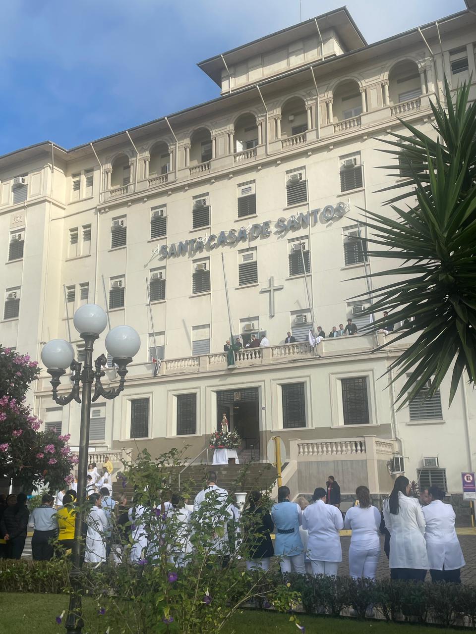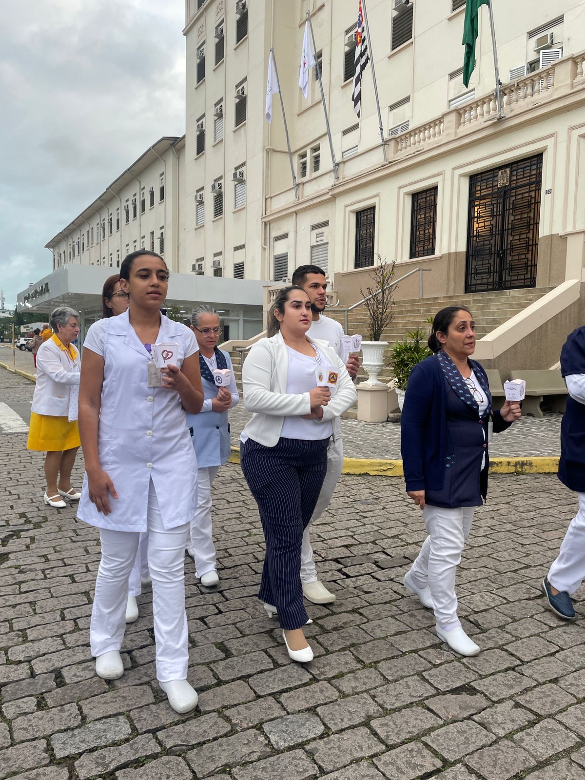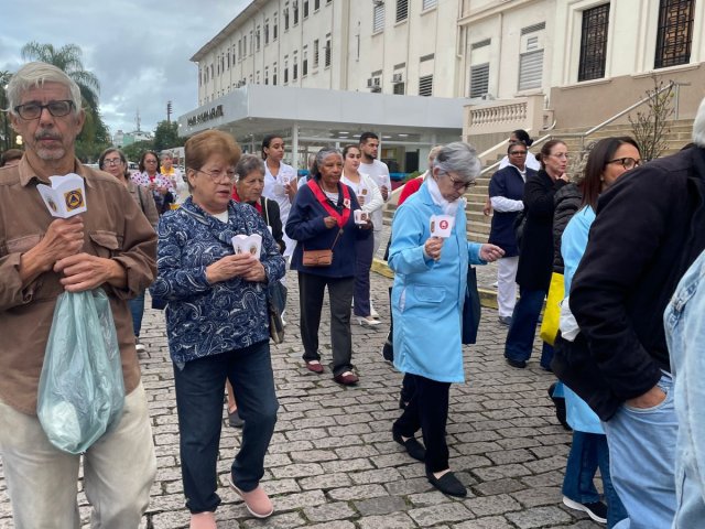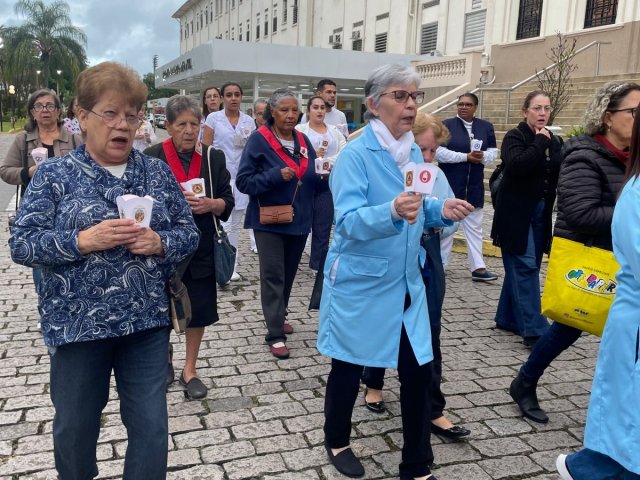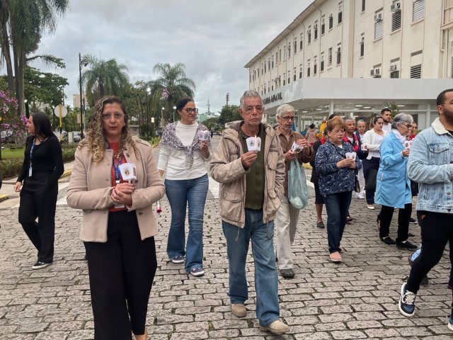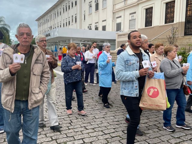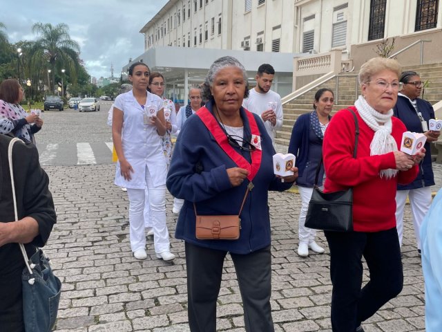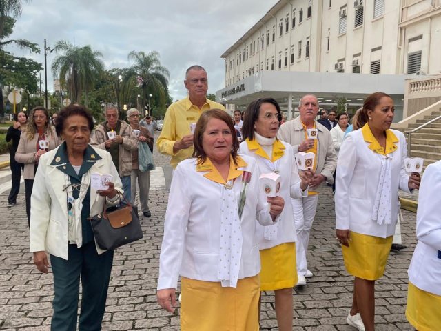 No período da tarde, os voluntários amarelinhos e verdinhos fizeram a distribuição de rosas aos enfermos e, às 16h30, aconteceu a procissão luminosa, saindo da frente da Santa Casa de Santos rumo à Capela Santa Isabel.