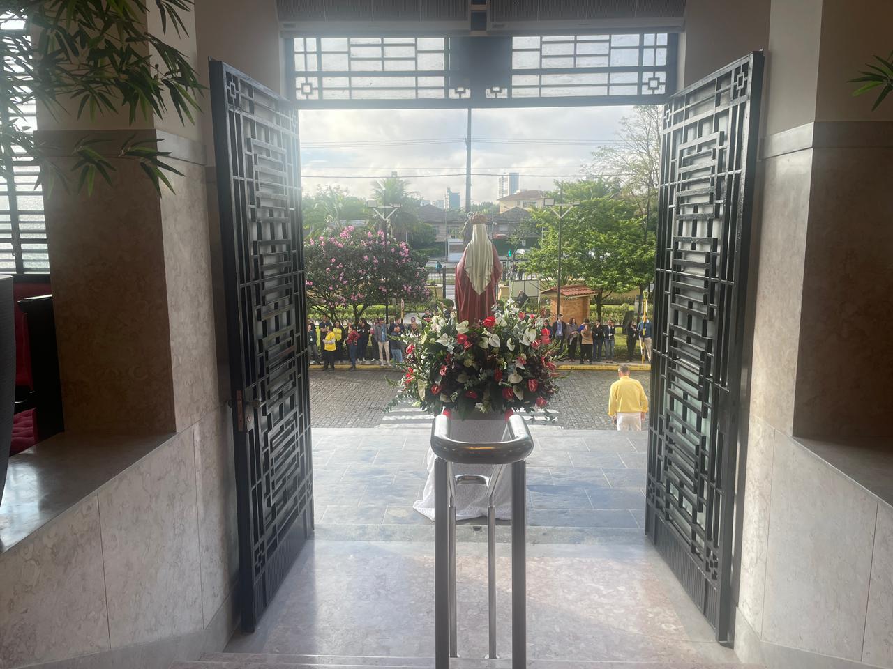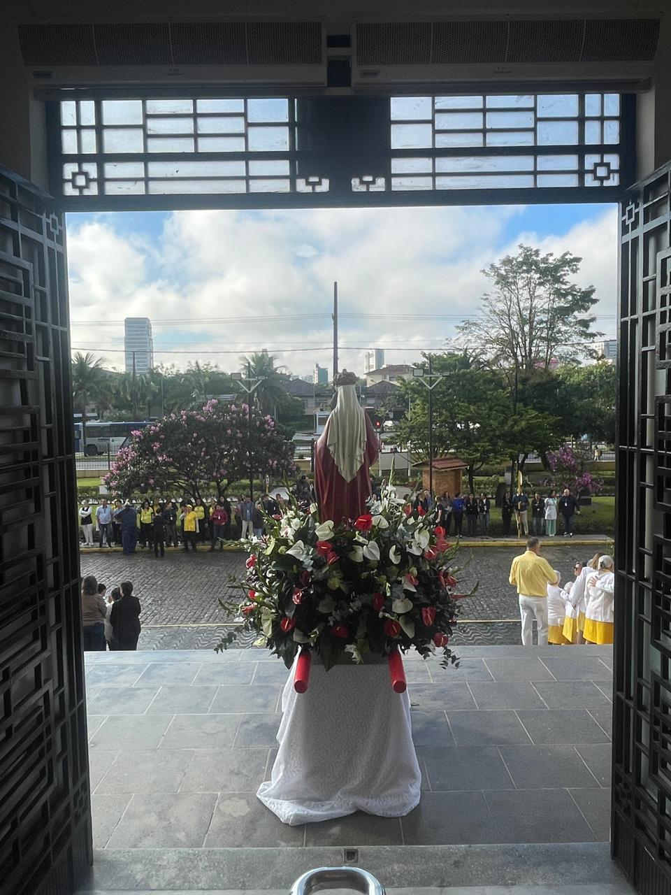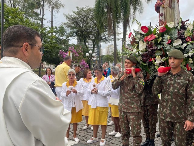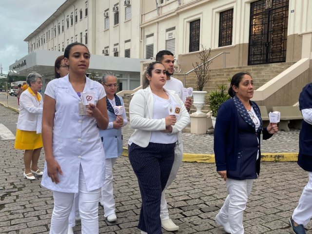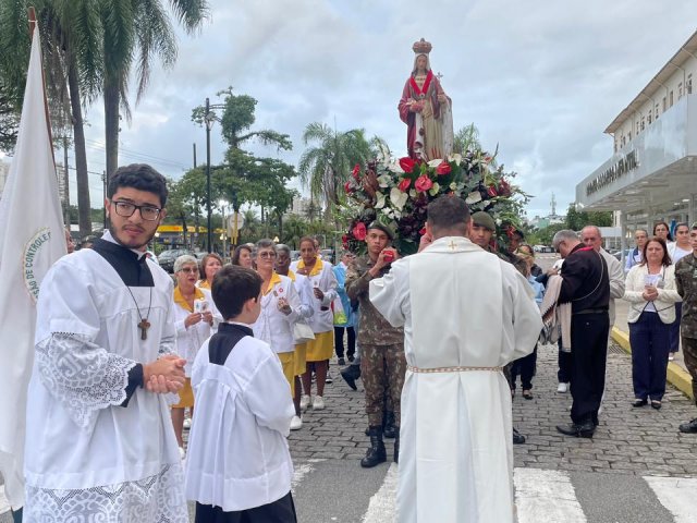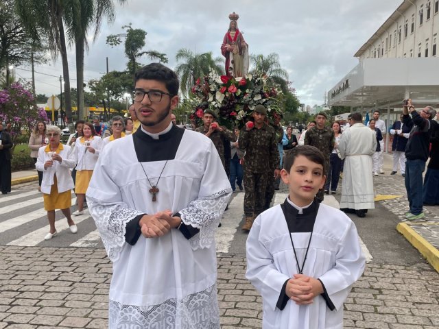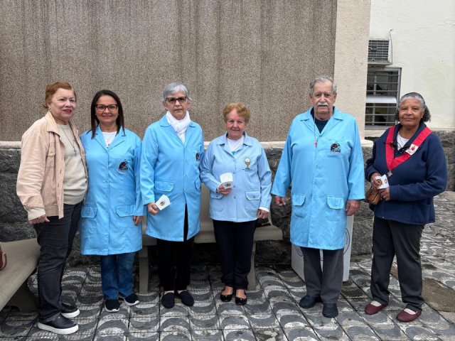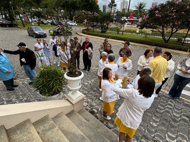 No período da tarde, os voluntários amarelinhos e verdinhos fizeram a distribuição de rosas aos enfermos e, às 16h30, aconteceu a procissão luminosa, saindo da frente da Santa Casa de Santos rumo à Capela Santa Isabel.