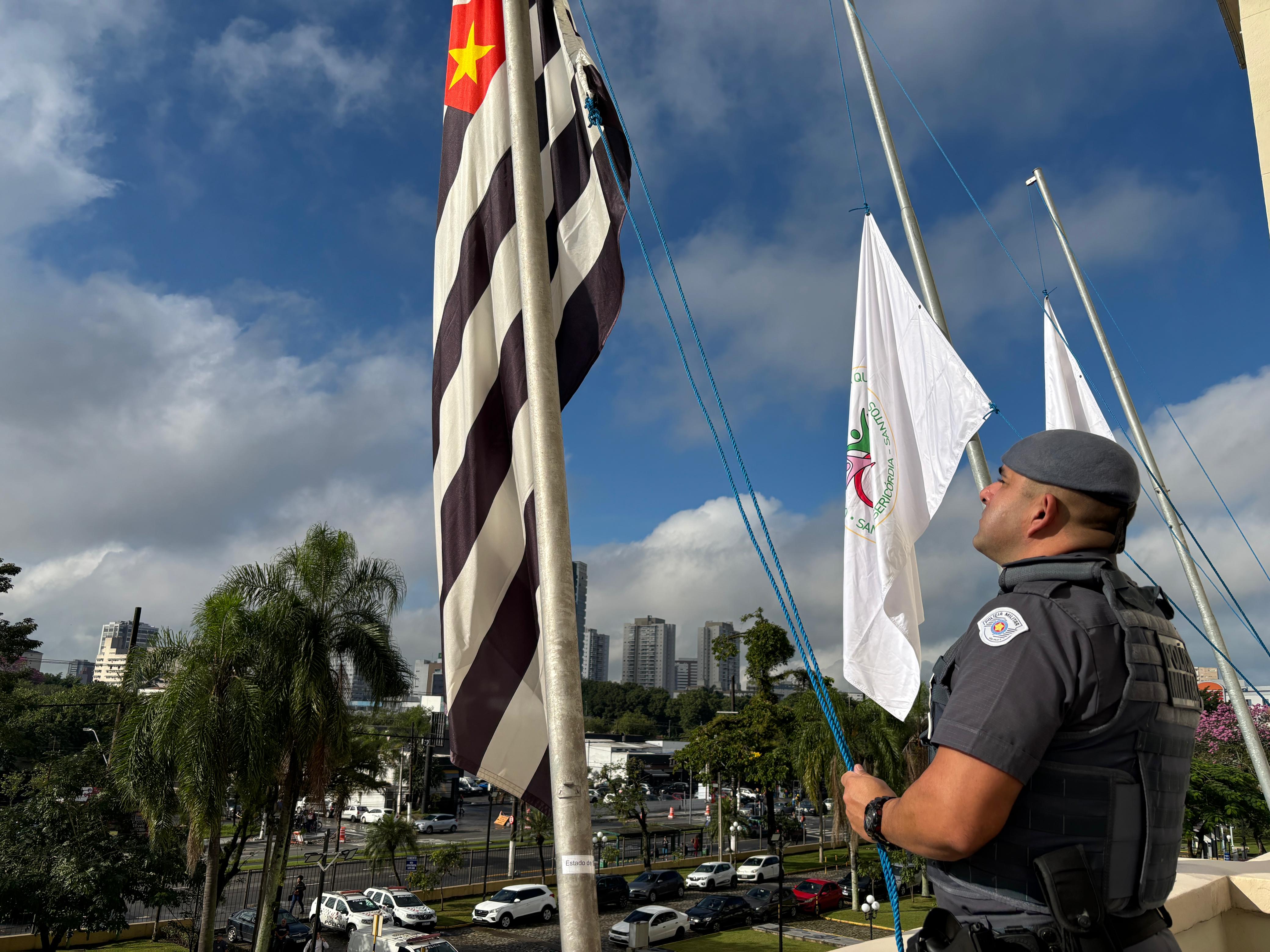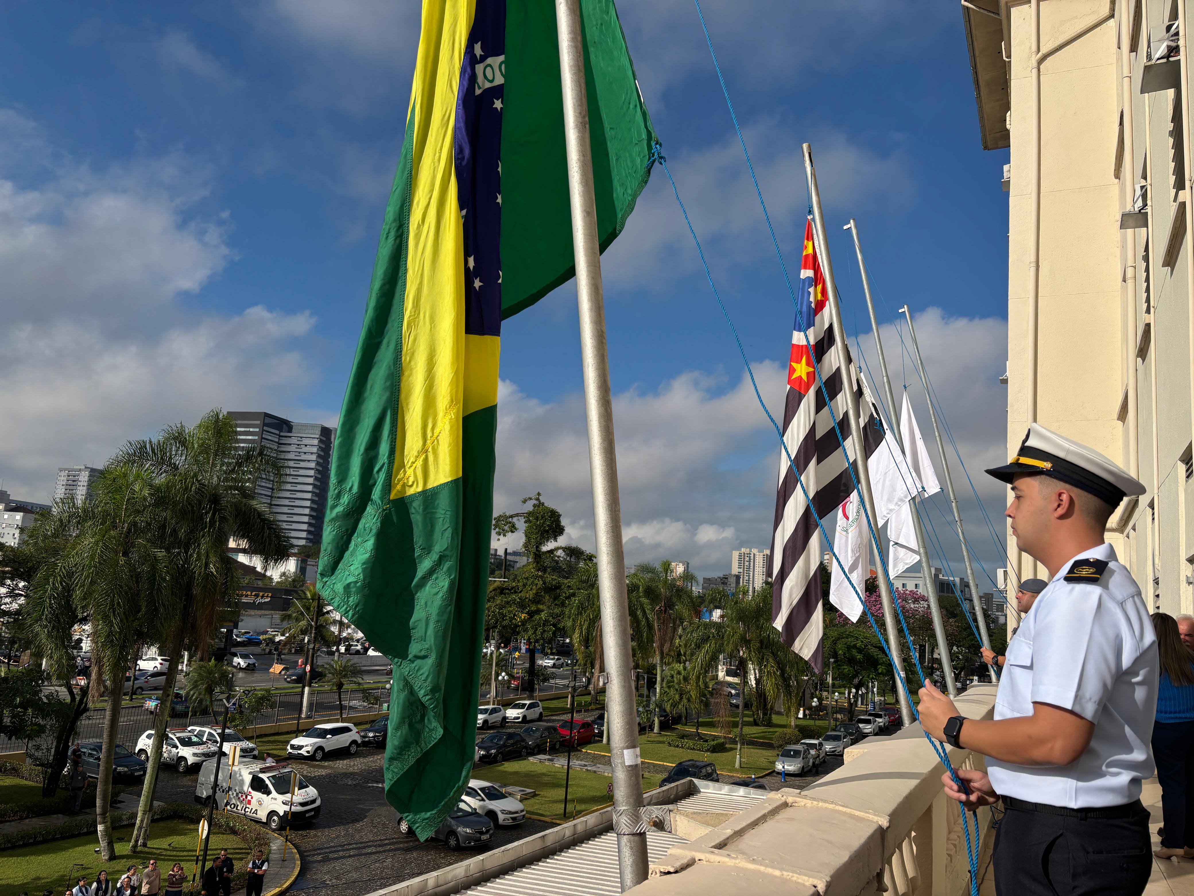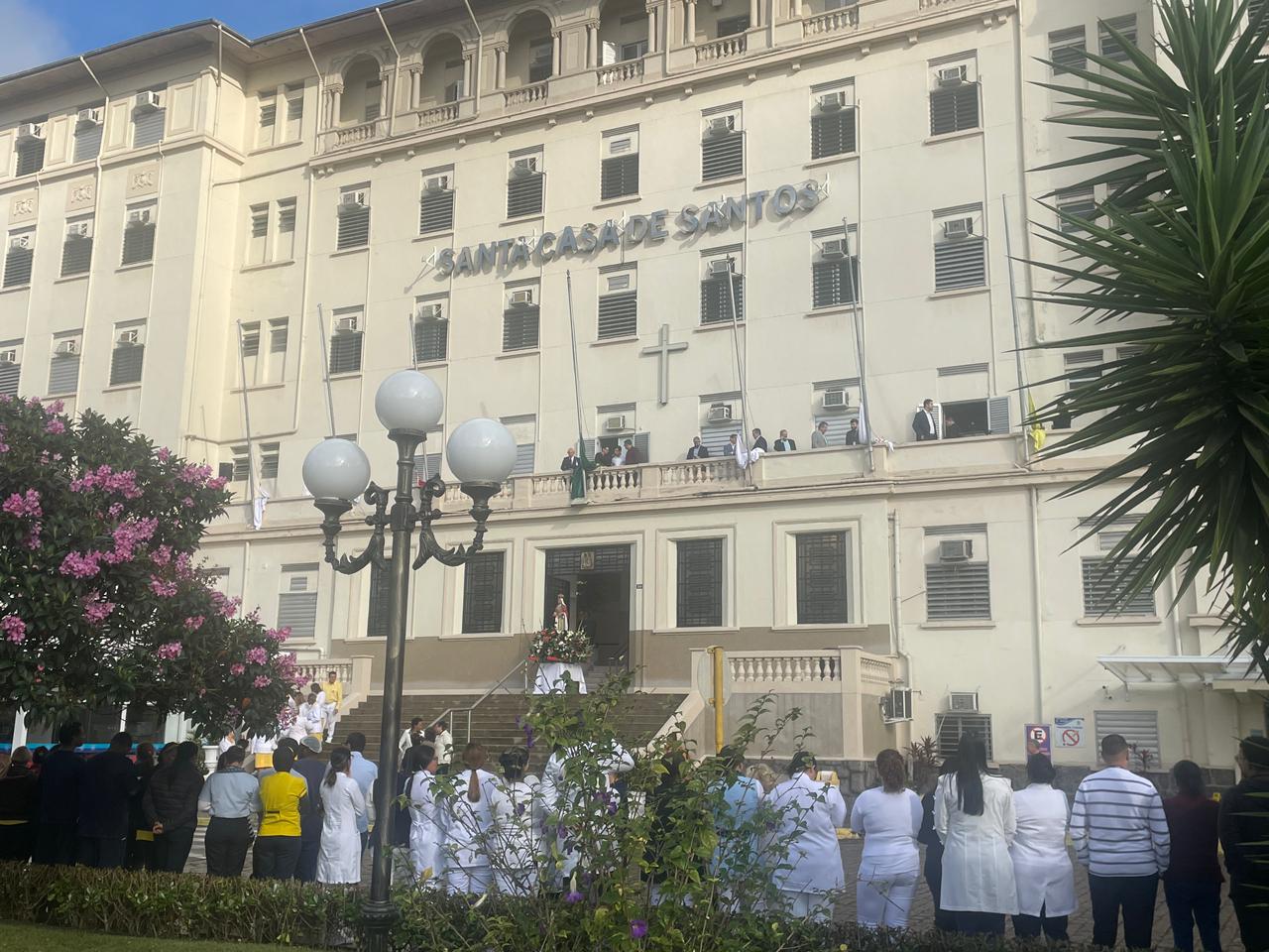 Da sacada da Santa Casa, gestores e membros da Mesa Administrativa realizaram o hasteamento das bandeiras, conforme segue: Representando o Capitão de Mar e guerra, o 2º Tenente Victor Hugo Santos Vaz Leite (Bandeira Nacional); Tenente João Batista (Bandeira do Estado de São Paulo); representando a prefeitura de Santos, o assessor da Secretaria de Saúde, Braz Antunes Mattos Neto (Bandeira de Santos); o vice-provedor Carlos Teixeira Filho (Bandeira da Santa Casa); Enfª Rita Rocha (Bandeira da Enfermagem); Ana Carolina Costa (Bandeira da Comissão de Controle da Qualidade) e Maria Emília (Bandeira da AVOSC).