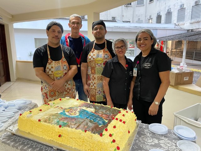 Na programação interna, o almoço comemorativo contou com um cardápio especial, preparado totalmente pelo DND (Departamento de Nutrição e Dietética). Pernil ao molho de vinho, farofa de cebola e salpicão.