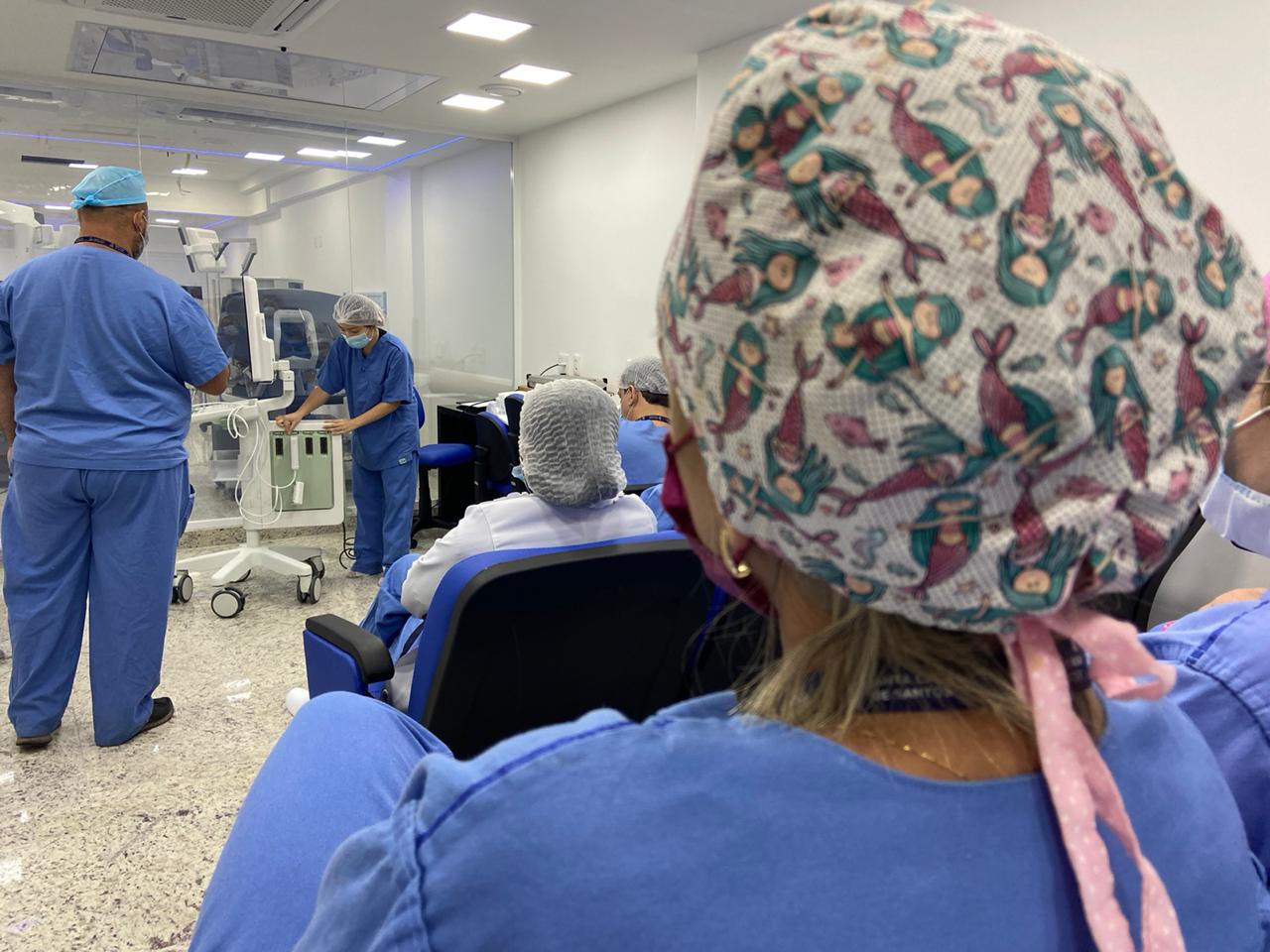 Cerca de 25 profissionais, entre equipe da robótica, médicos e enfermeiros, fizeram um dia de treinamento, na última semana, e se prepararam para o início das cirurgias robóticas.