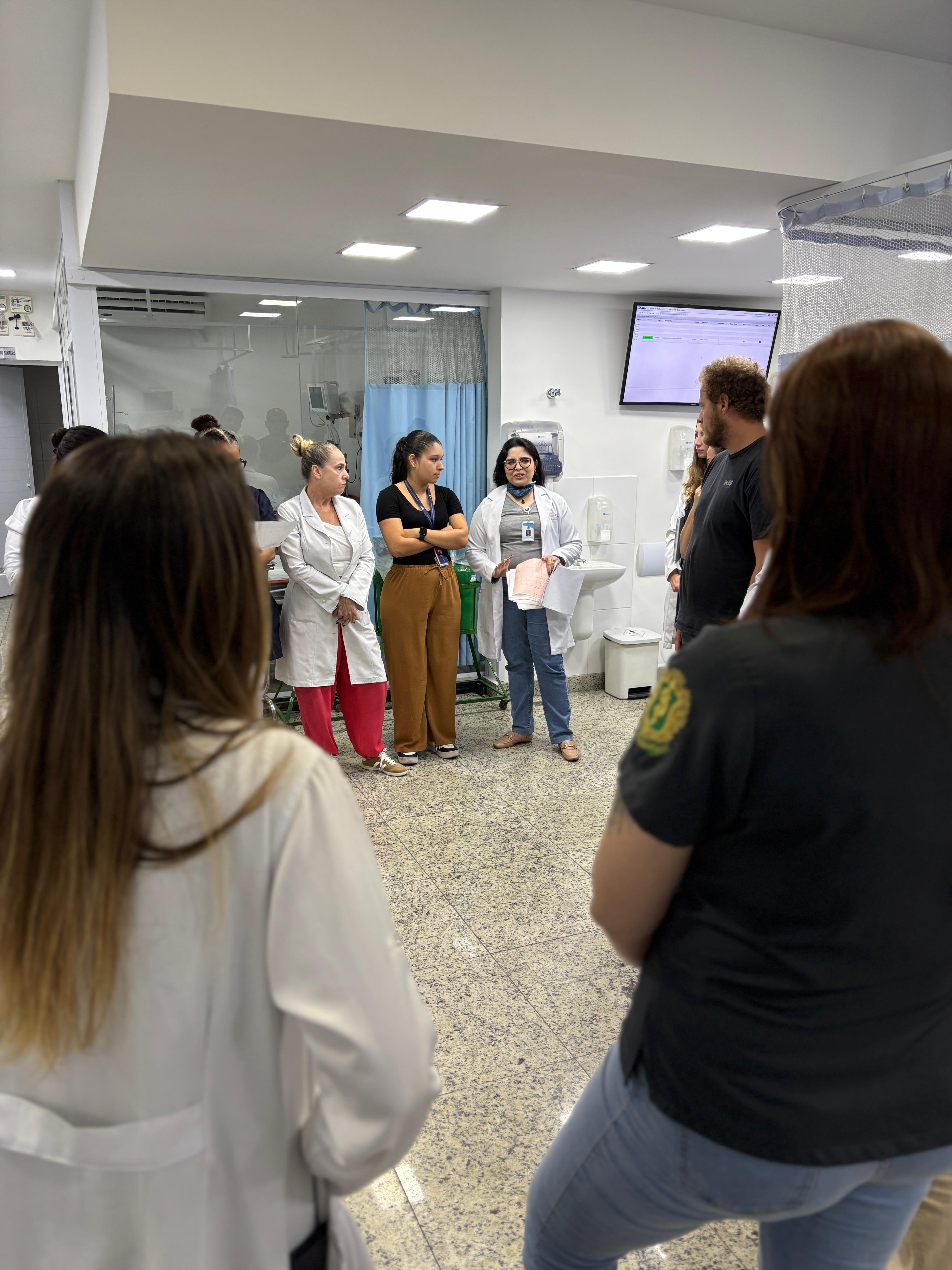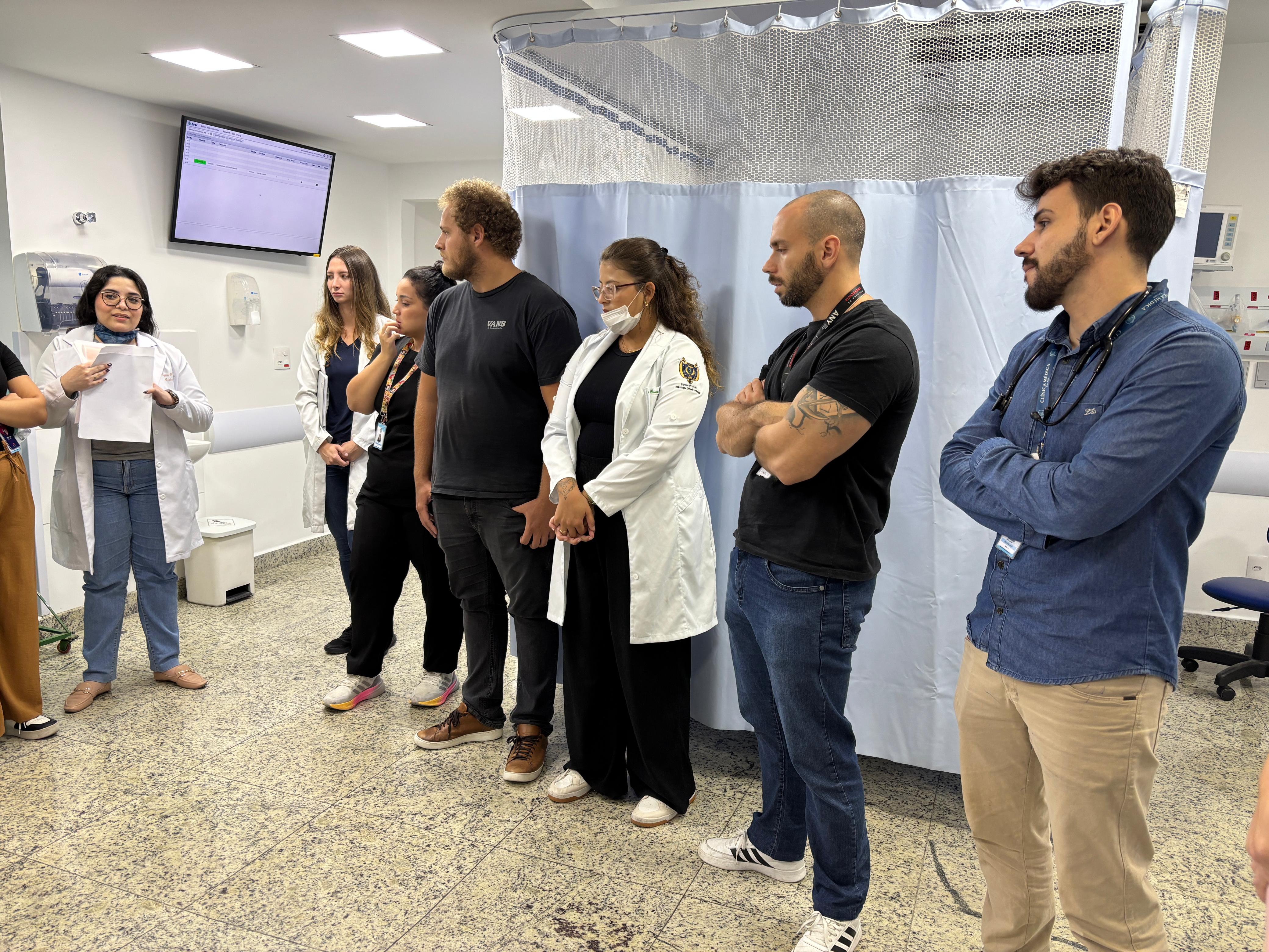 No pronto socorro adulto da instituição, o Safety Huddle é realizado em três períodos (manhã, tarde e noite) e tem como objetivo identificar riscos de segurança iminentes, compartilhar eventos ocorridos, promover a comunicação entre os membros da equipe, e reforçar prioridades e boas práticas. O encontro tem duração máxima de 10 minutos e tem a participação da equipe multidisciplinar, enfermeiros, médicos, lideranças e central de vagas.