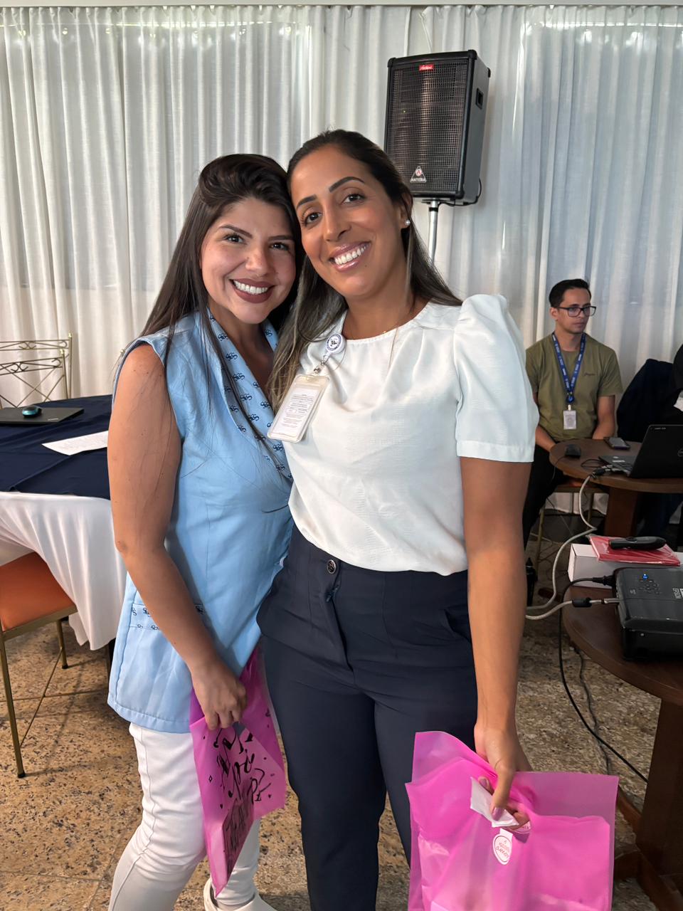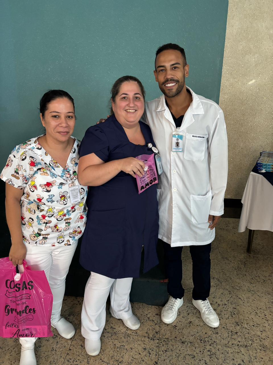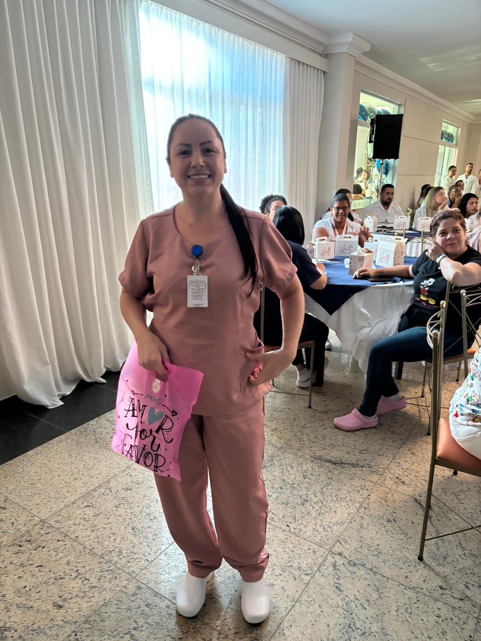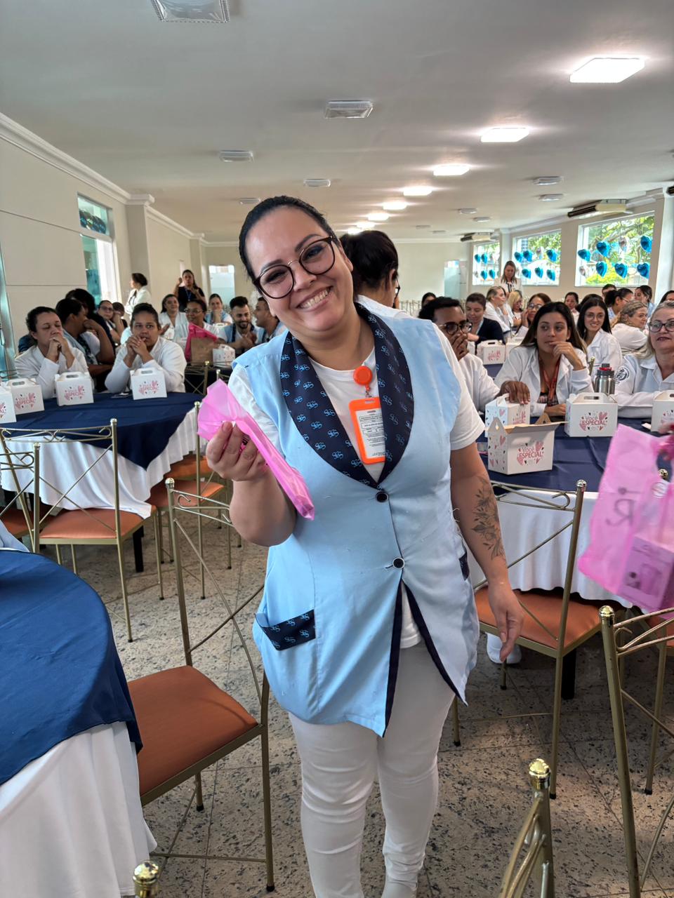 Também foram sorteados diversos brindes e os colaboradores receberam uma caixa com lanche e um porta crachá especial da Semana da Enfermagem.