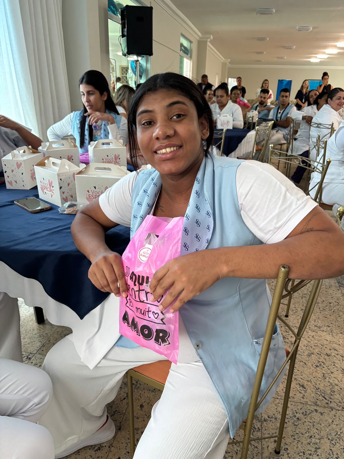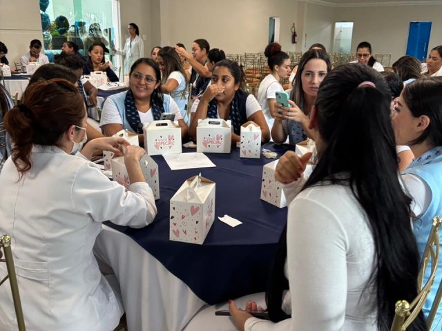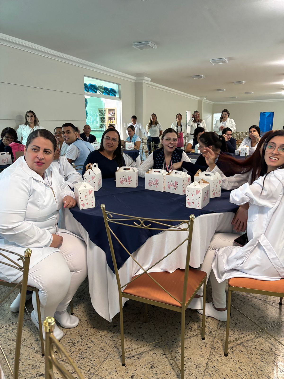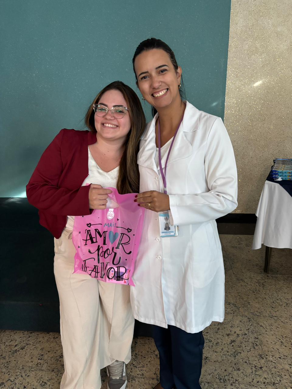 Também foram sorteados diversos brindes e os colaboradores receberam uma caixa com lanche e um porta crachá especial da Semana da Enfermagem.