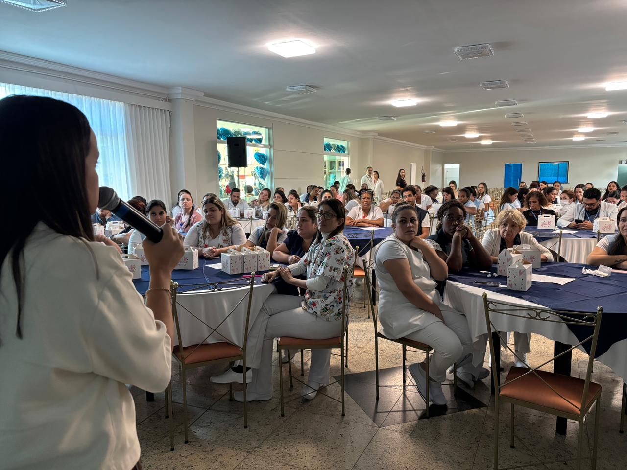 Já na Abrescas, a abertura especial, no período da manhã, contou com apresentação musical dos próprios colaboradores. A Enfª Ester, que atua no 5ºA, cantou duas músicas e agitou o pessoal.