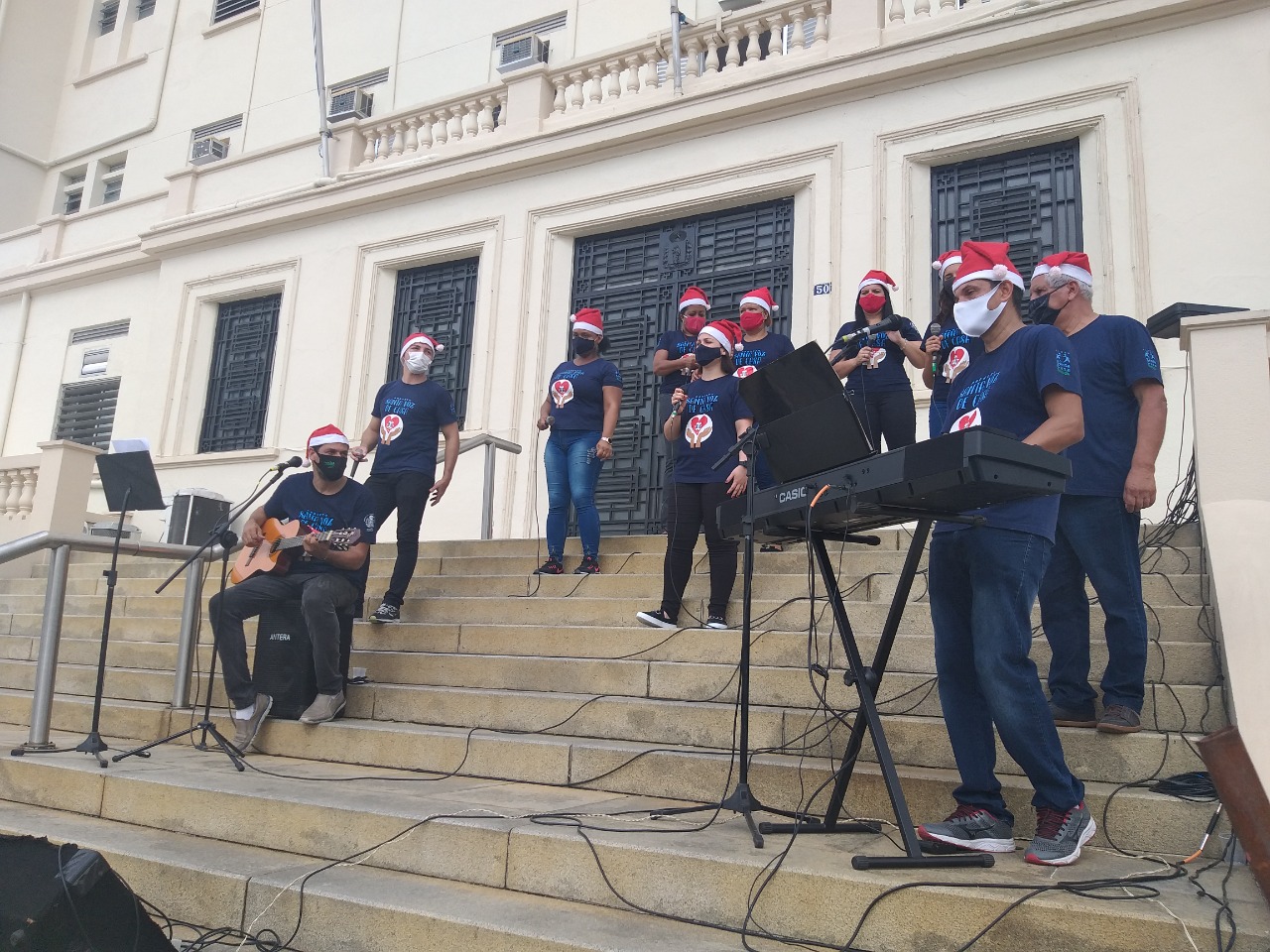 A manhã do dia 18 de dezembro foi marcada por muita emoção, com a apresentação do grupo musical Santa Voz de Casa*, que dedicou todo o repertório aos profissionais de saúde que foram o grande destaque de 2020, na linha de frente do combate à Covid-19.