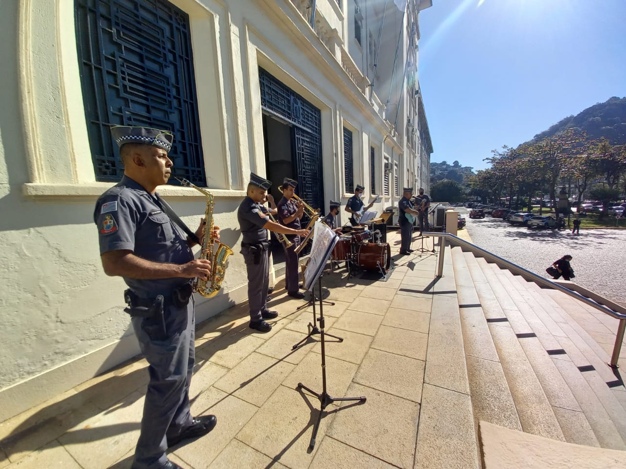 A programação aberta ao público continuou nas escadarias do hospital, com a Banda Regimental de Música do Comando de Policiamento do Interior 6. Com repertório dedicado aos profissionais de saúde, a apresentação “Gratidão em Melodia” animou os profissionais de saúde e as pessoas que passavam pelo local.