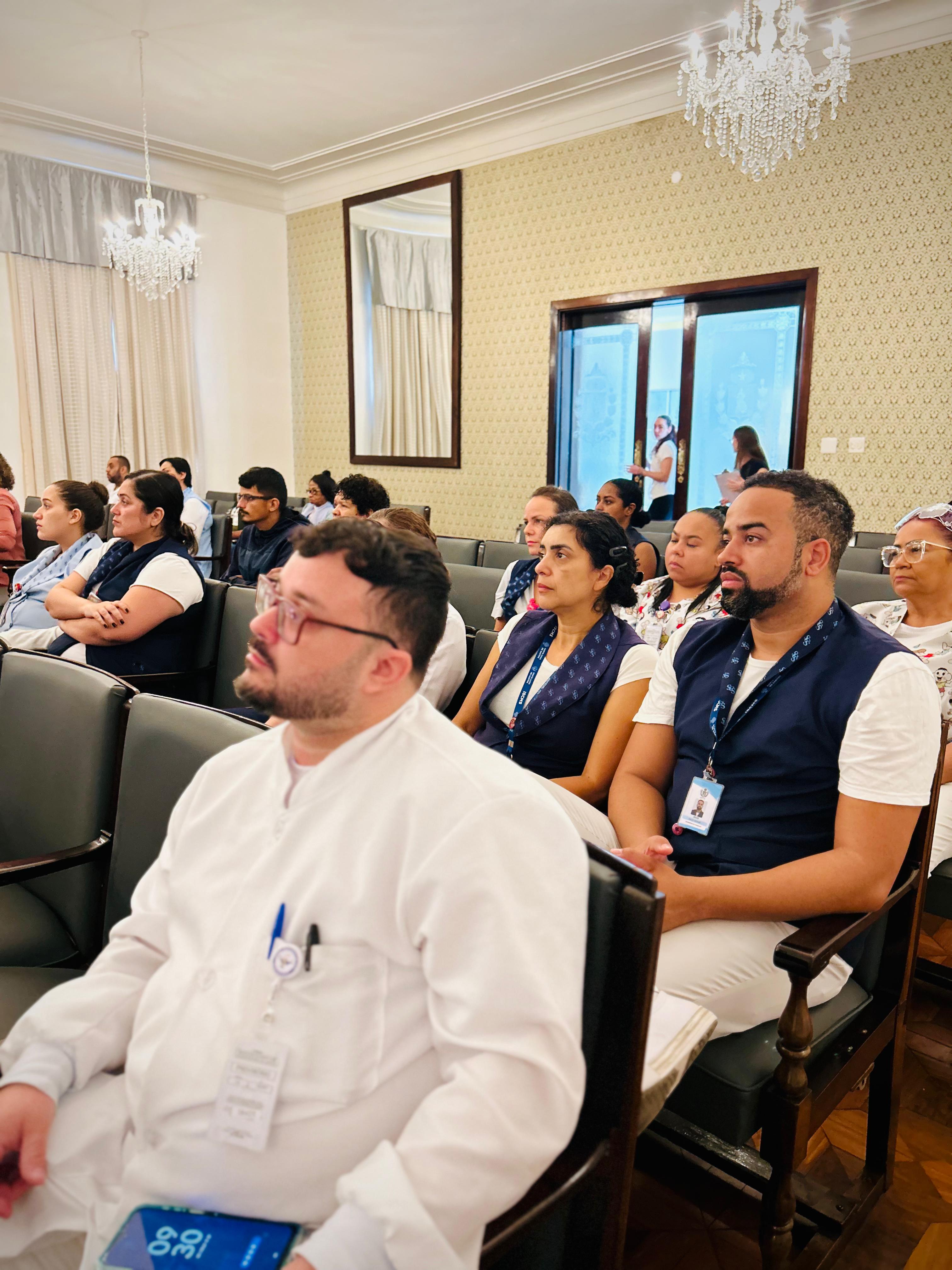 Para finalizar, a equipe do GRSS preparou uma surpresa para os colaboradores: um sorteio especial em que alguns assentos do consistório continham vale-brindes. Os vencedores foram presenteados com pequenos vasos de suculentas, simbolizando o compromisso da Santa Casa de Santos com a sustentabilidade e a preservação ambiental.