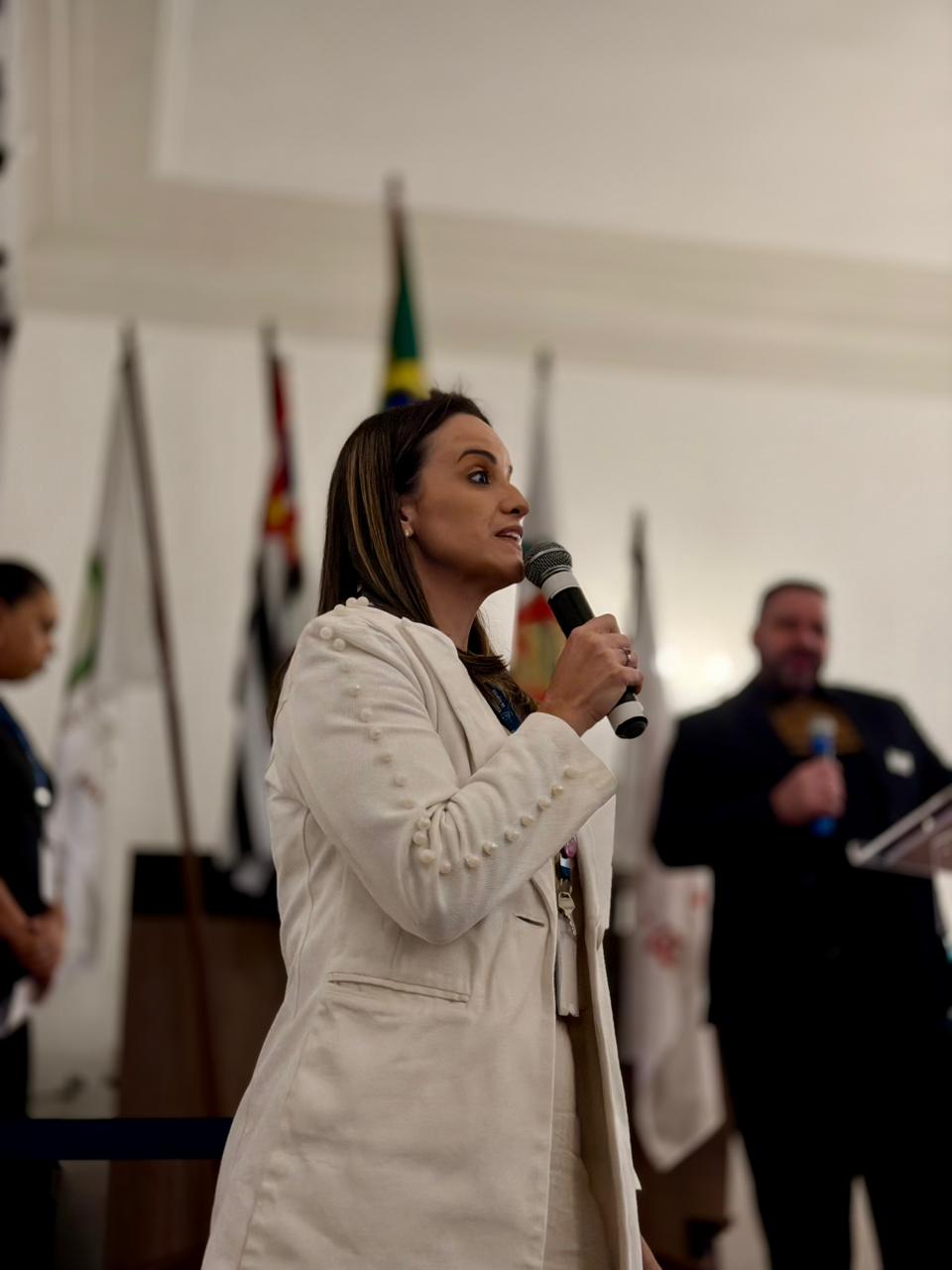 Na sequência, a gestora da Enfermagem, Enfª. Rita Rocha, deu as boas-vindas ao público e ressaltou a importância das boas práticas de enfermagem no dia a dia da assistência. Rita enfatizou ainda que cursos, treinamentos e simpósios ampliam competências, fortalecem a atuação profissional e impactam diretamente na qualidade do cuidado prestado.
