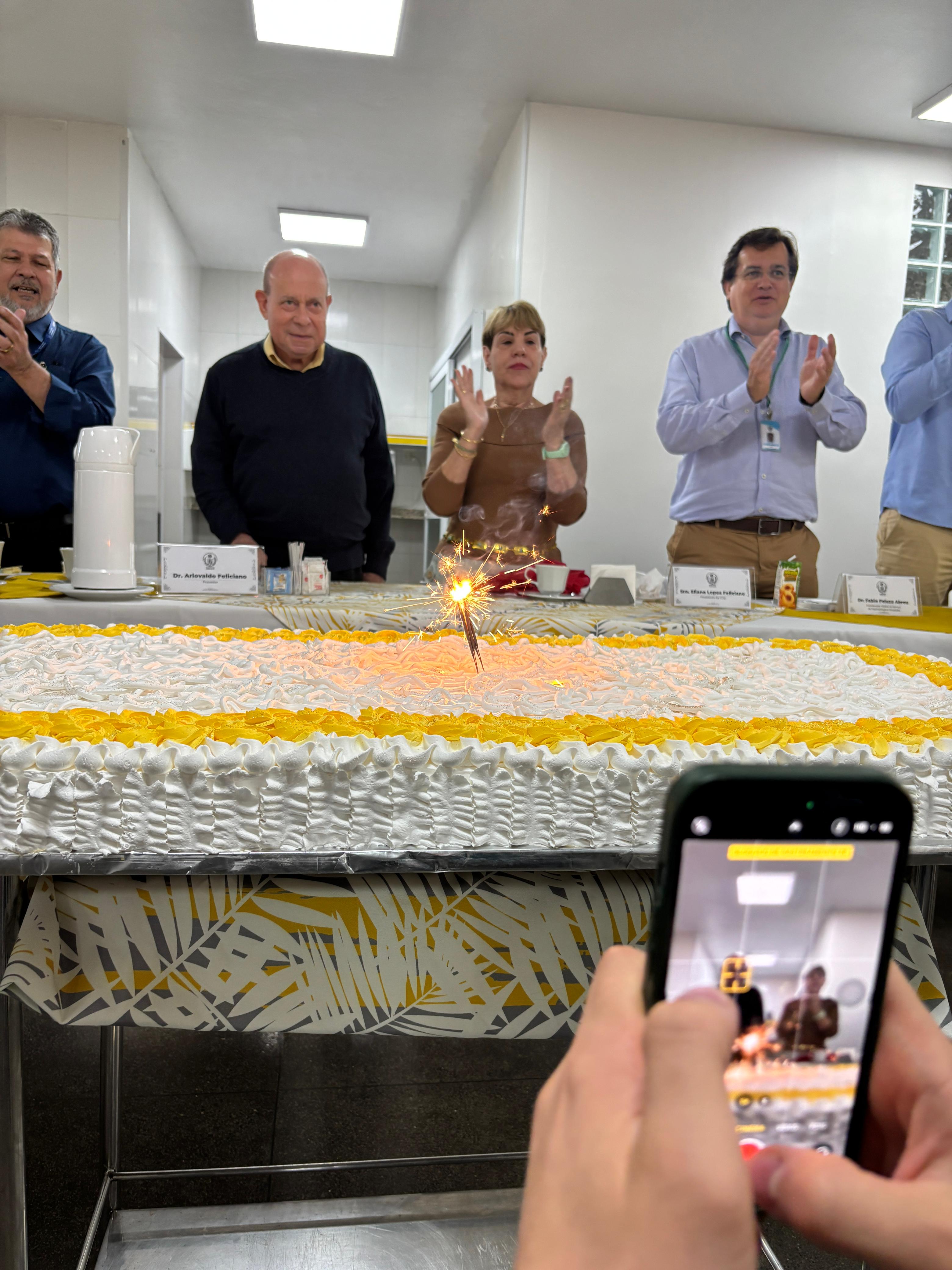 O evento foi finalizado com todos cantando o tradicional “Parabéns para você” e a distribuição do bolo confeitado, feito pelo Departamento de Nutrição e Dietética especialmente para os aniversariantes.