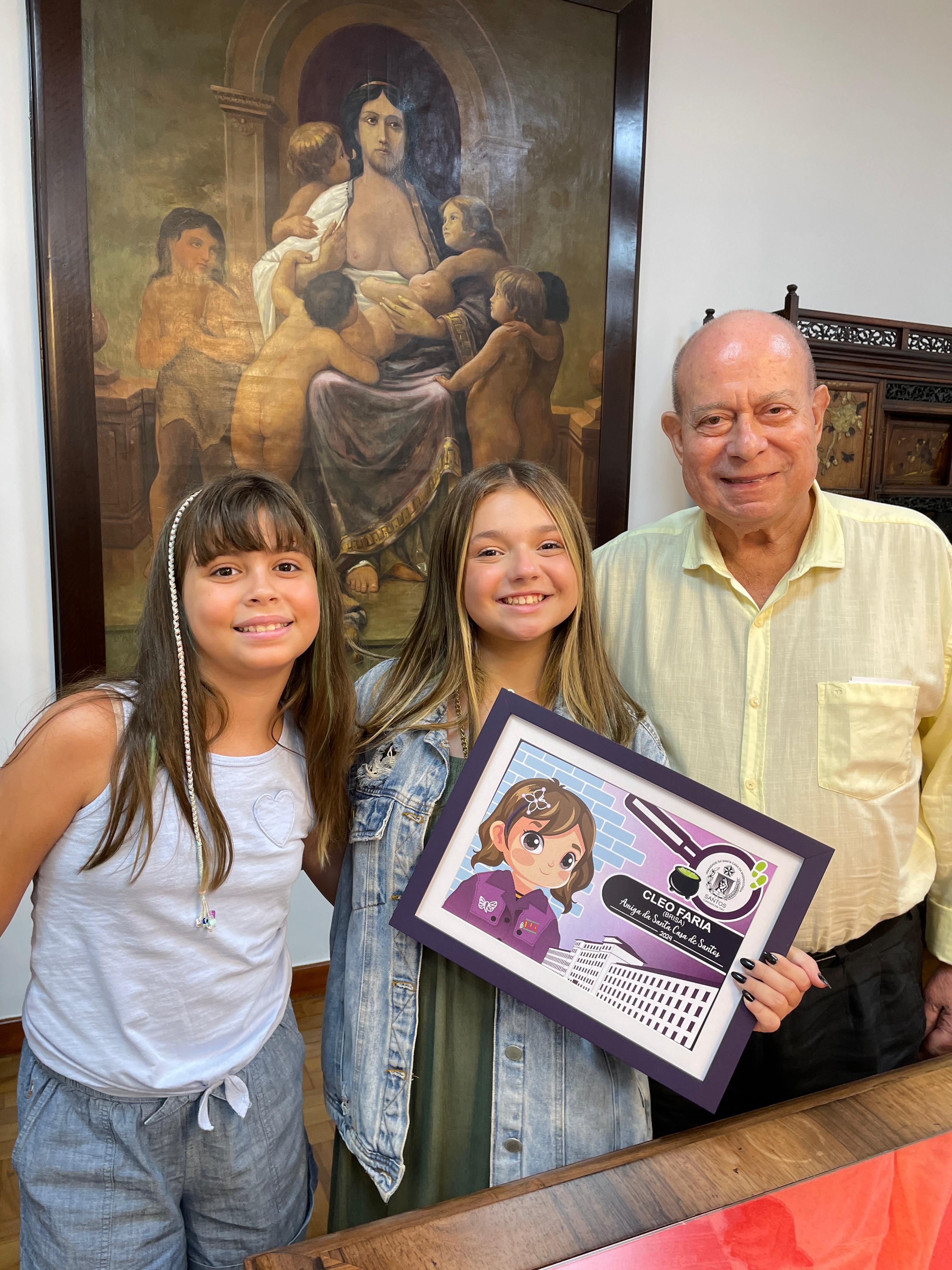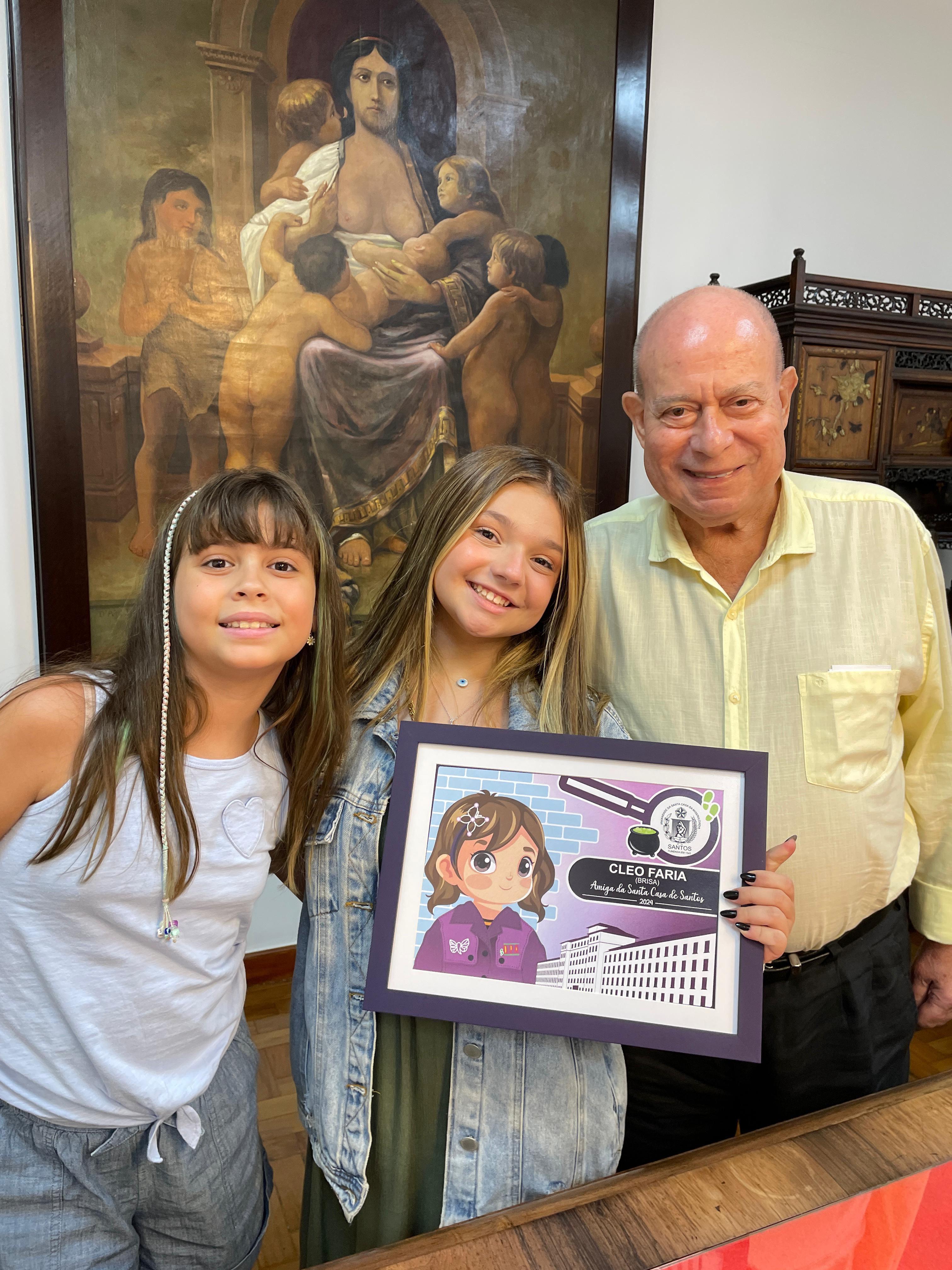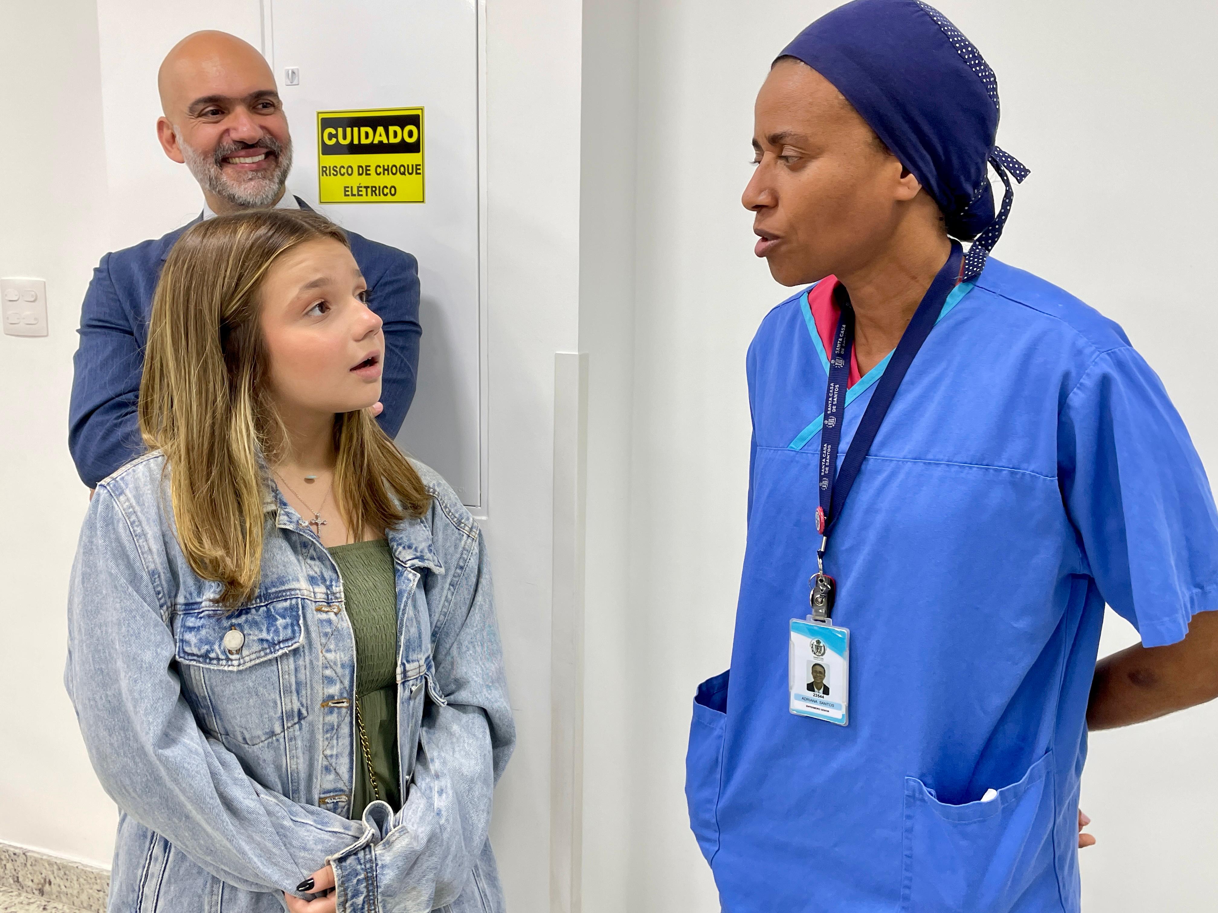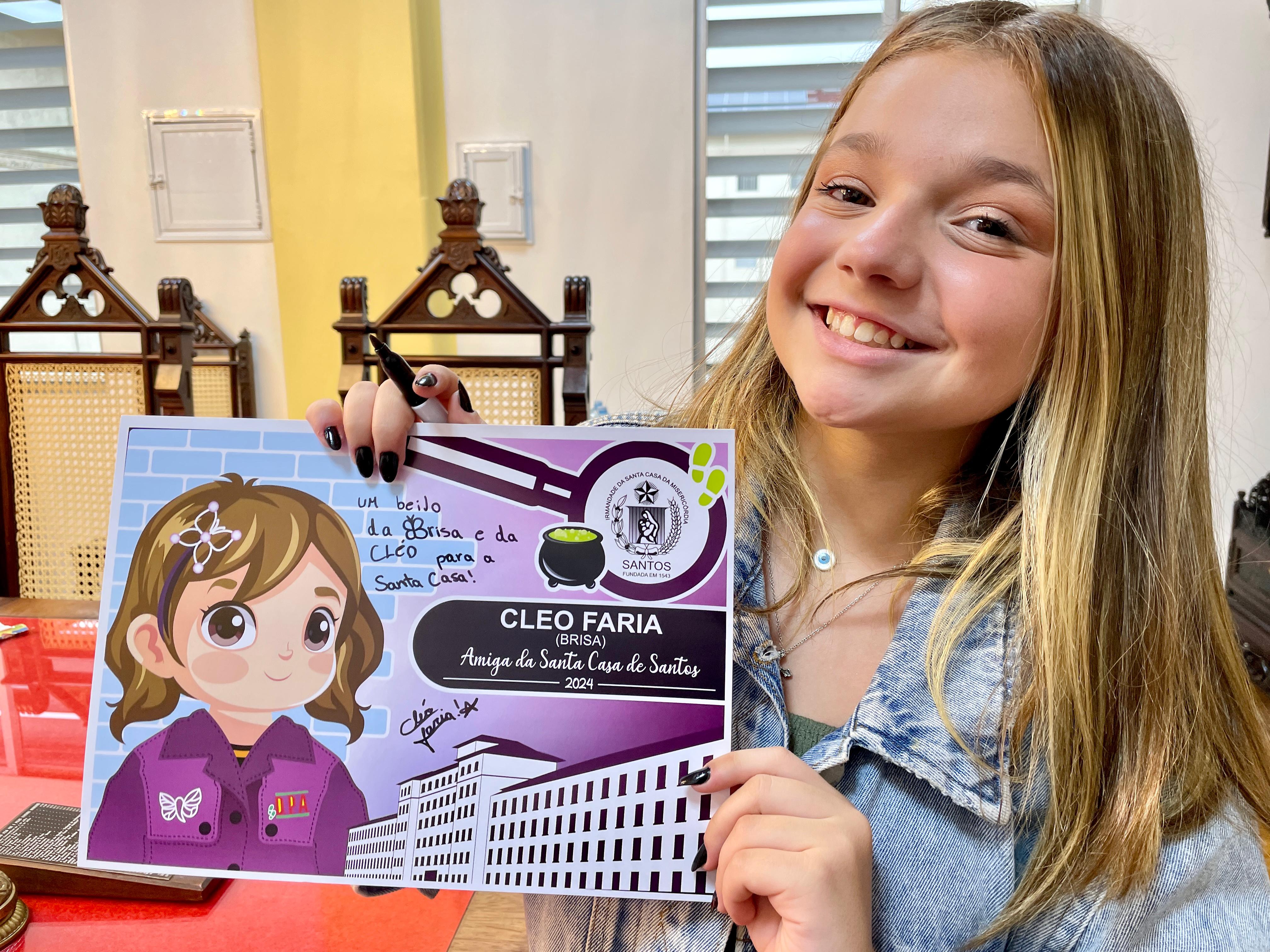 Cléo Faria, a Brisa da série infantil DPA, visita a Santa Casa de Santos
