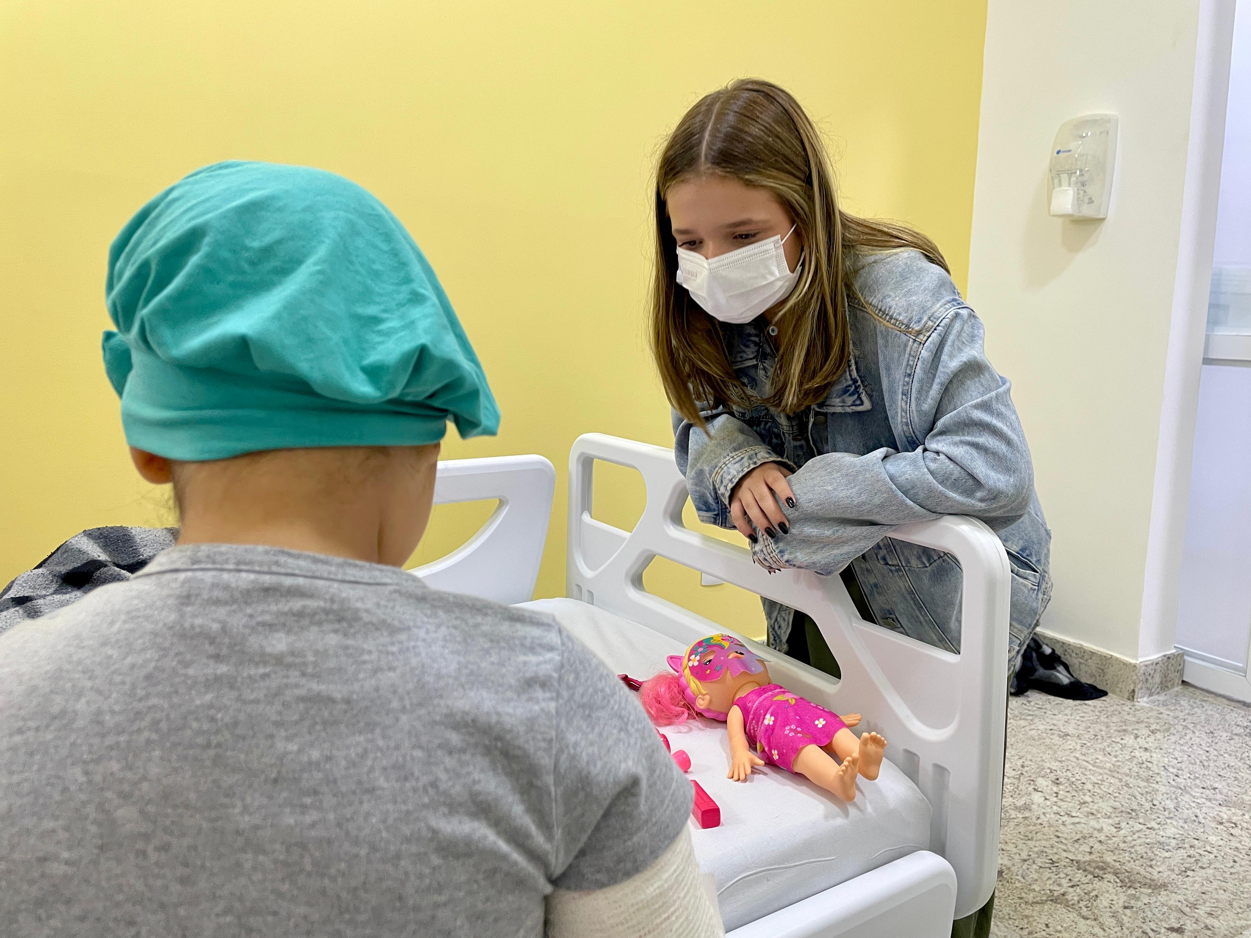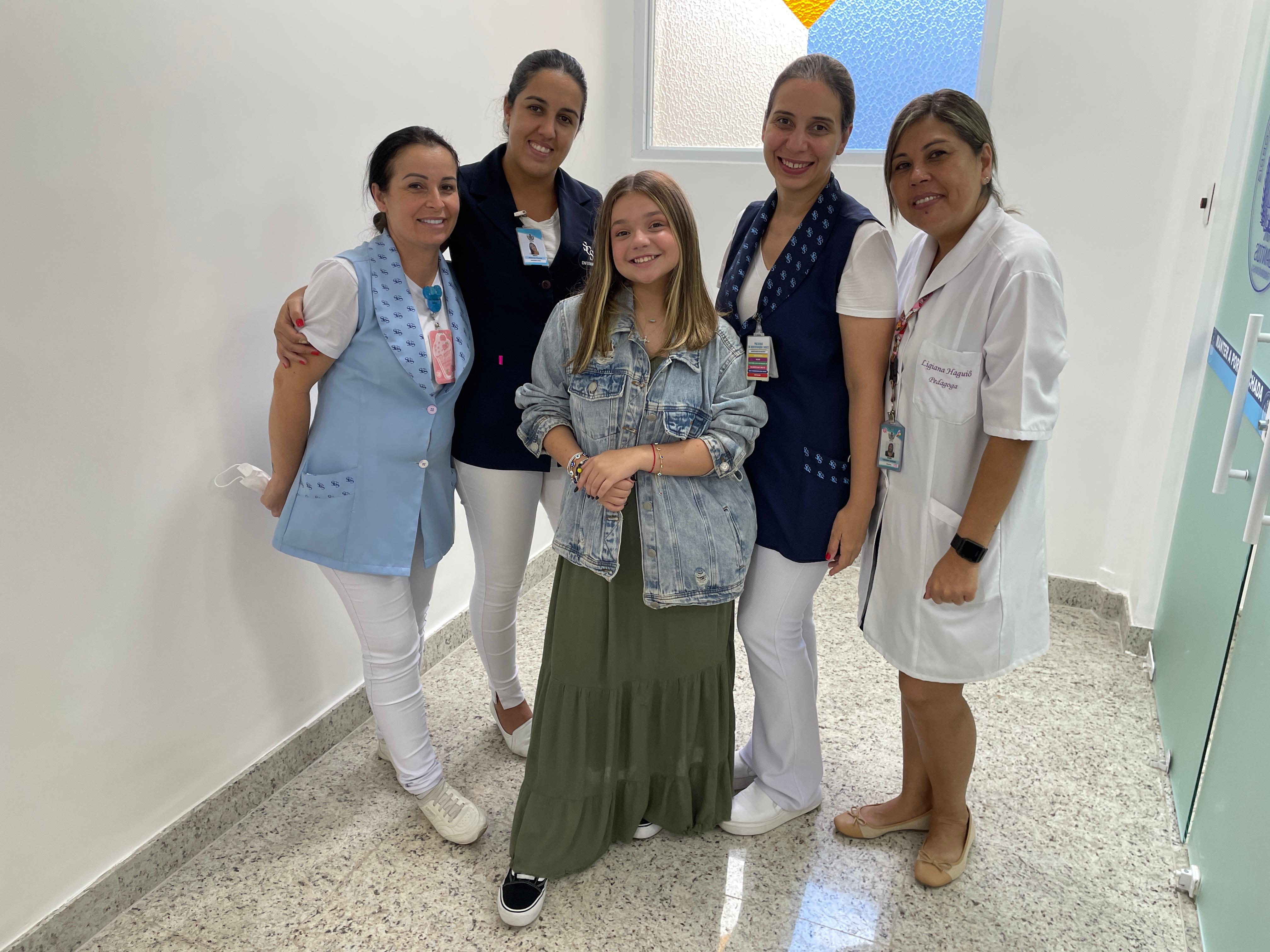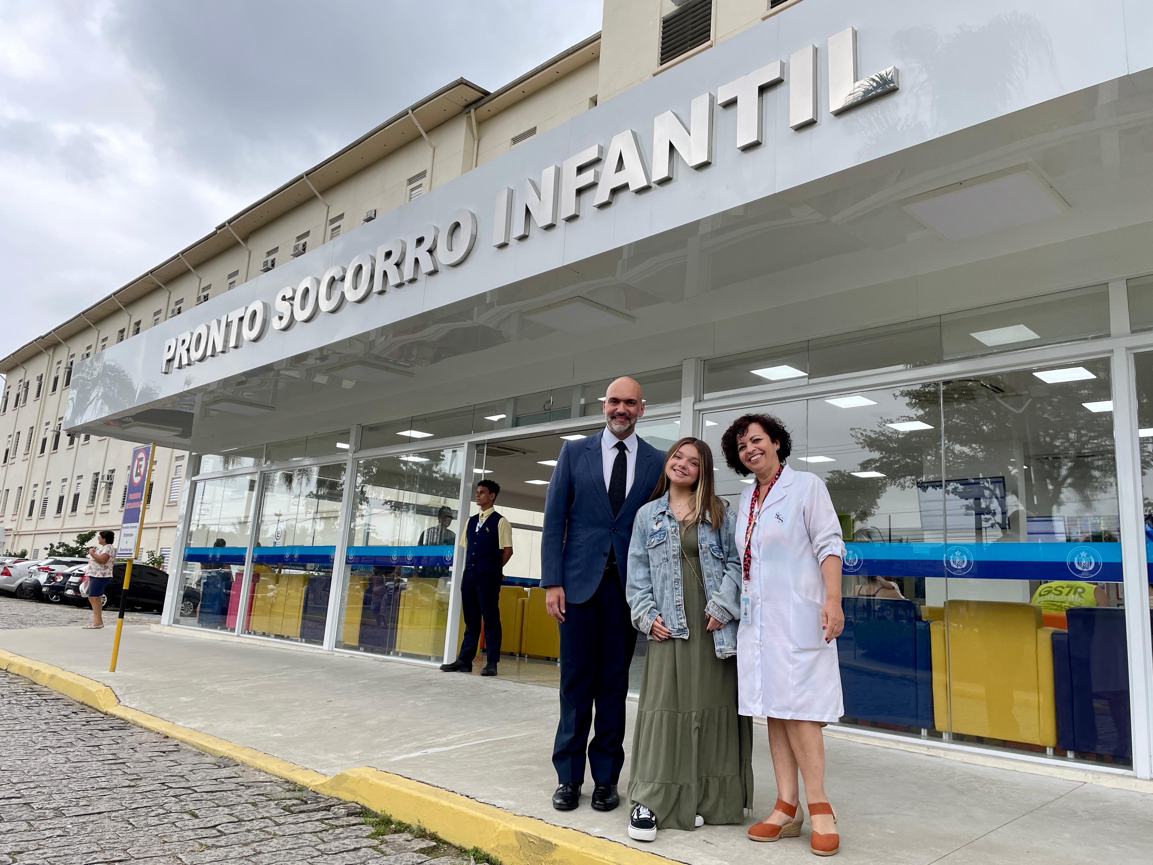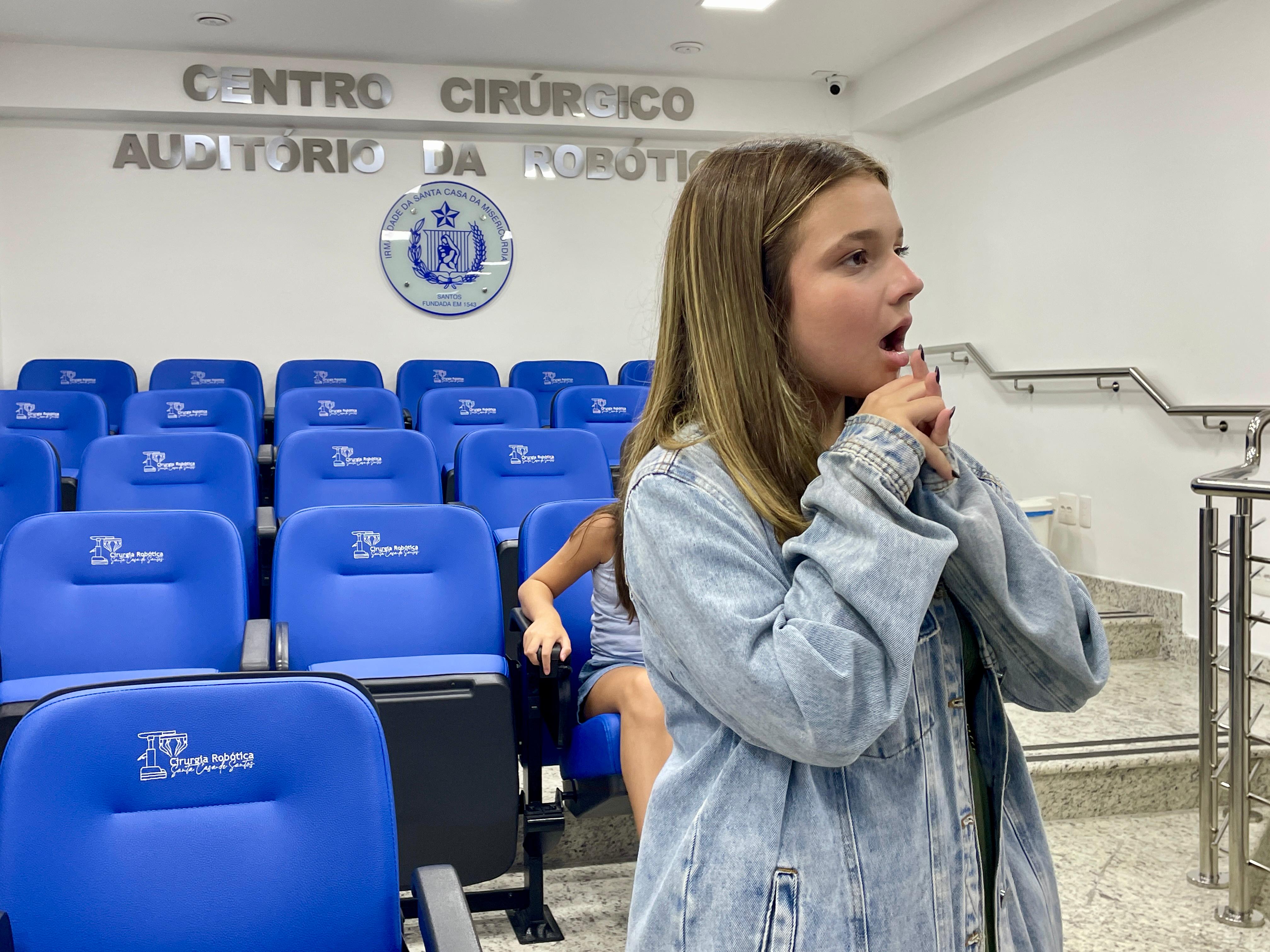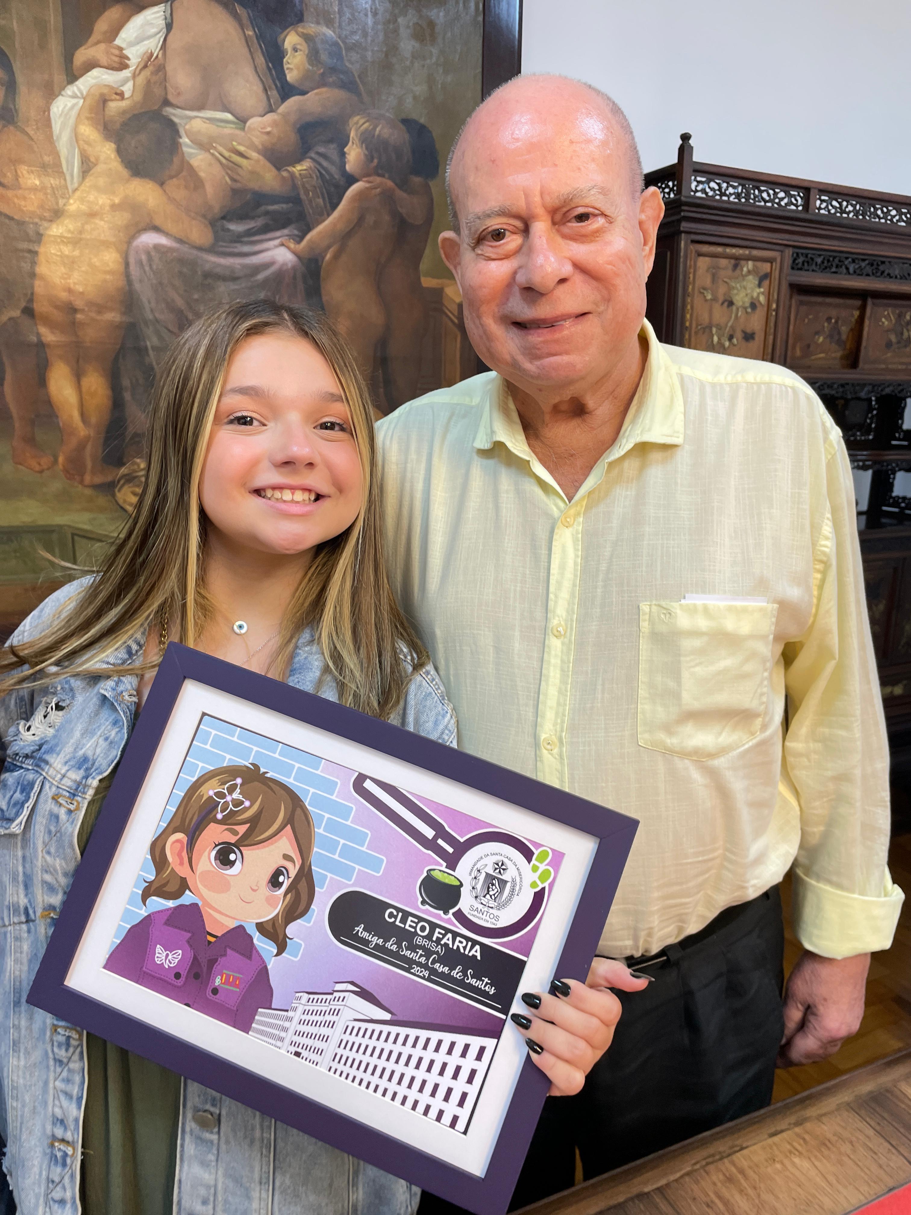 Cléo Faria, a Brisa da série infantil DPA, visita a Santa Casa de Santos
