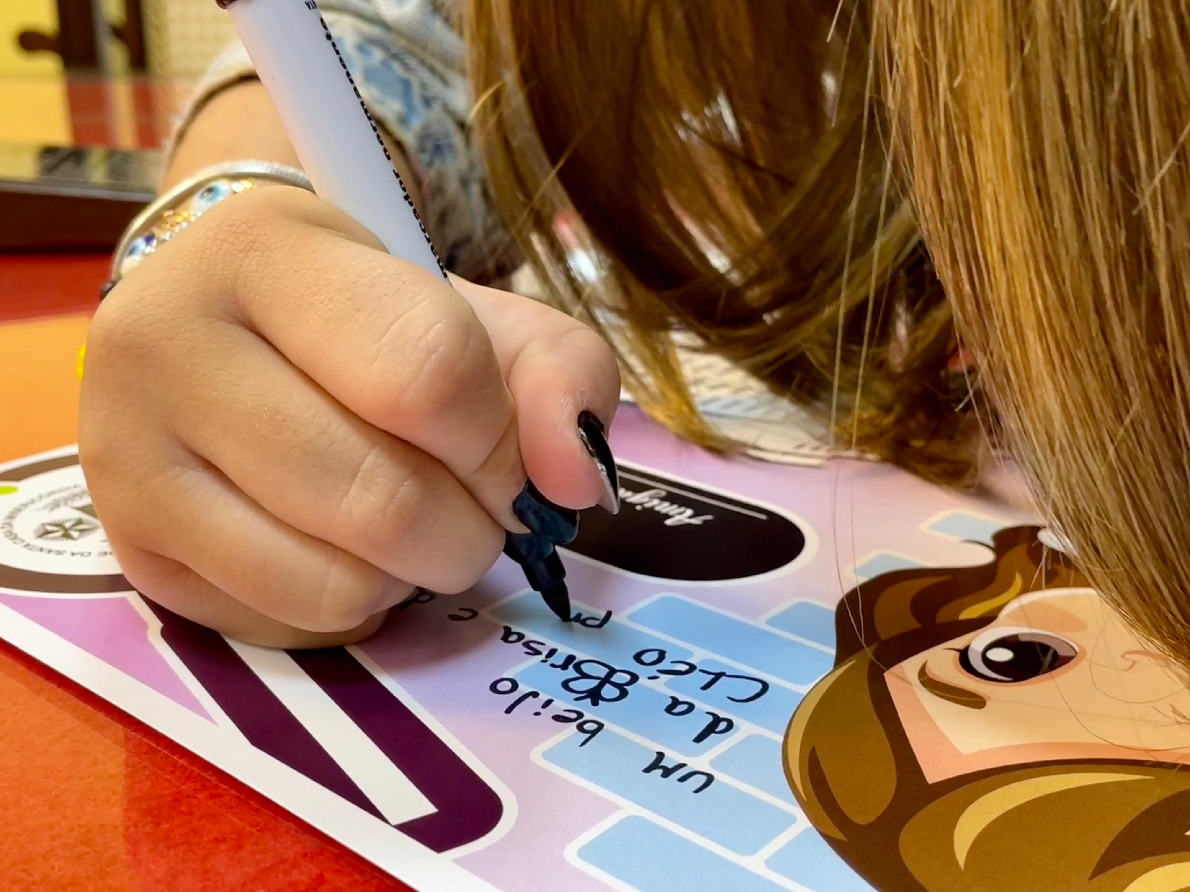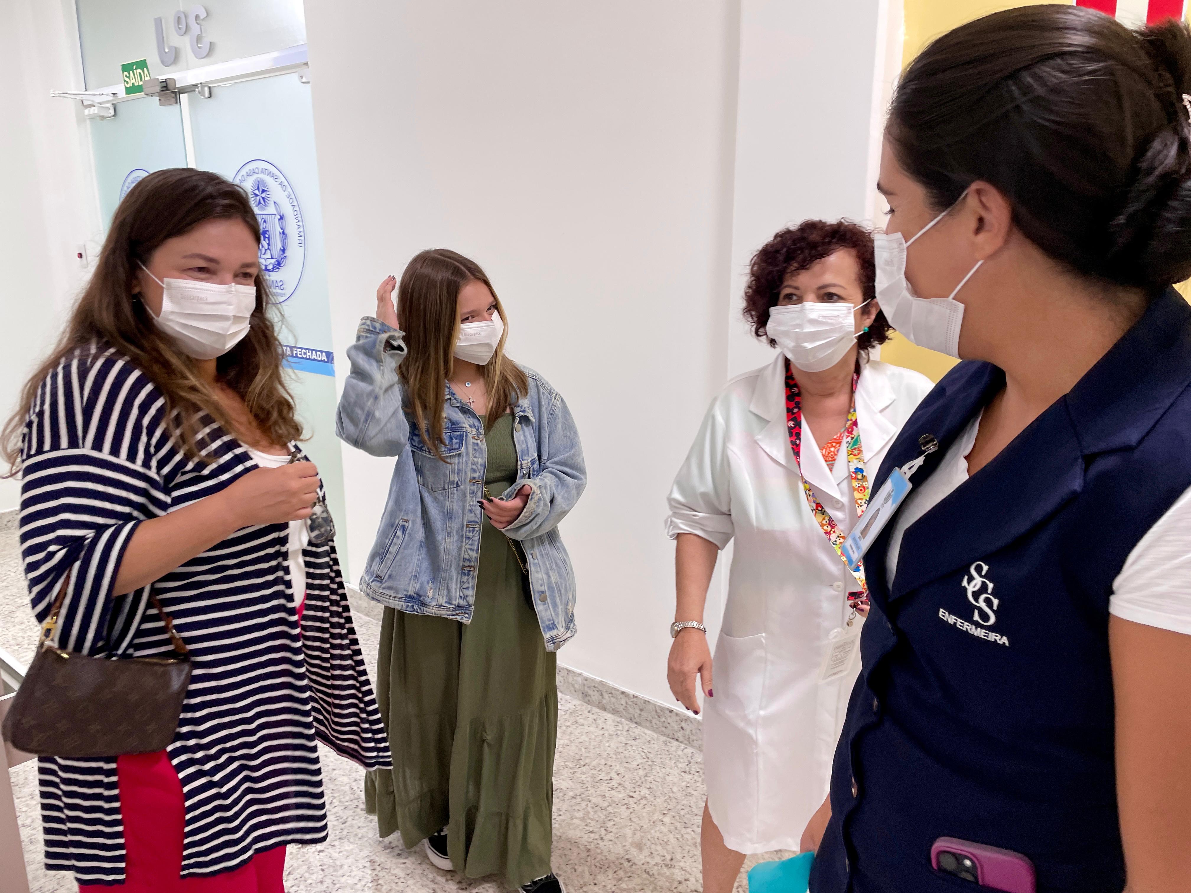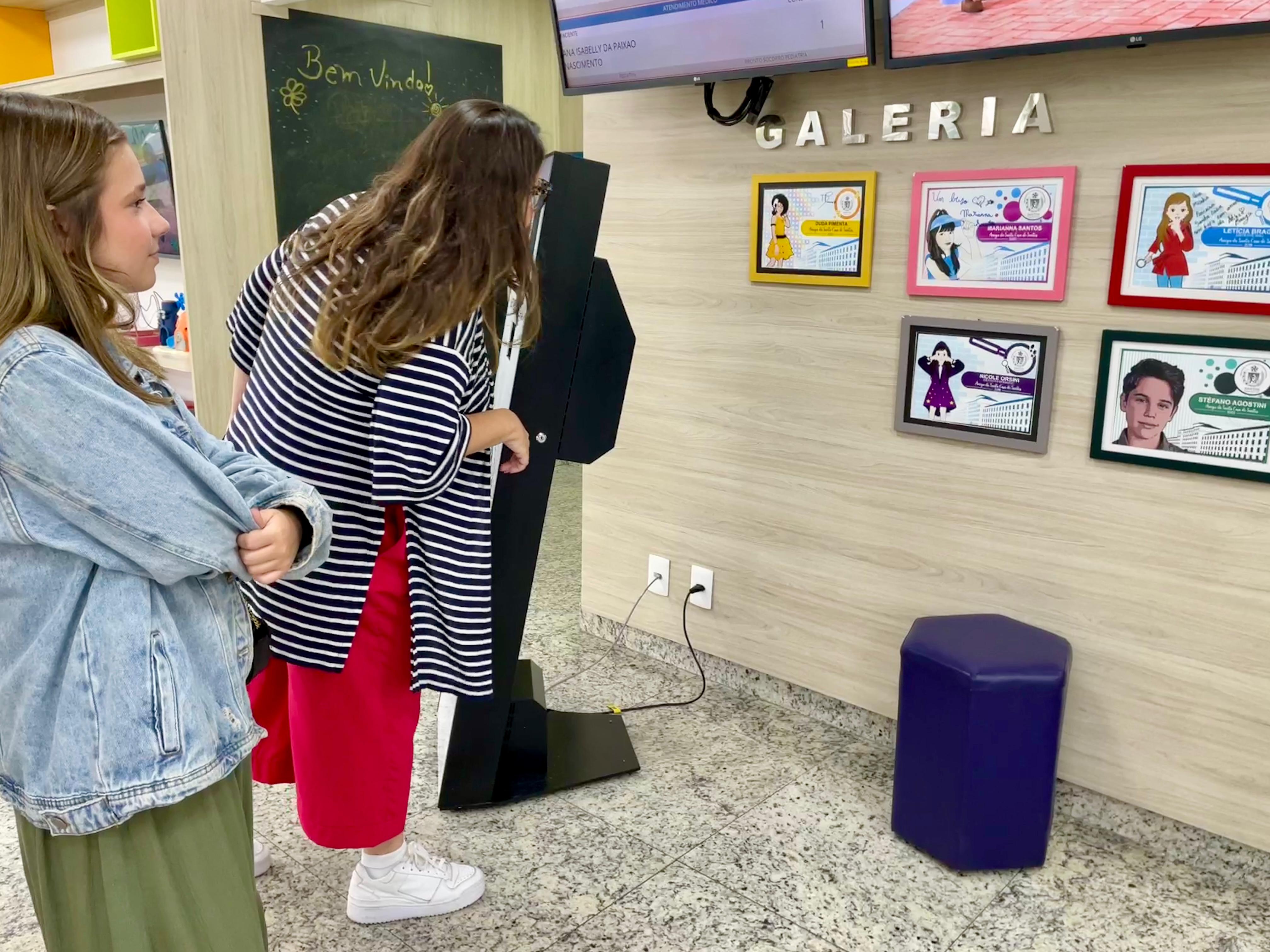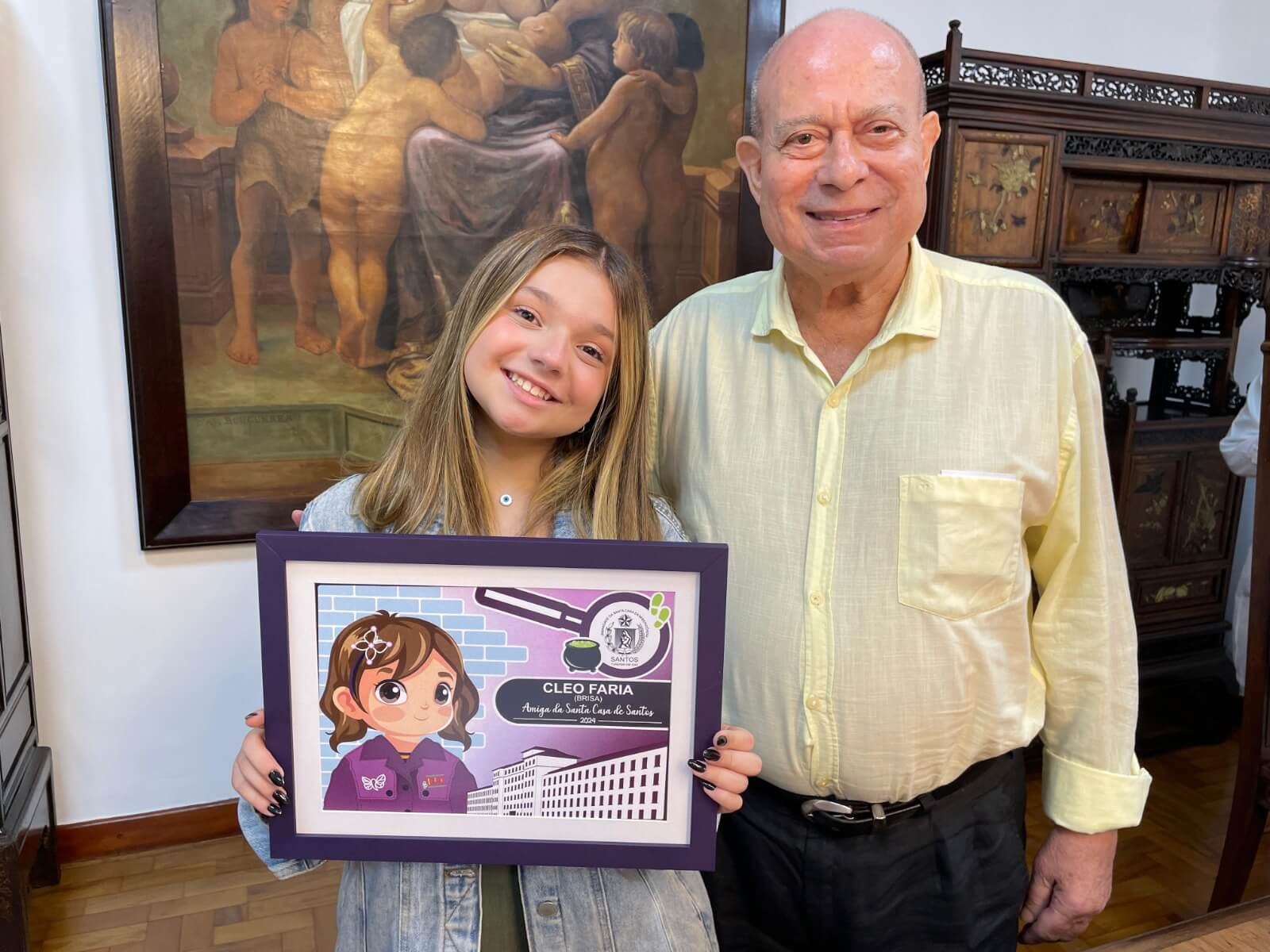 Cléo Faria, a Brisa da série infantil DPA, visita a Santa Casa de Santos