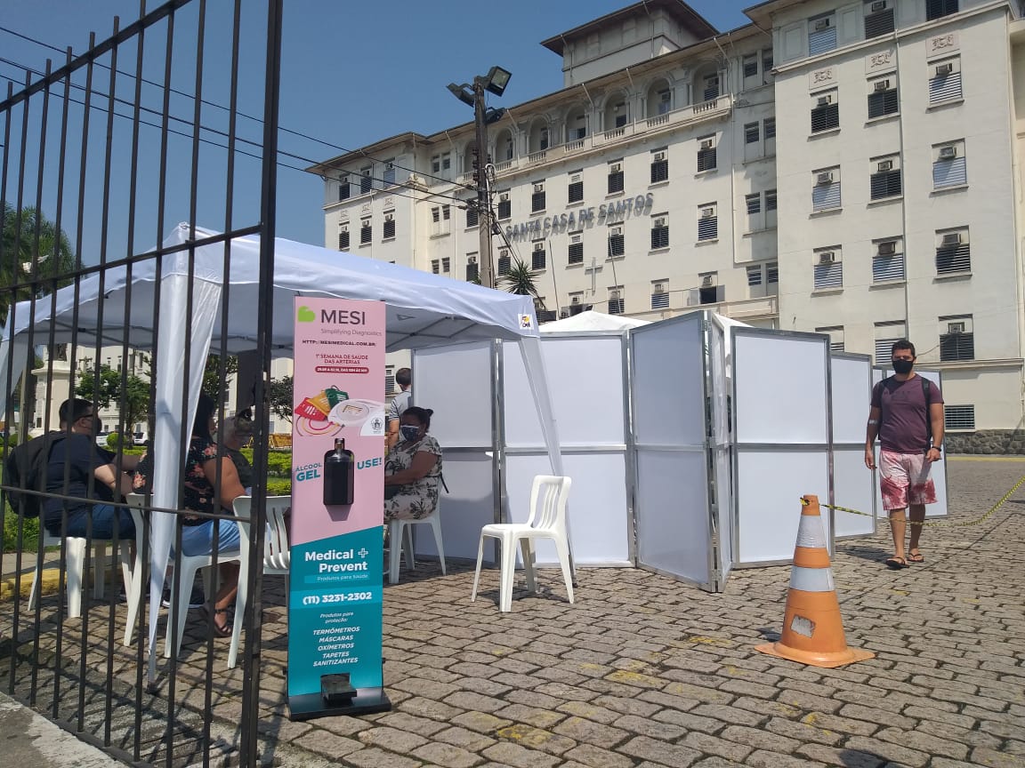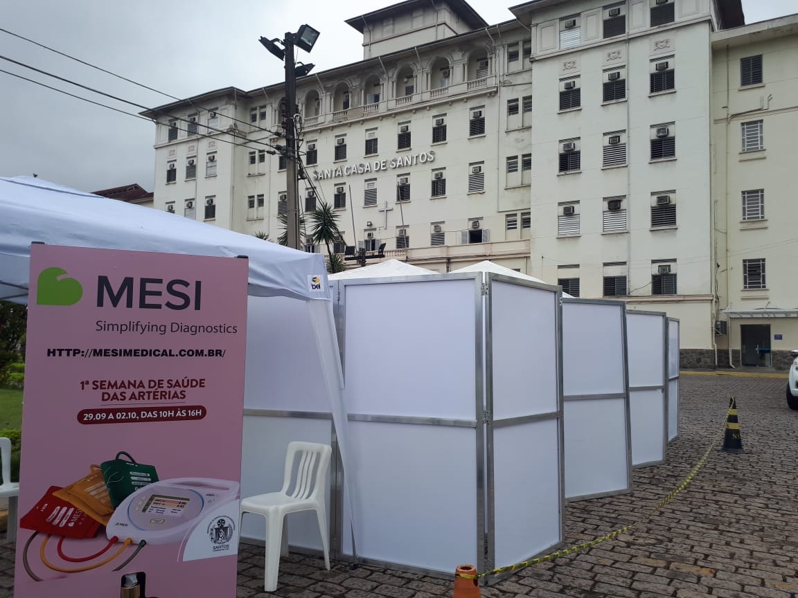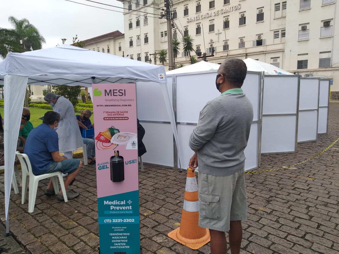 Esta foi a primeira vez que este tema foi abordado em uma campanha no país. Em parceria com a MESI Medical, a Santa Casa de Santos trouxe um equipamento da Eslovênia, inédito no Brasil, e o único que detecta bloqueio de artérias em apenas 1 minuto. Em ação organizada pelo hospital, a população teve a oportunidade de realizar o exame, que consiste na medição do índice tornozelo-braquial, e os resultados foram entregues na hora. Todos que tiveram alguma alteração também receberam orientações da equipe de Cirurgia Vascular da Santa Casa de Santos. Tudo gratuito!