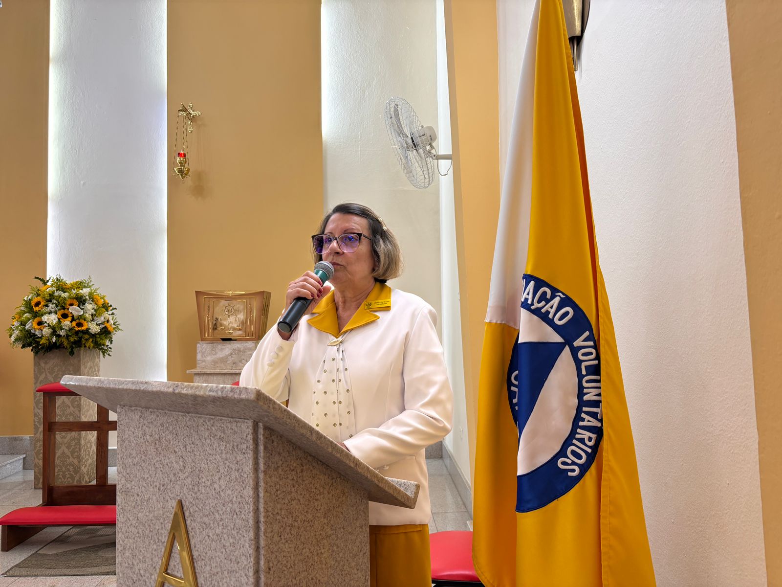 Após a cerimônia, a presidente da AVOSC, Aparecida Regina Ramos Santos, ao lado da voluntária Maria Emília, realizou a entrega das tradicionais estrelas de horas trabalhadas e das homenagens aos voluntários, em reconhecimento à dedicação e ao compromisso de cada um com a causa.