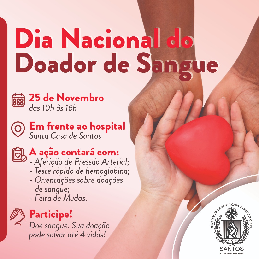 Todas as informações também estão disponíveis no site https://santacasadesantos.org.br/portal/para-voce/banco-de-sangue