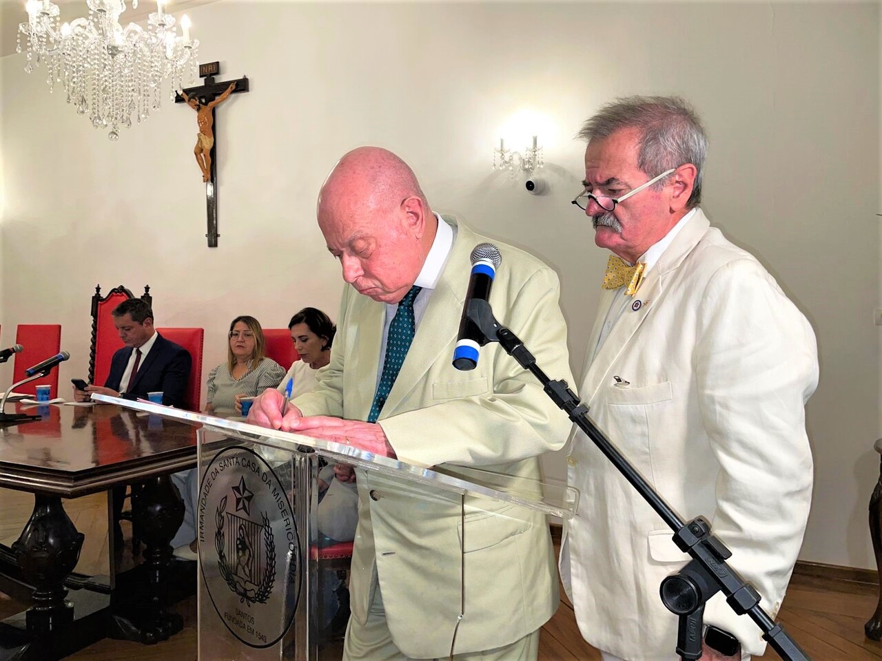 Na noite de sexta, dia 24/1, o provedor e vice provedor reeleitos, Ariovaldo Feliciano e Carlos Teixeira Filho, tomaram posse para a gestão do triênio 2025/2028 da Santa Casa de Santos, em solenidade realizada no consistório da instituição.