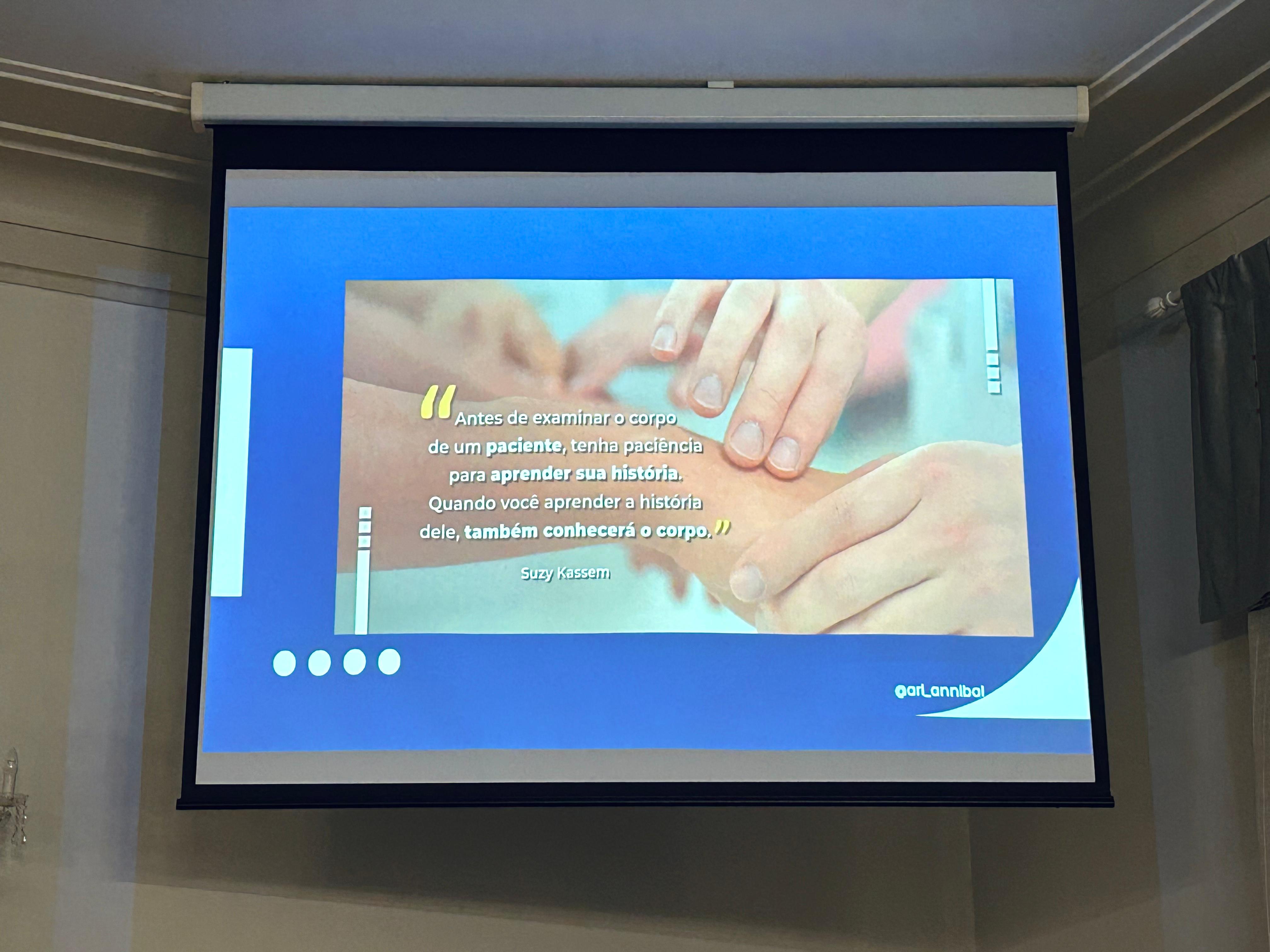 A consultora Ariadne Annibal, especialista em Relacionamento Médico e Customer Experience, falou das diversas formas de linguagem verbal e não verbal, clareza na comunicação, e uso de frases empáticas, respeitando as emoções dos pacientes e familiares.