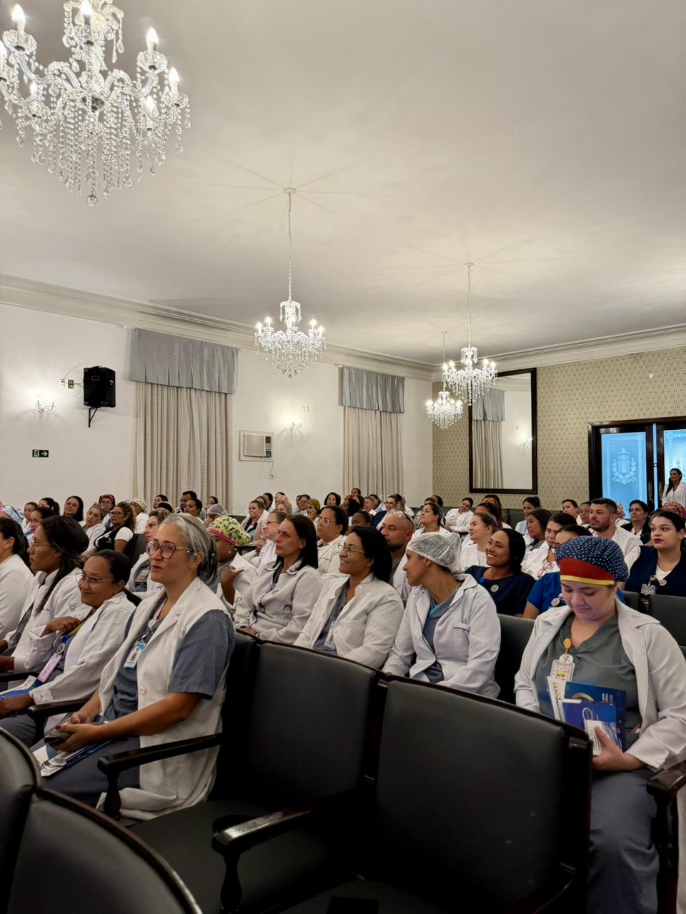 Durante o encontro, o Coren-SP apresentou uma palestra sobre violência contra a equipe de enfermagem, tema essencial para a categoria. A Santa Casa de Santos já atua preventivamente nessa frente. Há mais de seis meses, a Instituição implantou um protocolo específico para acolher, orientar e proteger seus profissionais em situações de violência, reforçando o compromisso com um ambiente de trabalho seguro.