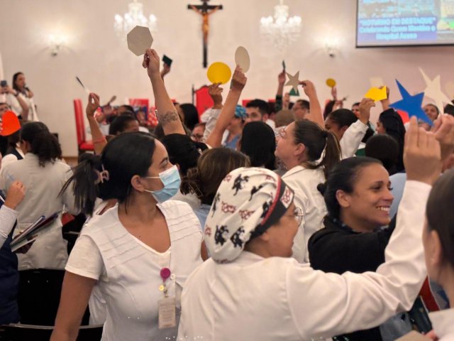 A Santa Casa de Santos realizou, na madrugada de quinta e sexta-feira, a primeira edição do evento “Celebrando quem mantém o hospital aceso”, iniciativa promovida pela Gerência de Enfermagem para valorizar o trabalho das equipes que atuam nos plantões noturnos da Instituição. As ações reuniram mais de 500 colaboradores, que lotaram o Consistório nas duas madrugadas e reforçaram o sentimento de pertencimento e reconhecimento entre os profissionais.