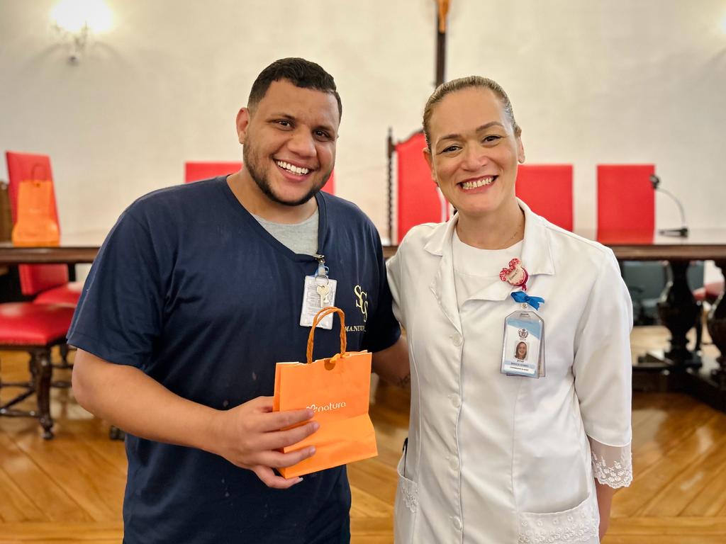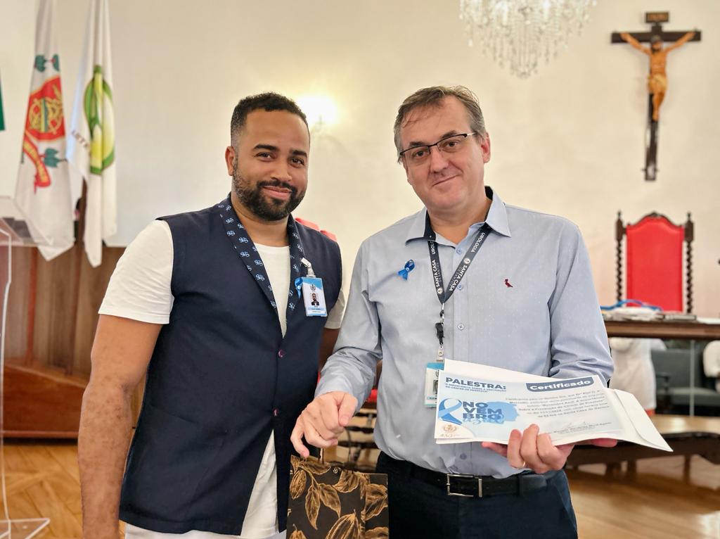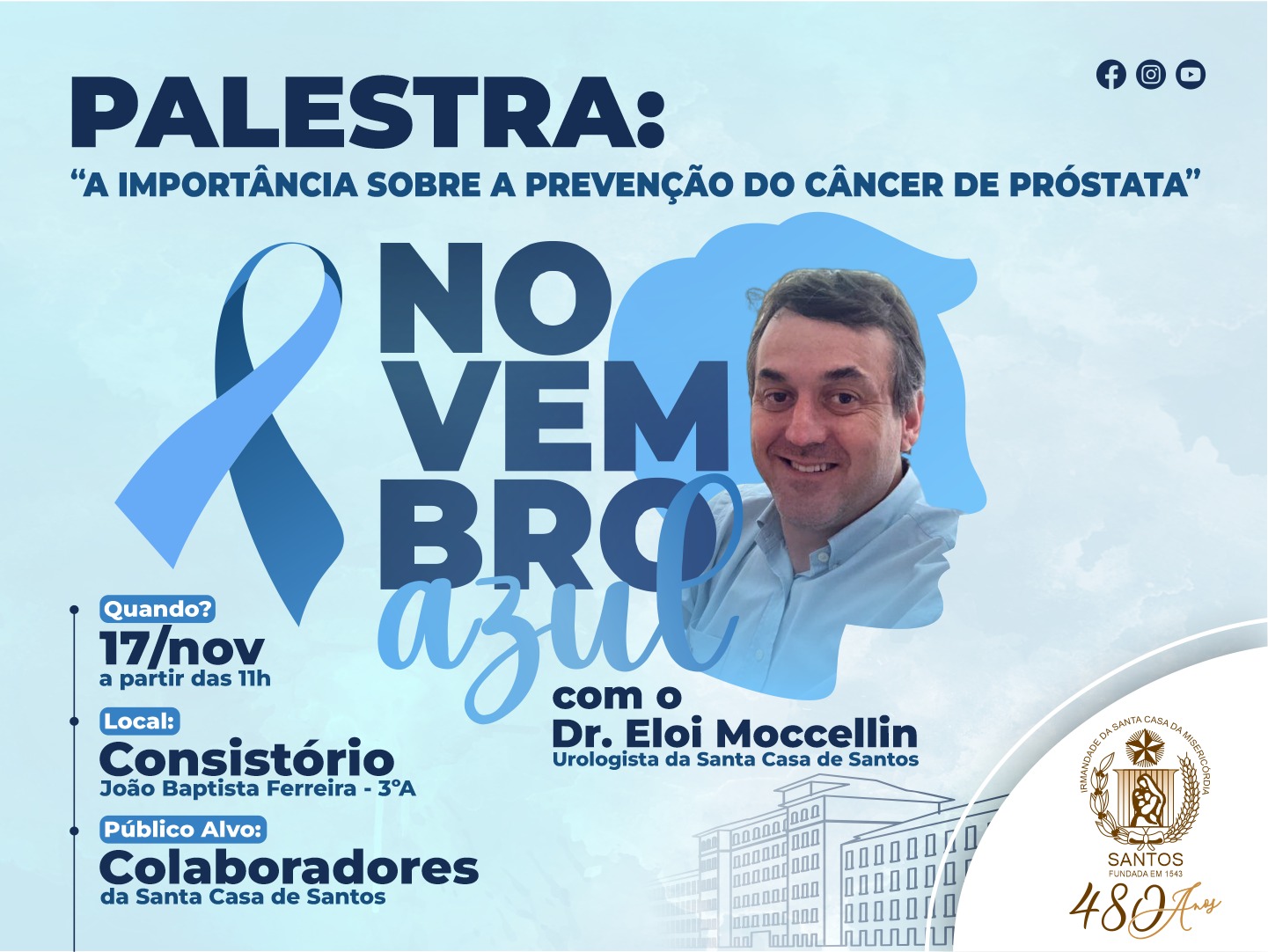 Para conscientizar os colaboradores da Santa Casa de Santos sobre a importância da prevenção do câncer de próstata, o Setor de Medicina do Trabalho em parceria com o Centro Integrado de Humanização promoveu uma ação no dia 17/11, no consistório do hospital, com palestra, sorteio de brindes e a visita dos cães terapeutas da Guarda Municipal de Santos.
