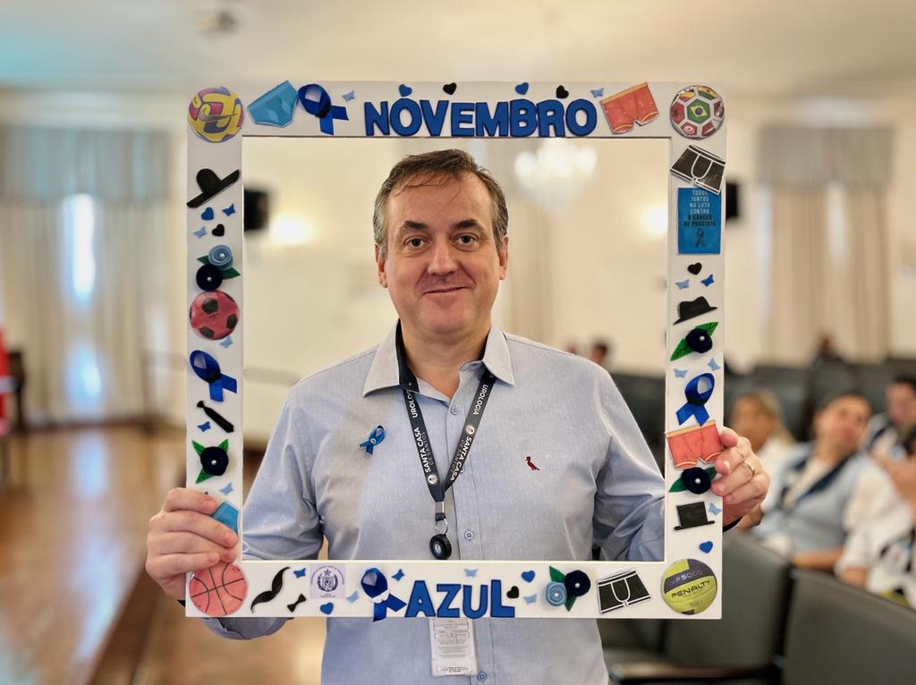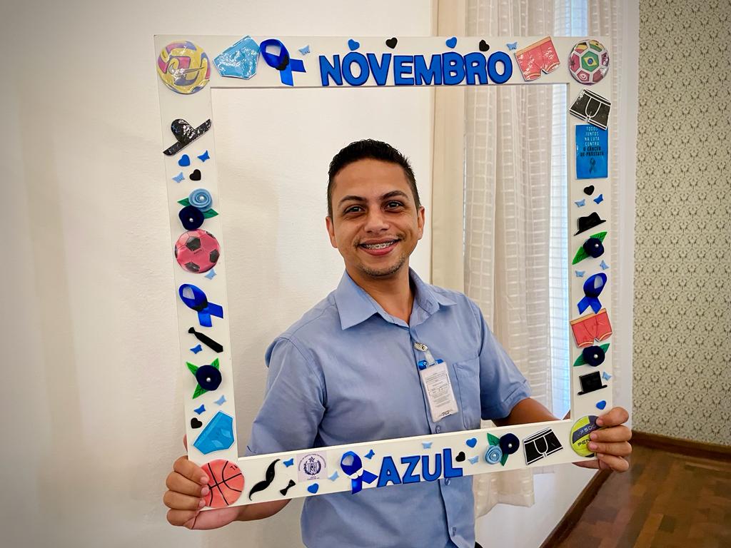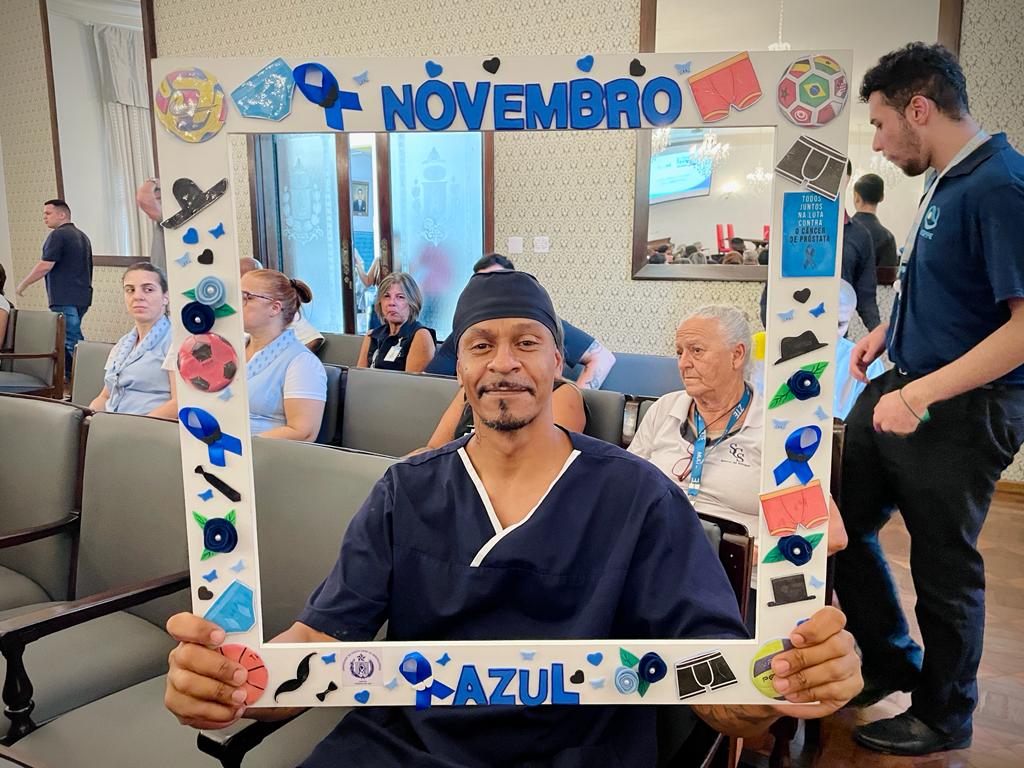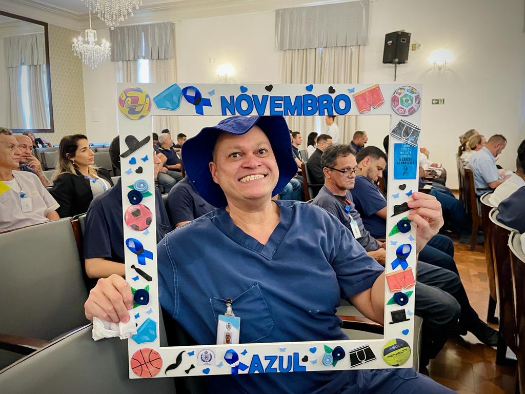 A equipe do Centro Cirúrgico também colaborou com a campanha, produzindo um quadro instagramável para os funcionários engajados tirarem fotos e darem sua contribuição no alerta do Novembro Azul.