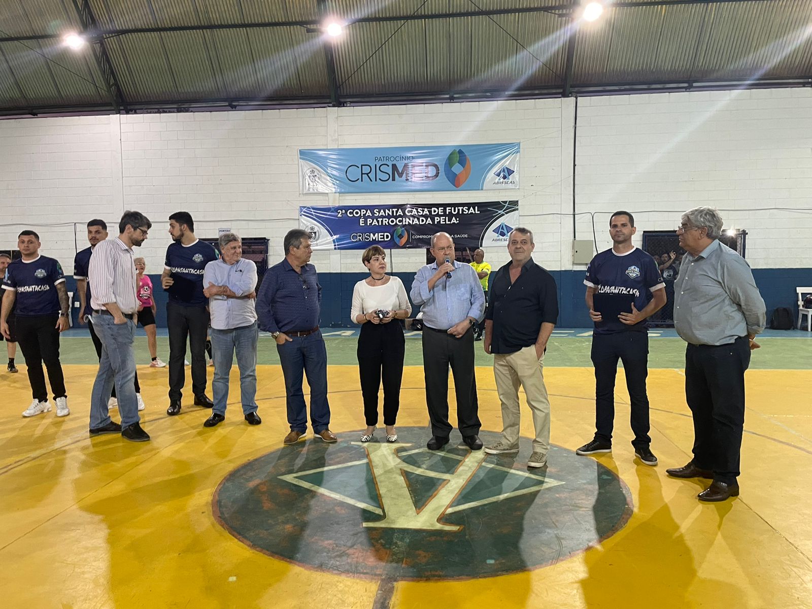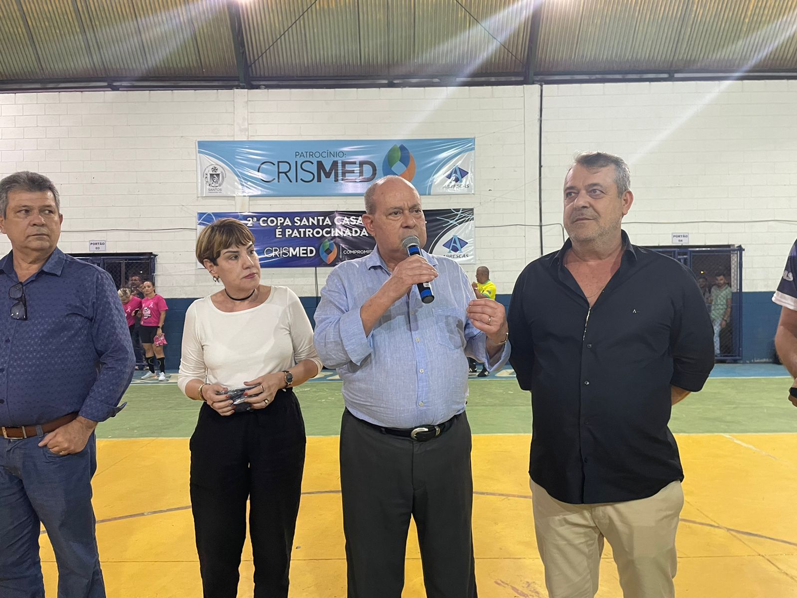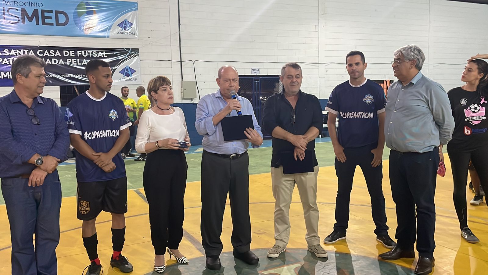 A 2ª Copa Santa Casa de Futsal começou nesta sexta, dia 7/10, e a abertura oficial contou com discurso do provedor Ariovaldo Feliciano e “pontapé inicial” de sua esposa, Eliana Lopes Feliciano, vestindo a camisa rosa da equipe feminina. O campeonato é uma iniciativa dos colaboradores da instituição, com total apoio da gestão da Santa Casa de Santos, Abrescas e patrocínio da Crismed Comercial Hospitalar. Por tratar-se de evento interno, somente funcionários puderam se inscrever no torneio.