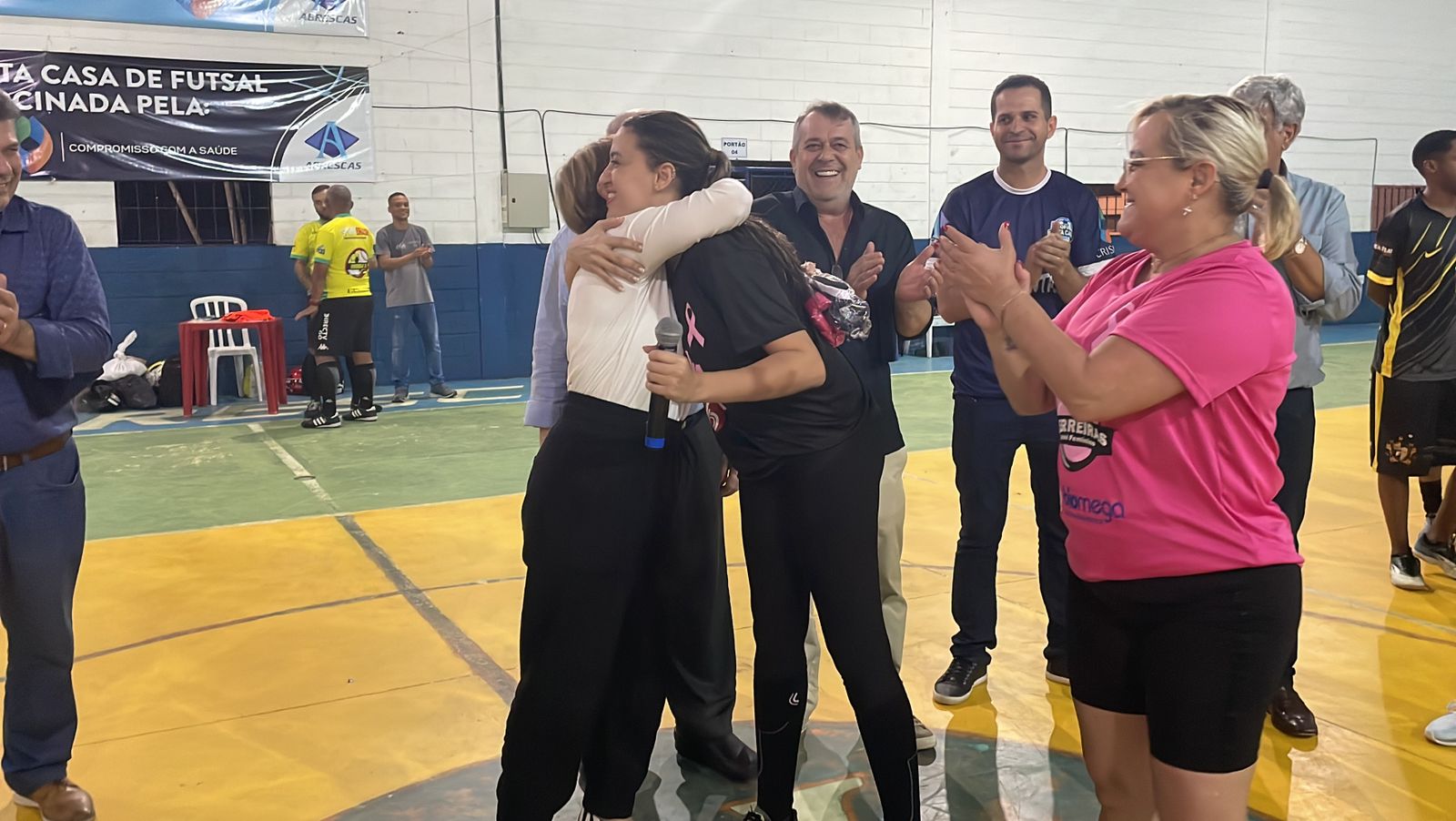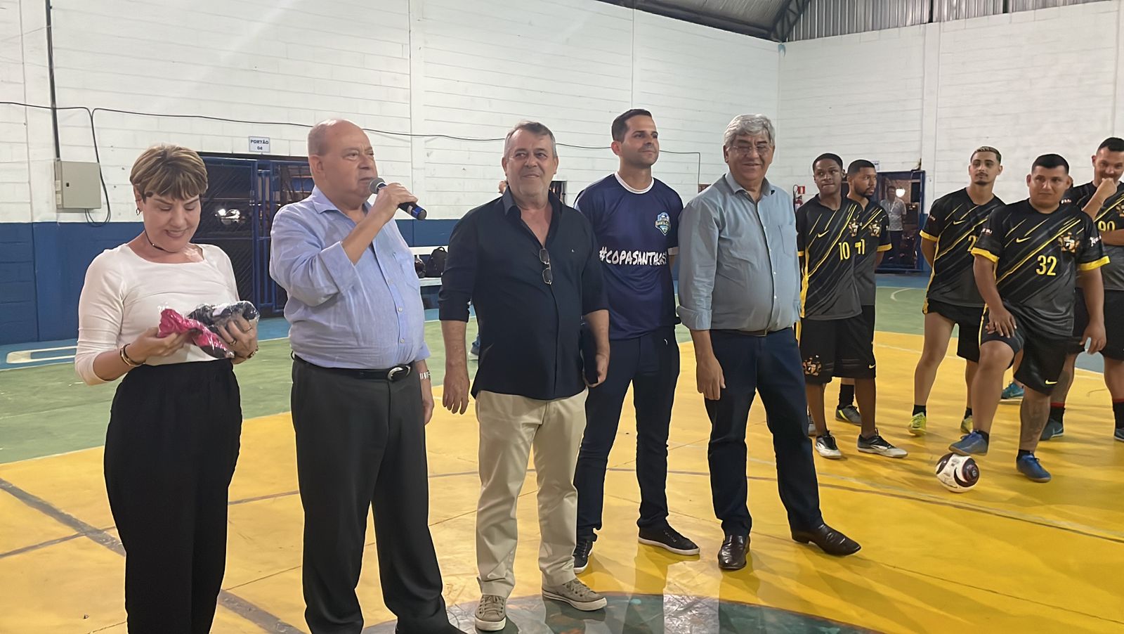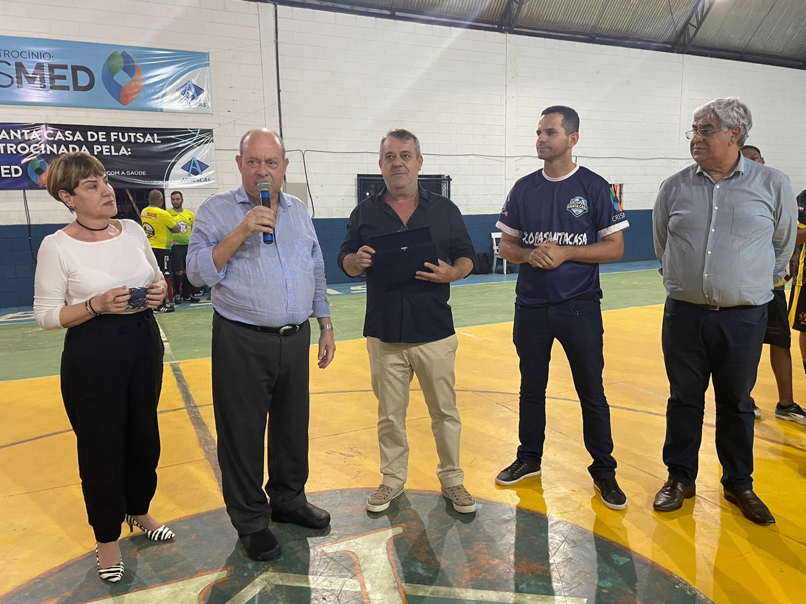 A 2ª Copa Santa Casa de Futsal começou nesta sexta, dia 7/10, e a abertura oficial contou com discurso do provedor Ariovaldo Feliciano e “pontapé inicial” de sua esposa, Eliana Lopes Feliciano, vestindo a camisa rosa da equipe feminina. O campeonato é uma iniciativa dos colaboradores da instituição, com total apoio da gestão da Santa Casa de Santos, Abrescas e patrocínio da Crismed Comercial Hospitalar. Por tratar-se de evento interno, somente funcionários puderam se inscrever no torneio.