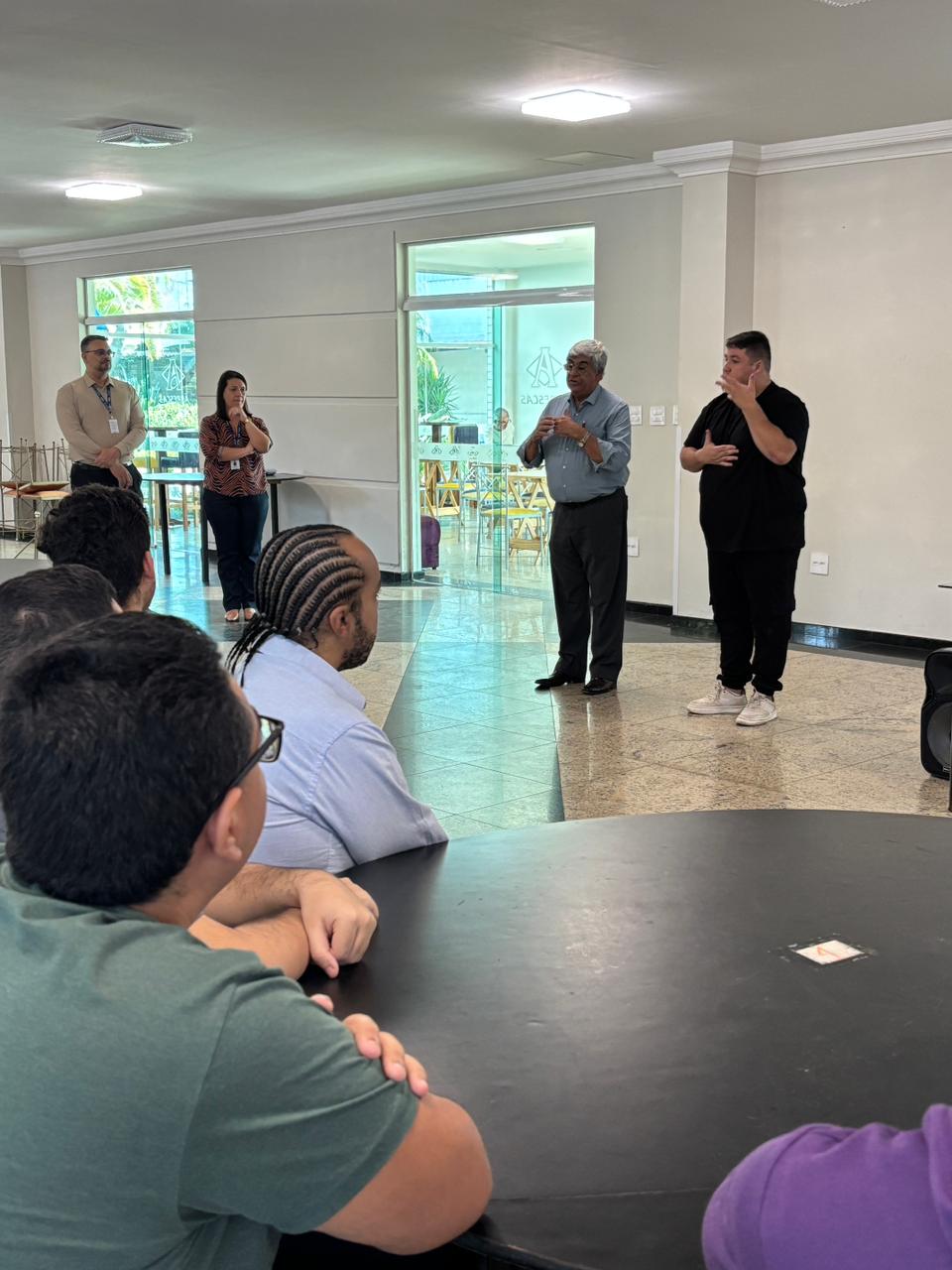 O Analista de Treinamento e Desenvolvimento do Departamento de Recursos Humanos, Luiz Onofre Silva Lima, apresentou aos alunos como funciona o programa, regras, horários e o cronograma do curso.