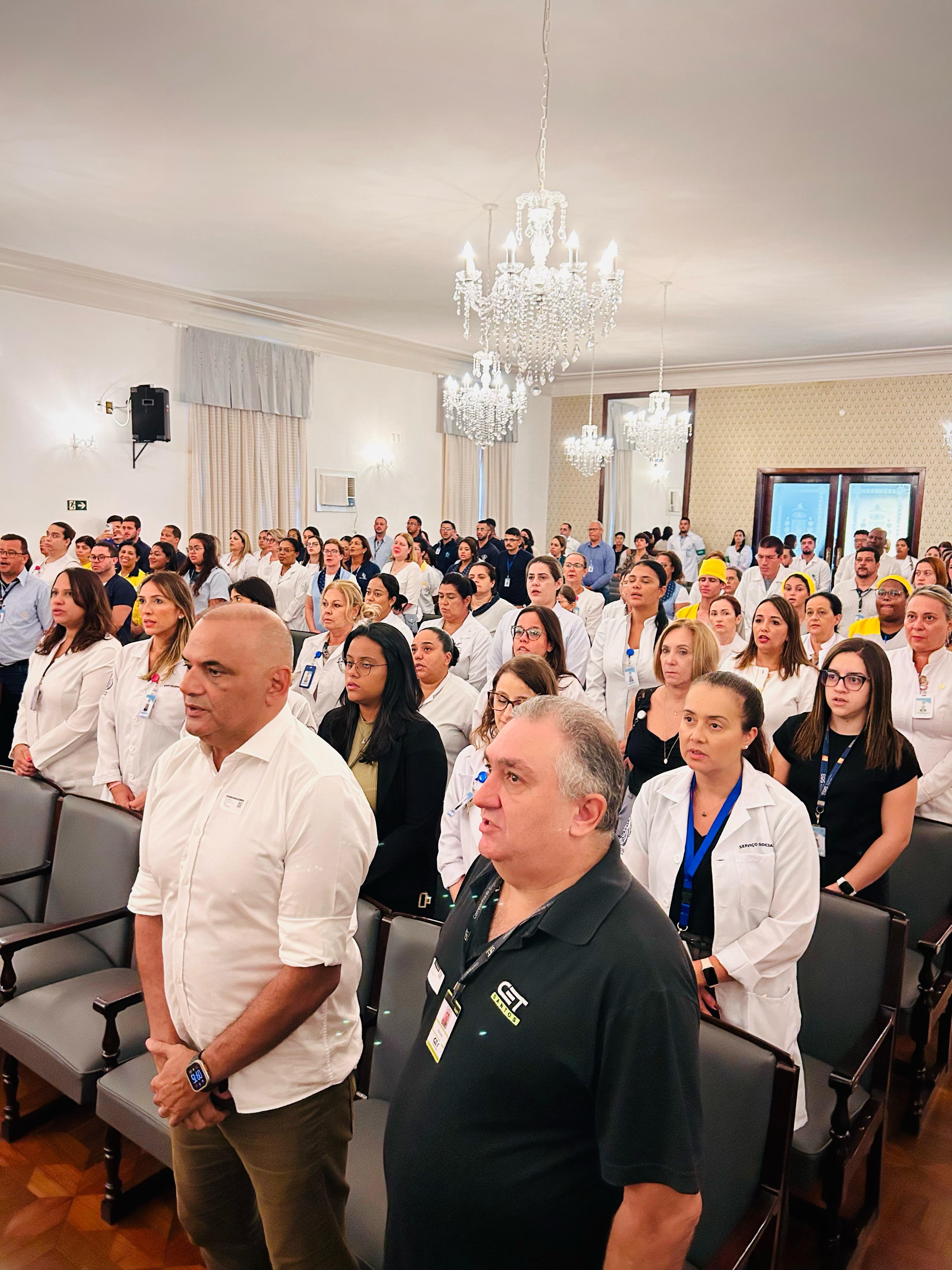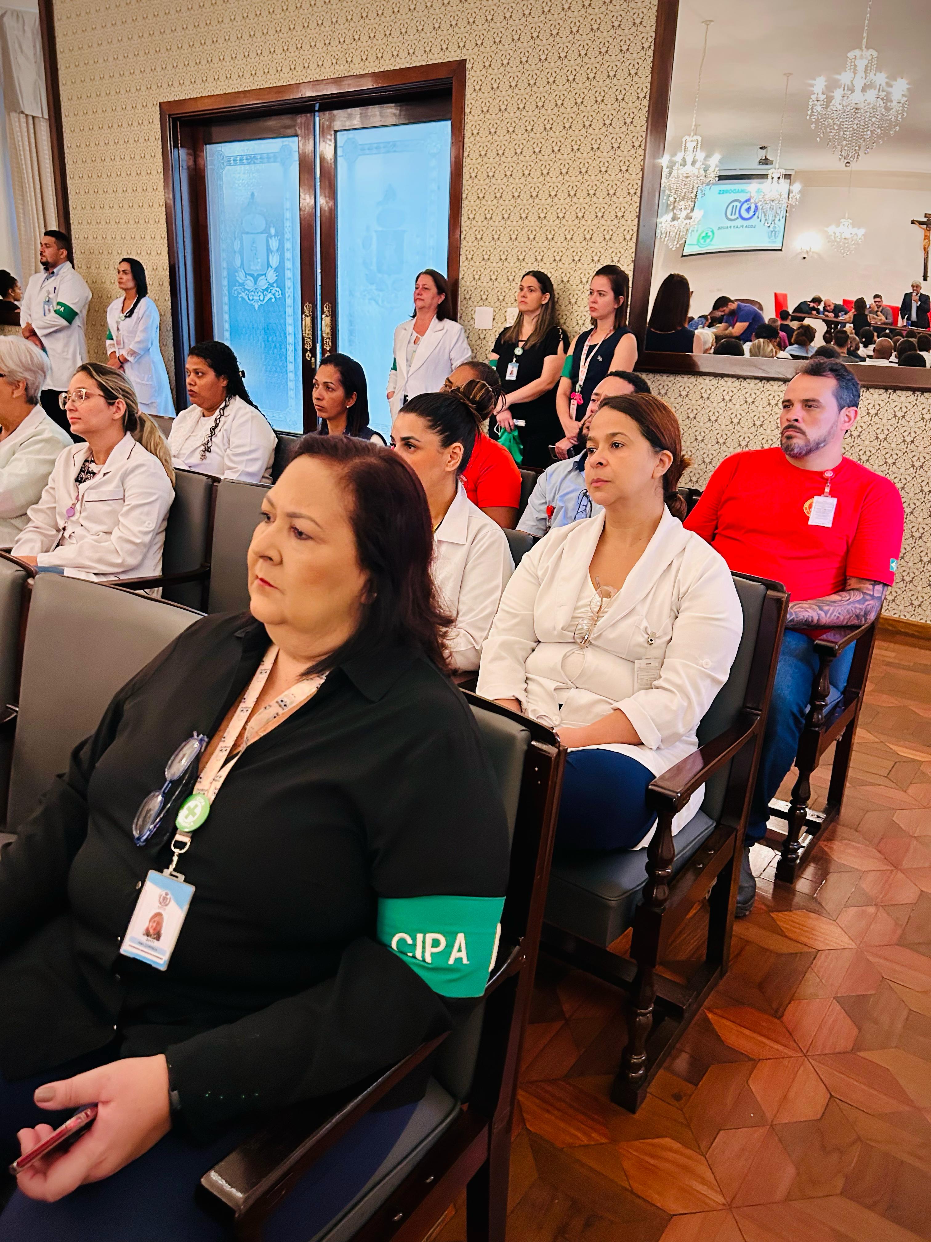 A SIPAT 2025 – Semana Interna de Prevenção de Acidentes de Trabalho da Santa Casa de Santos já começou e, no 1º dia de programação (24/3), gestores e lideranças prestigiaram a abertura oficial realizada pelo vice provedor, Carlos Teixeira Filho, e a palavra do presidente da CIPA gestão 2024/2025, Luiz Lima.