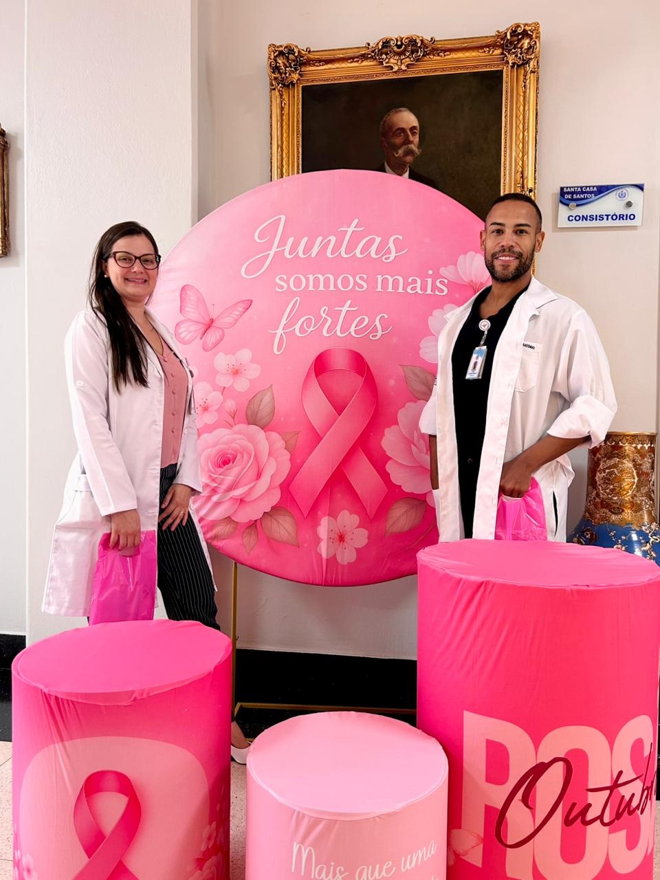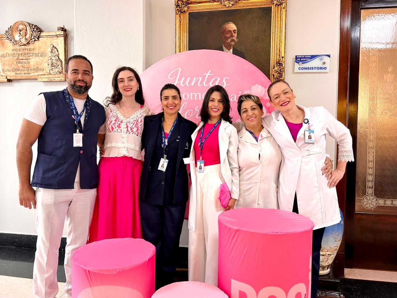 Durante todo o evento, os colaboradores da Santa Casa vestiram camisetas rosas, demonstrando apoio à campanha e reforçando a mensagem de conscientização. Muitos também compartilharam o momento em suas redes sociais, marcando o perfil oficial @santacasadesantos, ampliando o alcance da iniciativa.