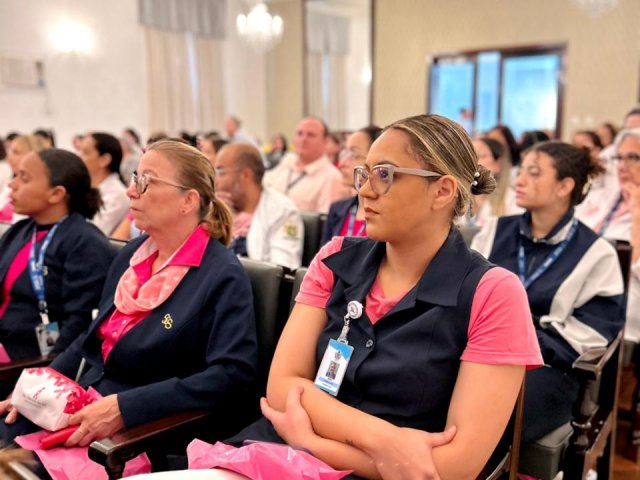 A Santa Casa de Santos promoveu, no dia 21 de outubro, no Consistório, o Dia ‘D’ Outubro Rosa, uma manhã dedicada à conscientização sobre a prevenção do câncer de mama e temas relacionados à saúde da mulher. O evento reuniu colaboradores e equipe multiprofissional em uma programação especial com palestras, música e momentos de integração.