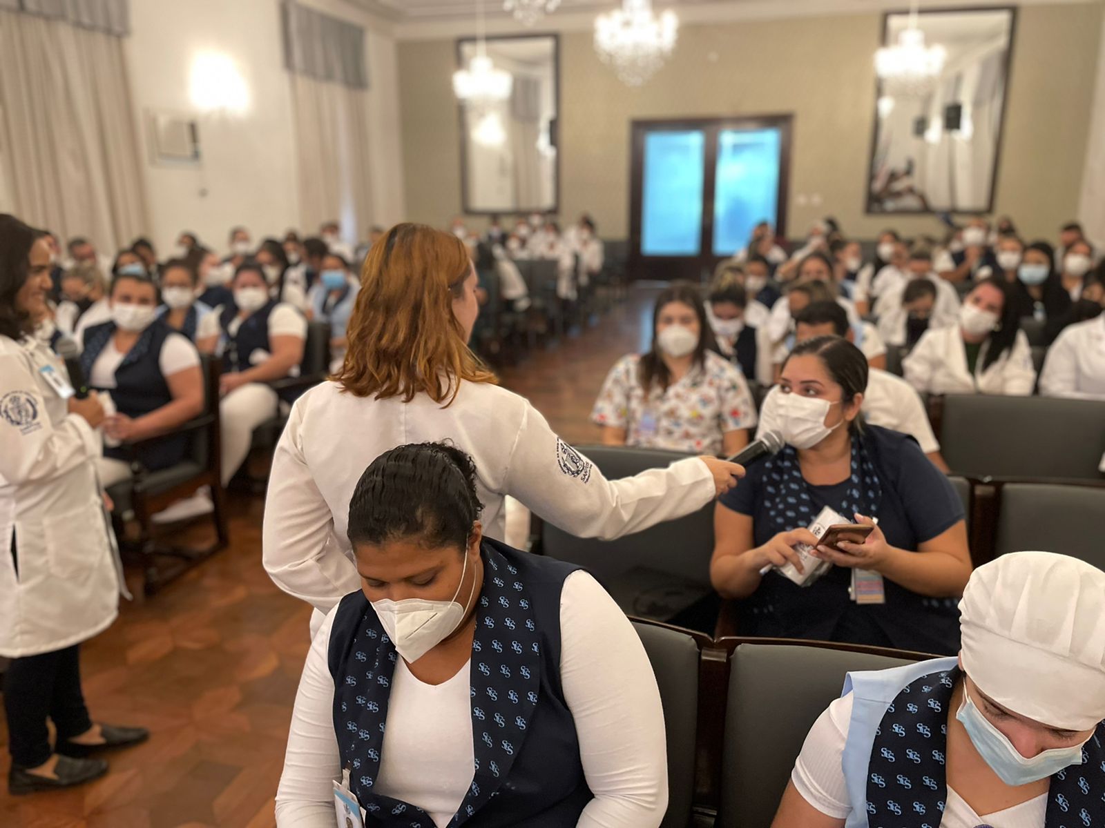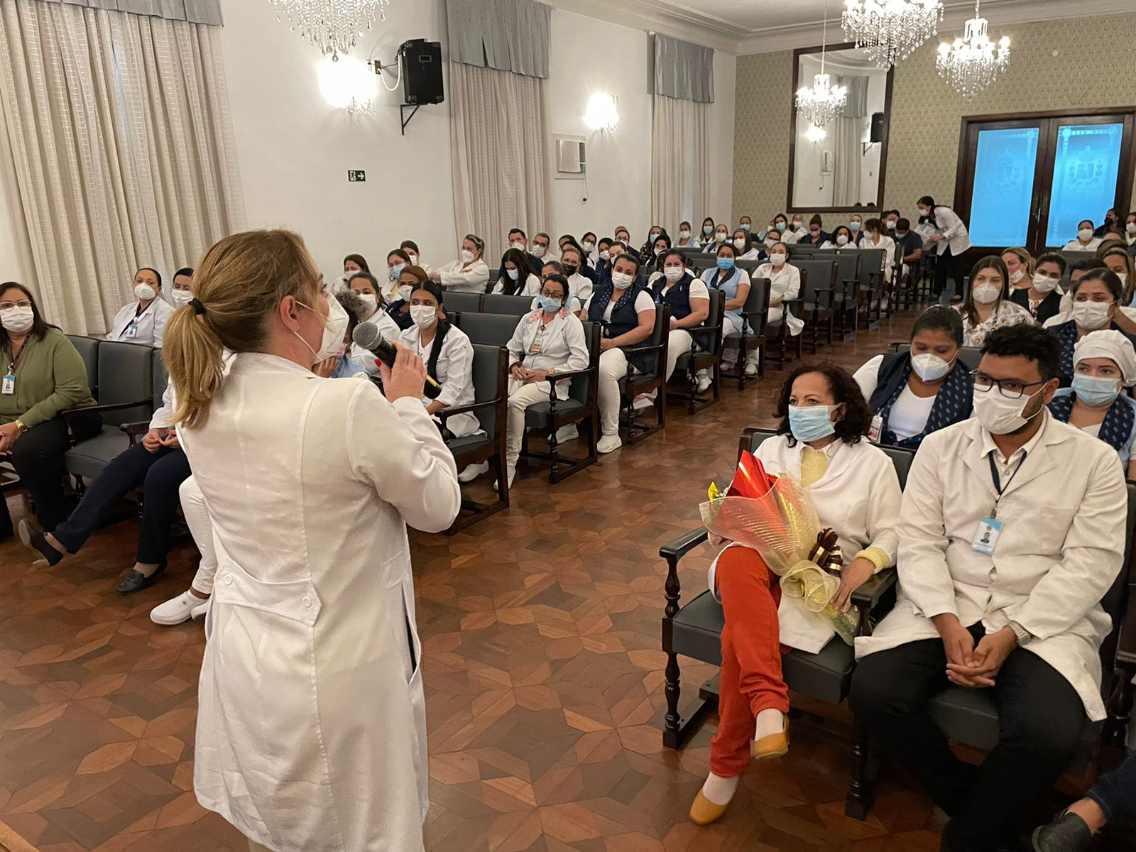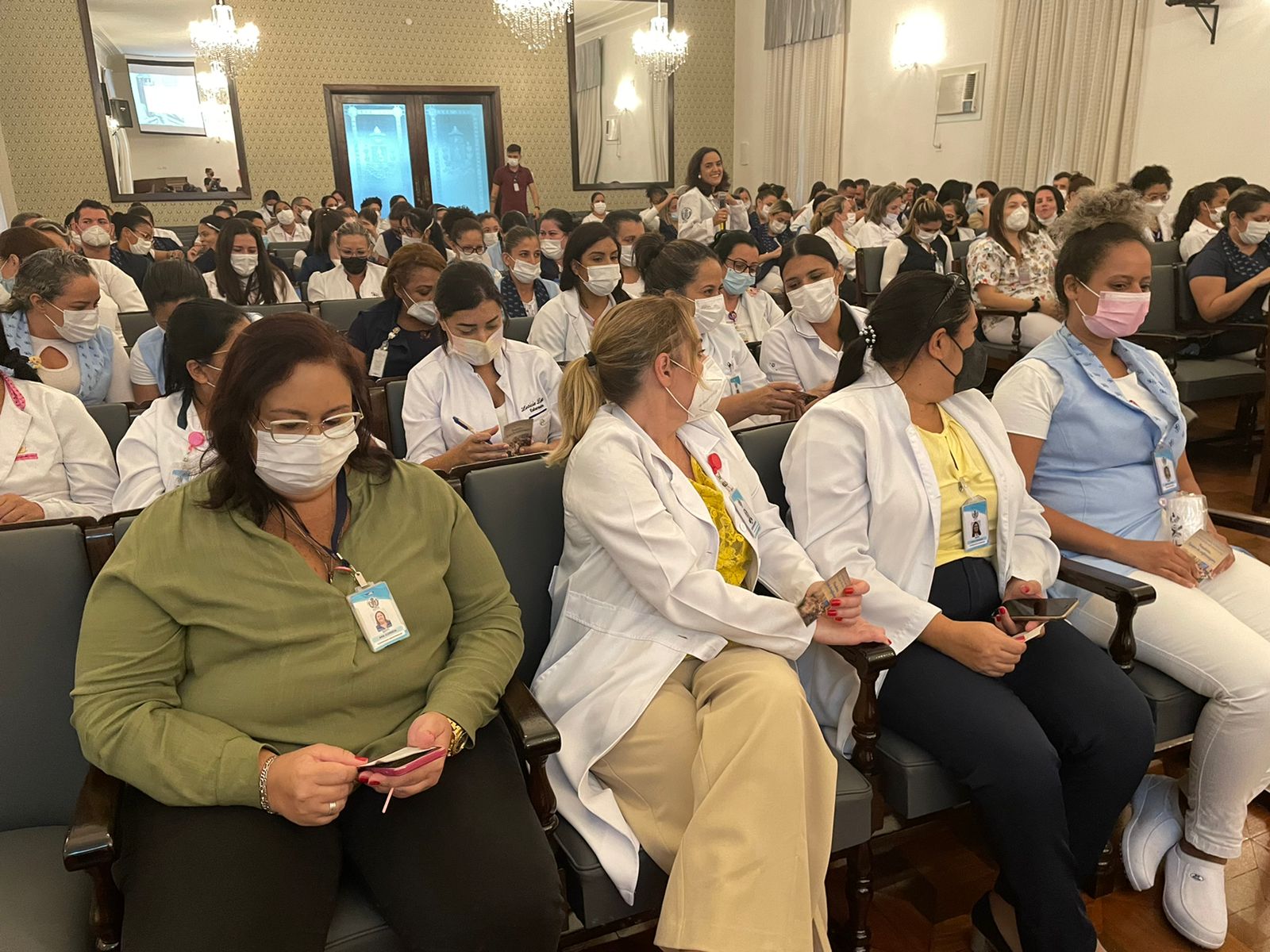 A gerente de Enfermagem, Enfª. Alessandra Conceição Roberto Manetta, também parabenizou toda a equipe pela dedicação e envolvimento na profissão, e anunciou o lançamento do vídeo feito em homenagem a todos os profissionais de enfermagem, produzido pela equipe de Comunicação da Santa Casa de Santos.