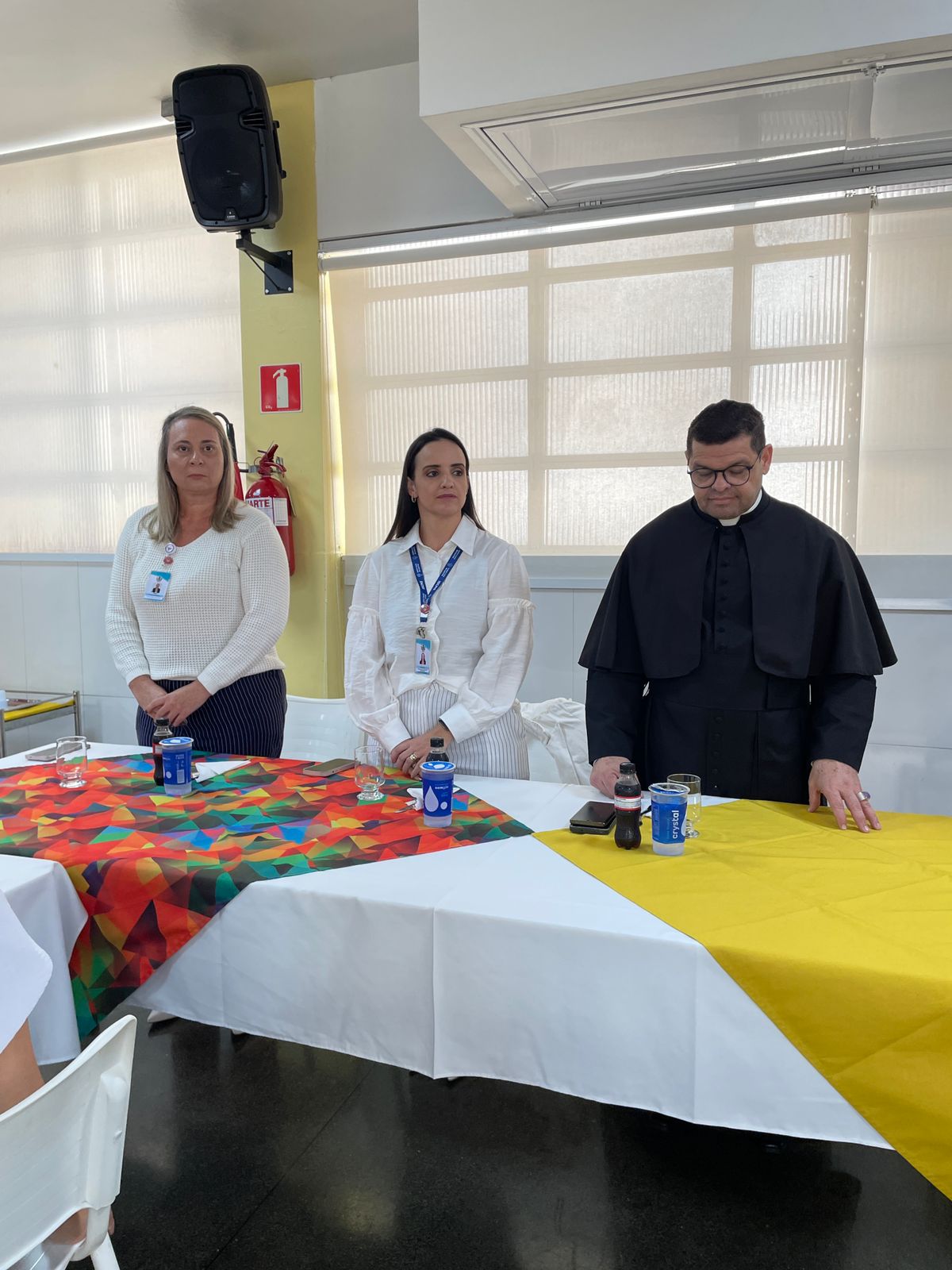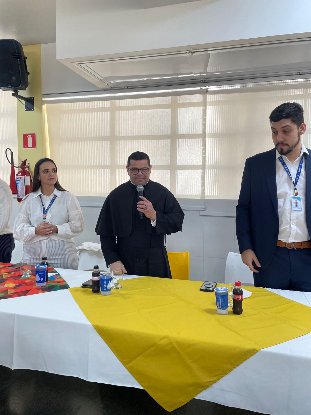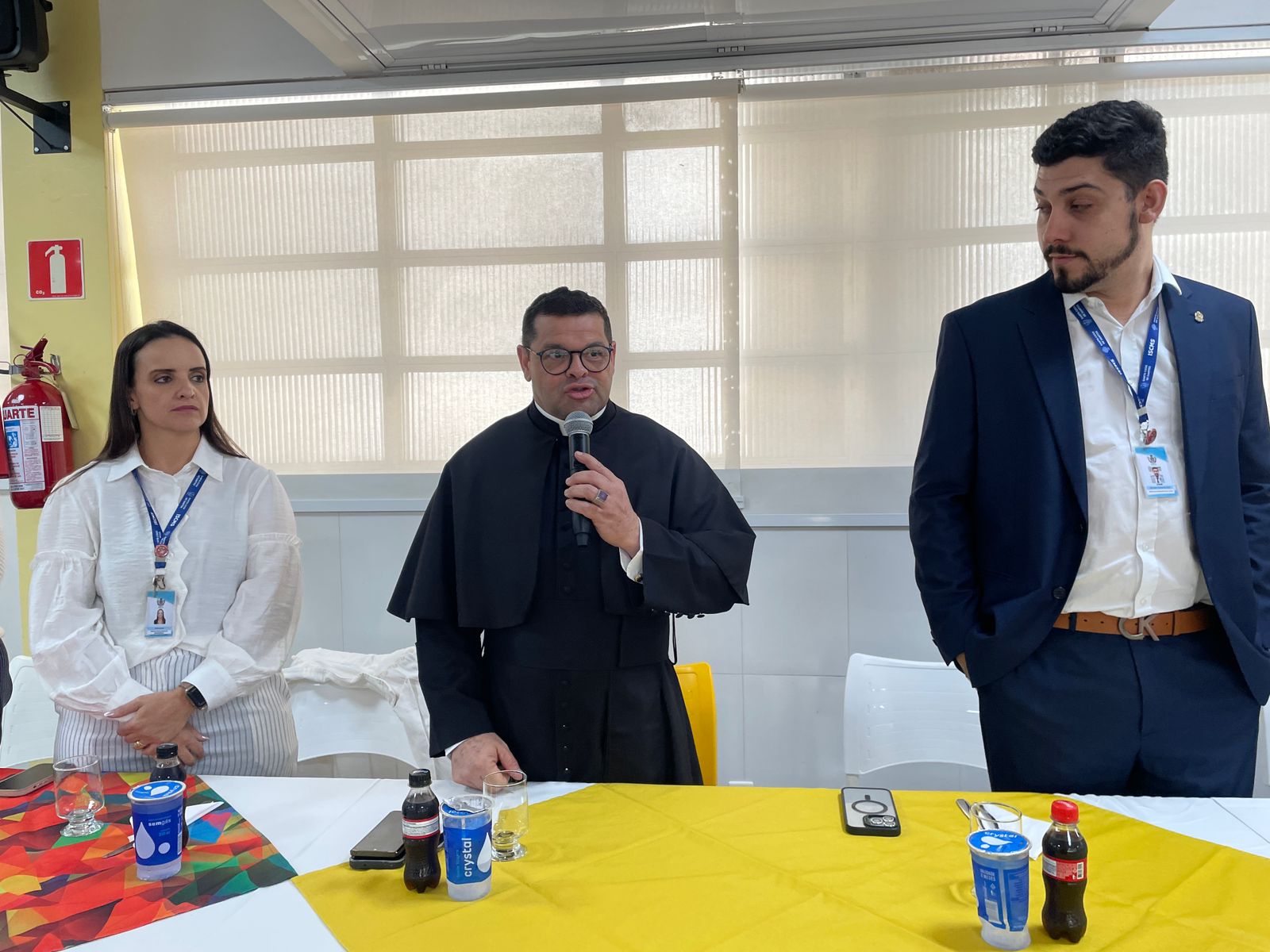O vice provedor Carlos Teixeira Filho fez um discurso destacando o envolvimento dos colaboradores no crescimento da instituição. O Padre Denilson abençoou a hora da refeição.