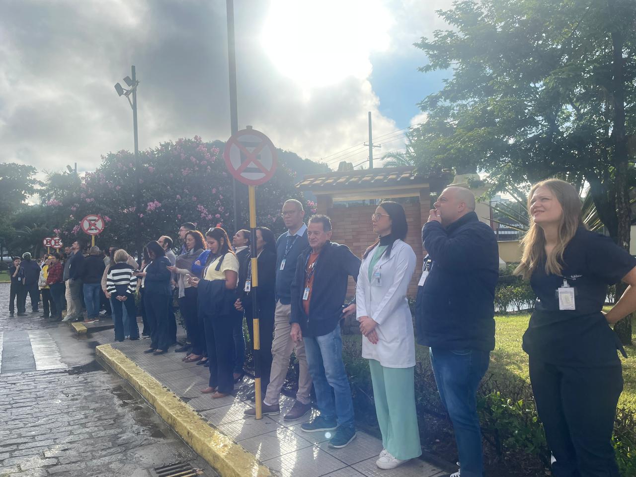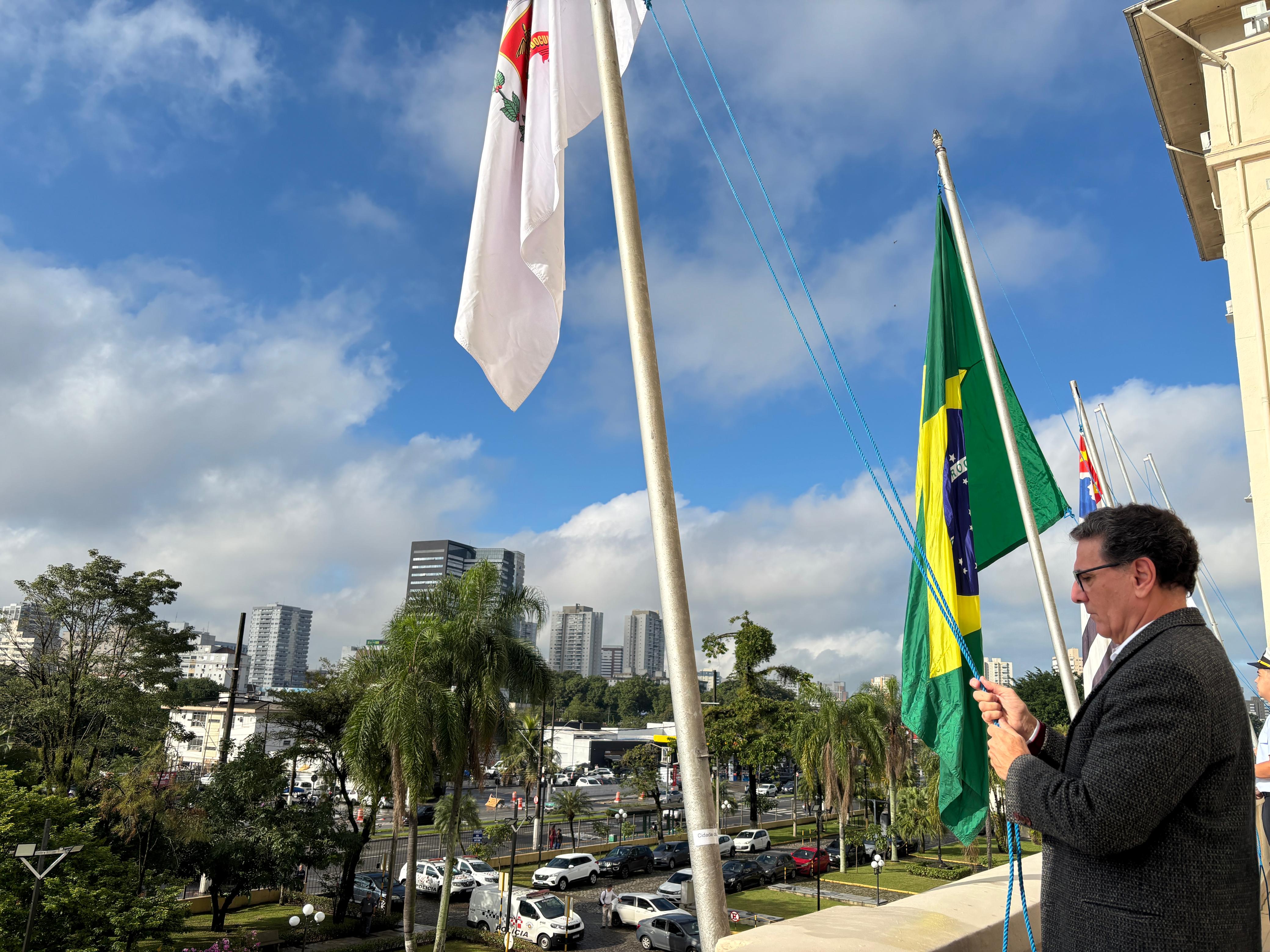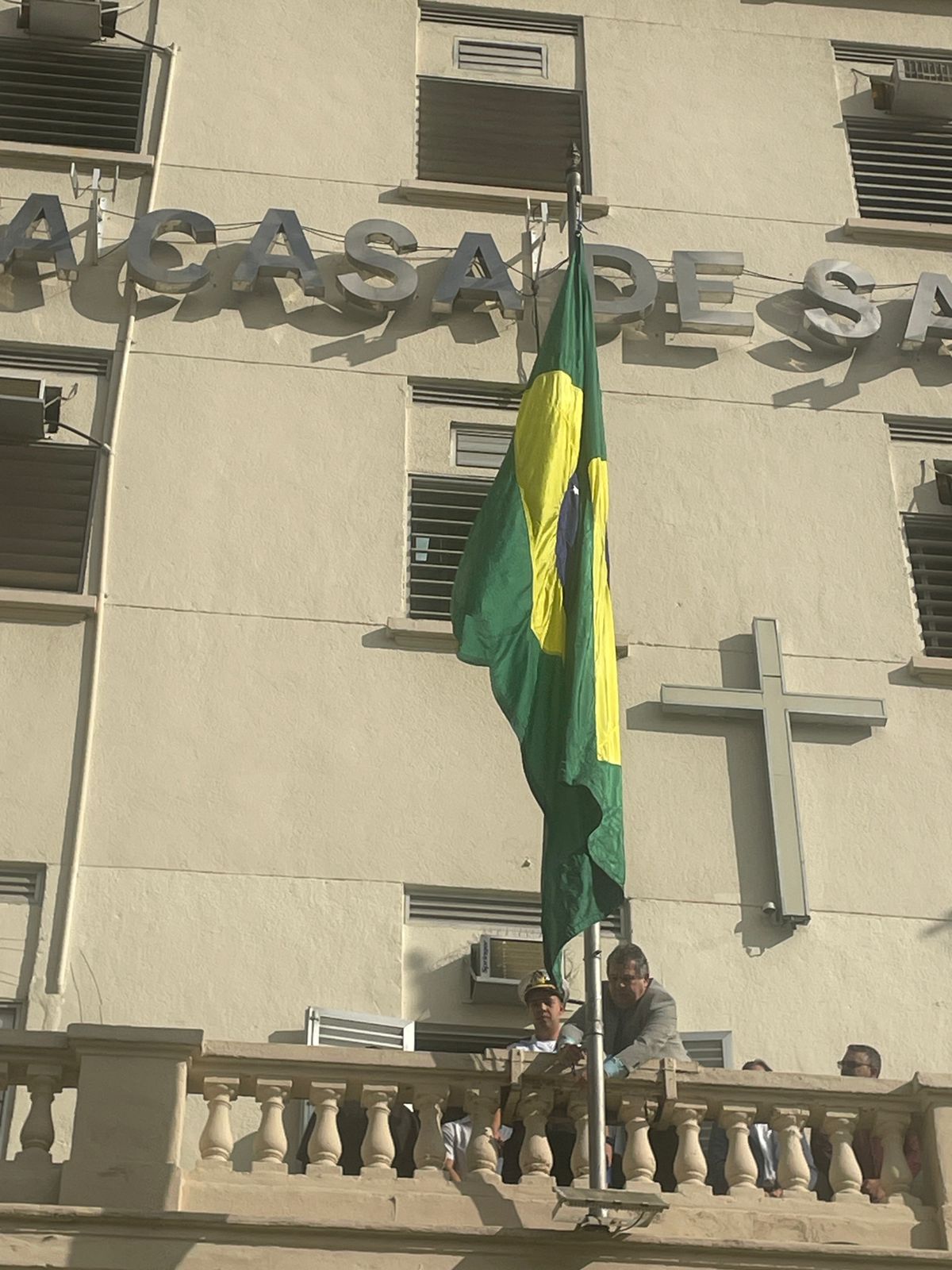 Da sacada da Santa Casa, gestores e membros da Mesa Administrativa realizaram o hasteamento das bandeiras, conforme segue: Representando o Capitão de Mar e guerra, o 2º Tenente Victor Hugo Santos Vaz Leite (Bandeira Nacional); Tenente João Batista (Bandeira do Estado de São Paulo); representando a prefeitura de Santos, o assessor da Secretaria de Saúde, Braz Antunes Mattos Neto (Bandeira de Santos); o vice-provedor Carlos Teixeira Filho (Bandeira da Santa Casa); Enfª Rita Rocha (Bandeira da Enfermagem); Ana Carolina Costa (Bandeira da Comissão de Controle da Qualidade) e Maria Emília (Bandeira da AVOSC).