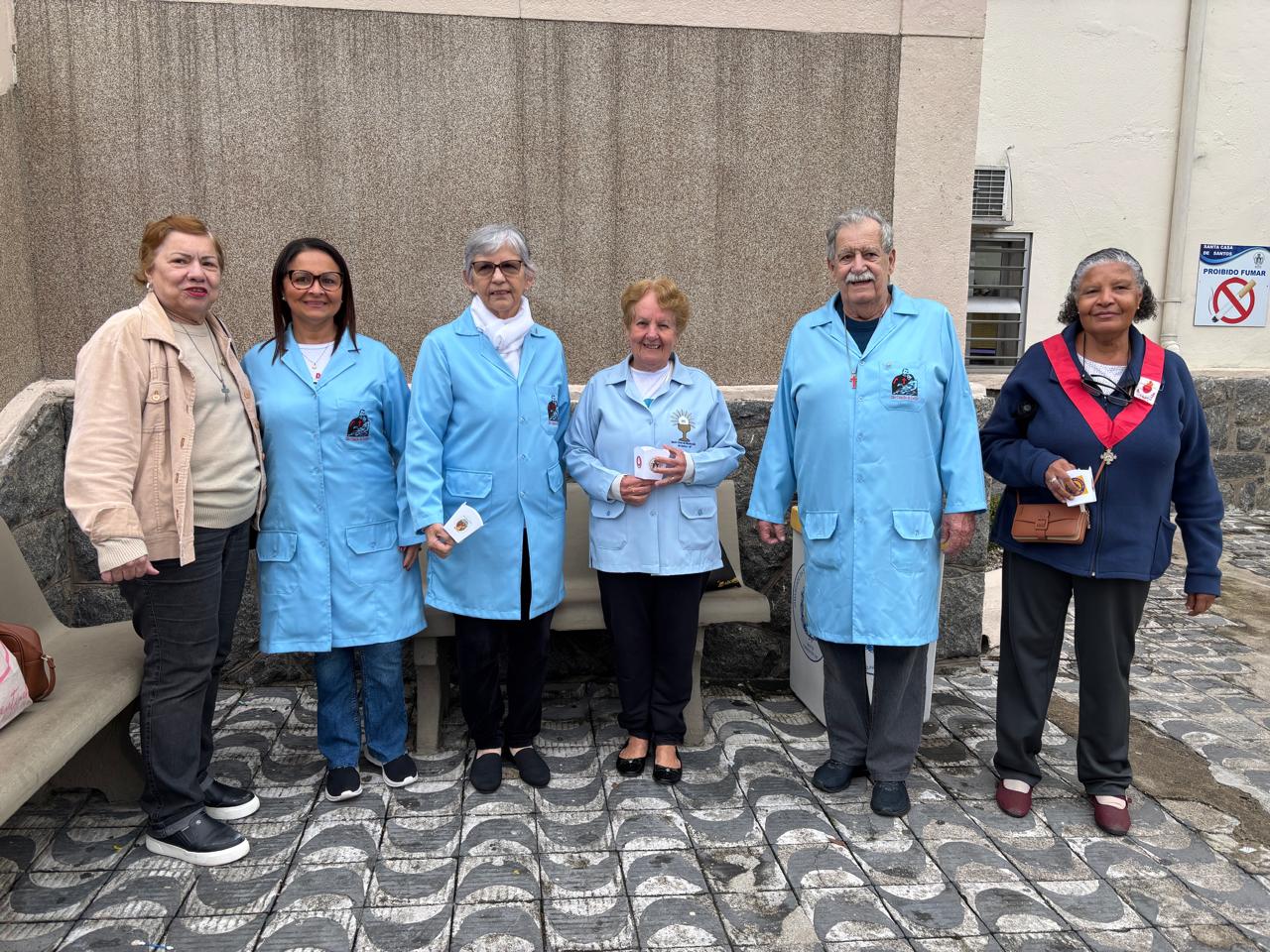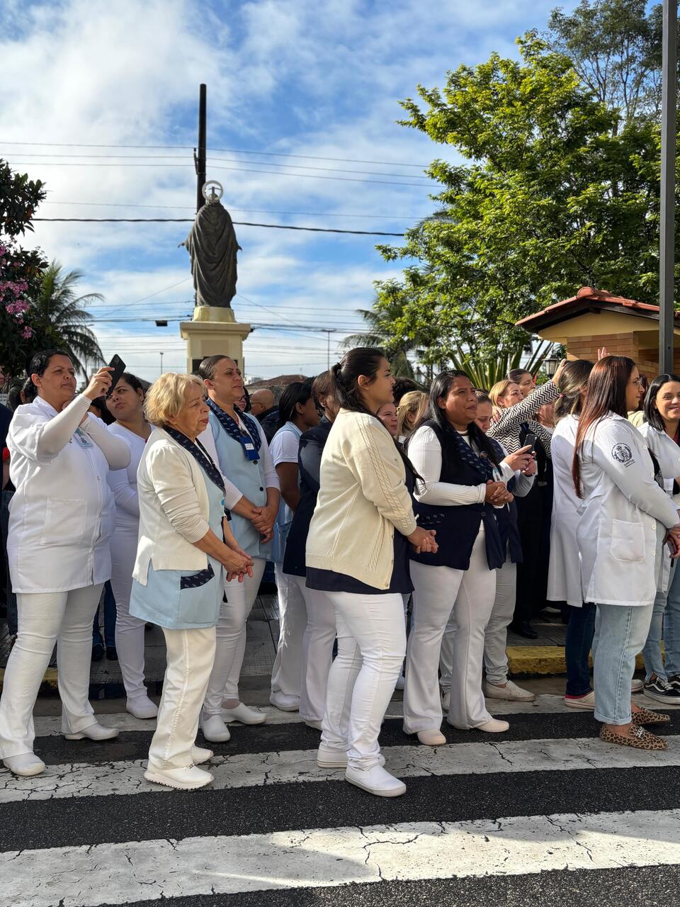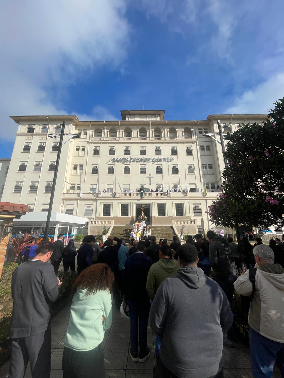 No período da tarde, os voluntários amarelinhos e verdinhos fizeram a distribuição de rosas aos enfermos e, às 16h30, aconteceu a procissão luminosa, saindo da frente da Santa Casa de Santos rumo à Capela Santa Isabel.