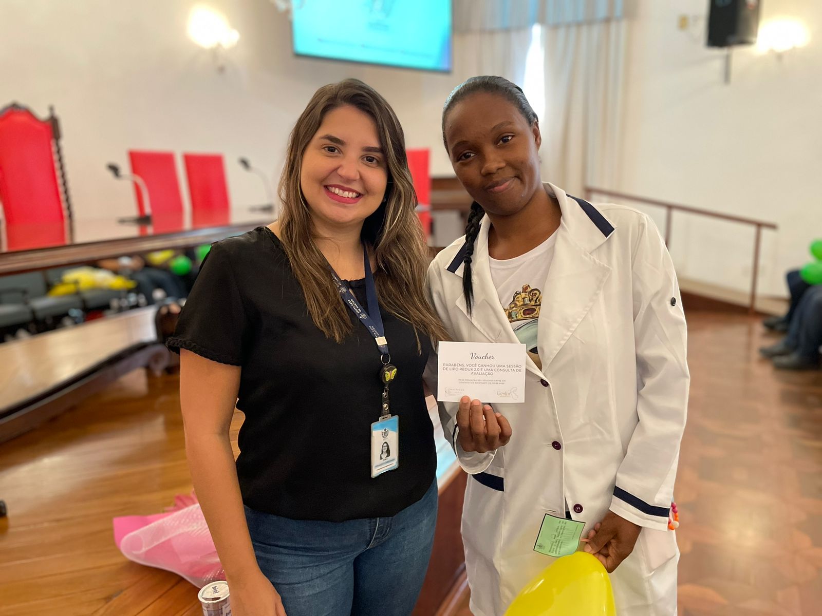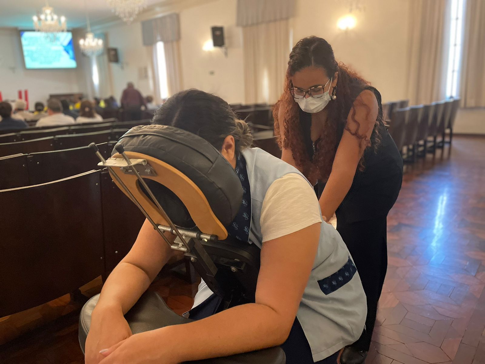 Durante todo o período do evento, a massoterapeuta Alessandra Santos, que também é cipeira e profissional de enfermagem da instituição, realizou sessões de massagem nos participantes do evento.
