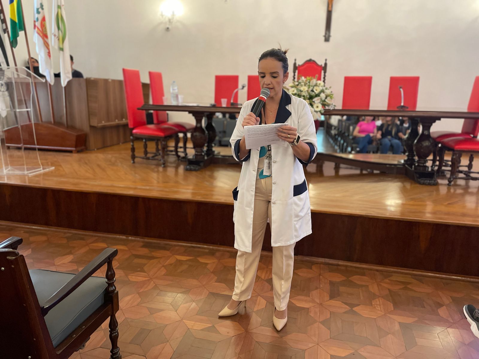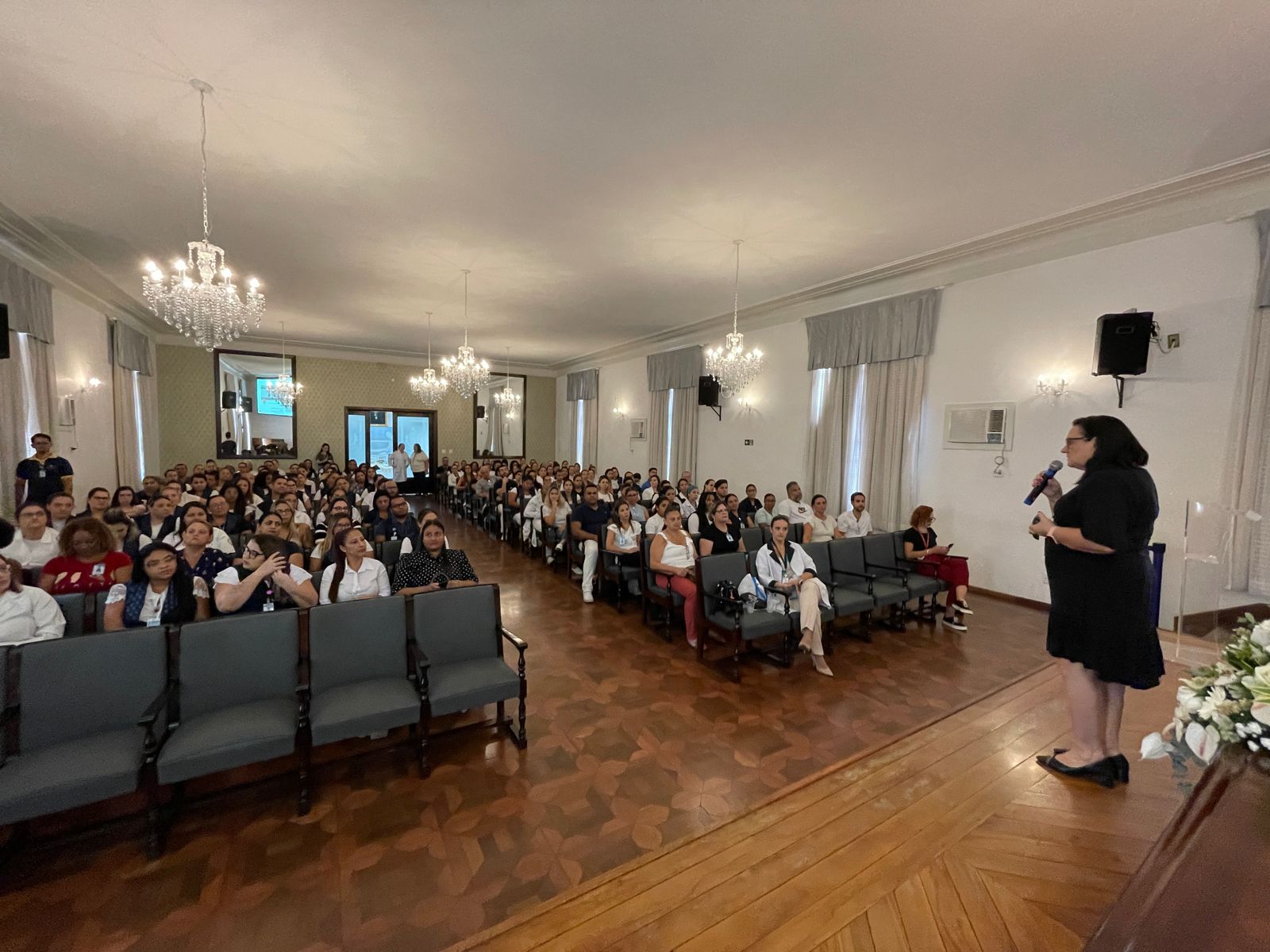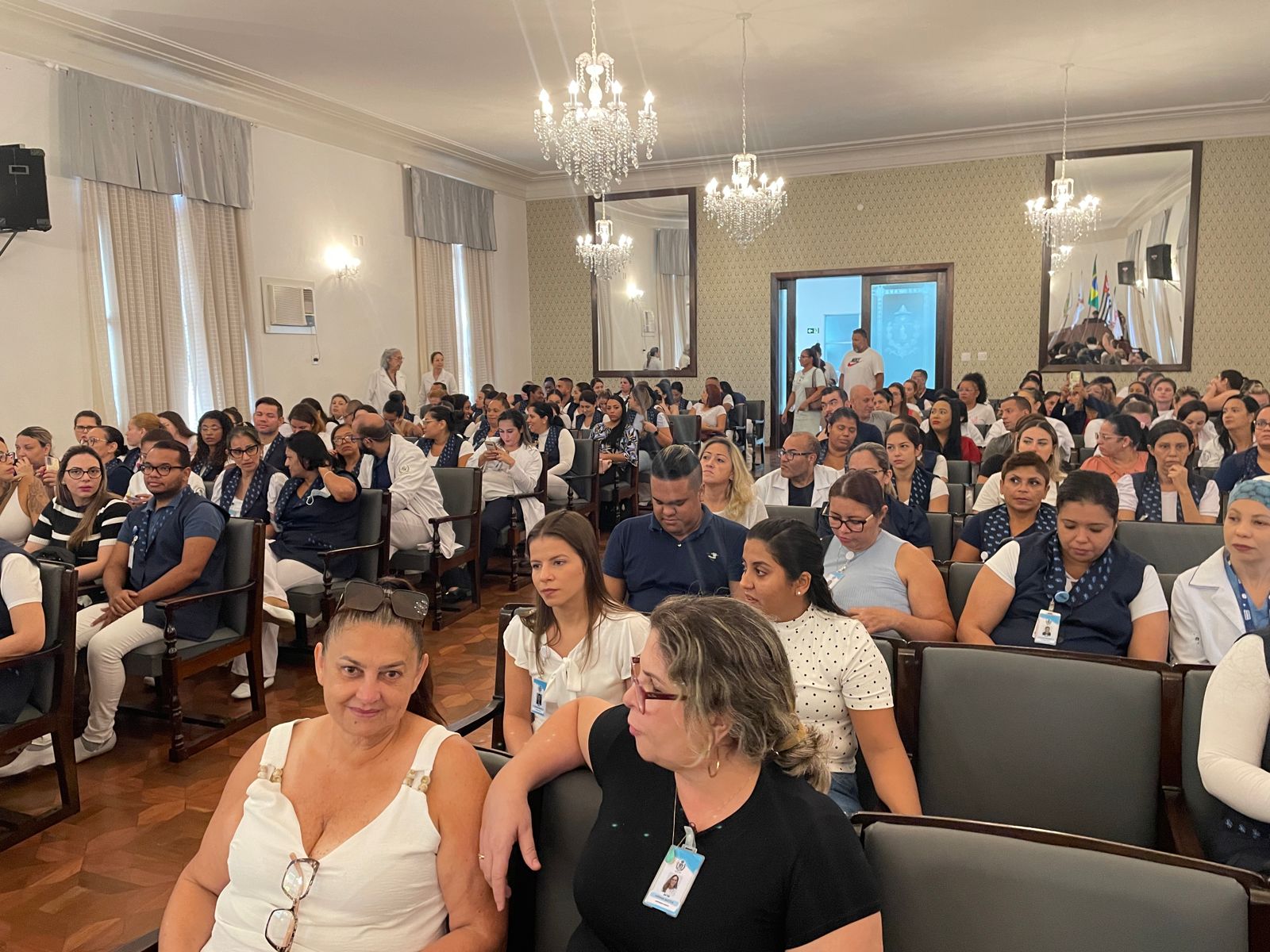 Rita Rocha aproveitou a oportunidade para falar de alguns projetos, como o retorno da folga de aniversário, que beneficiava colaboradores assíduos, mencionando como exemplo o enfermeiro Gilberto, o qual possui um histórico funcional admirável, sem nenhum afastamento nos últimos 5 anos.