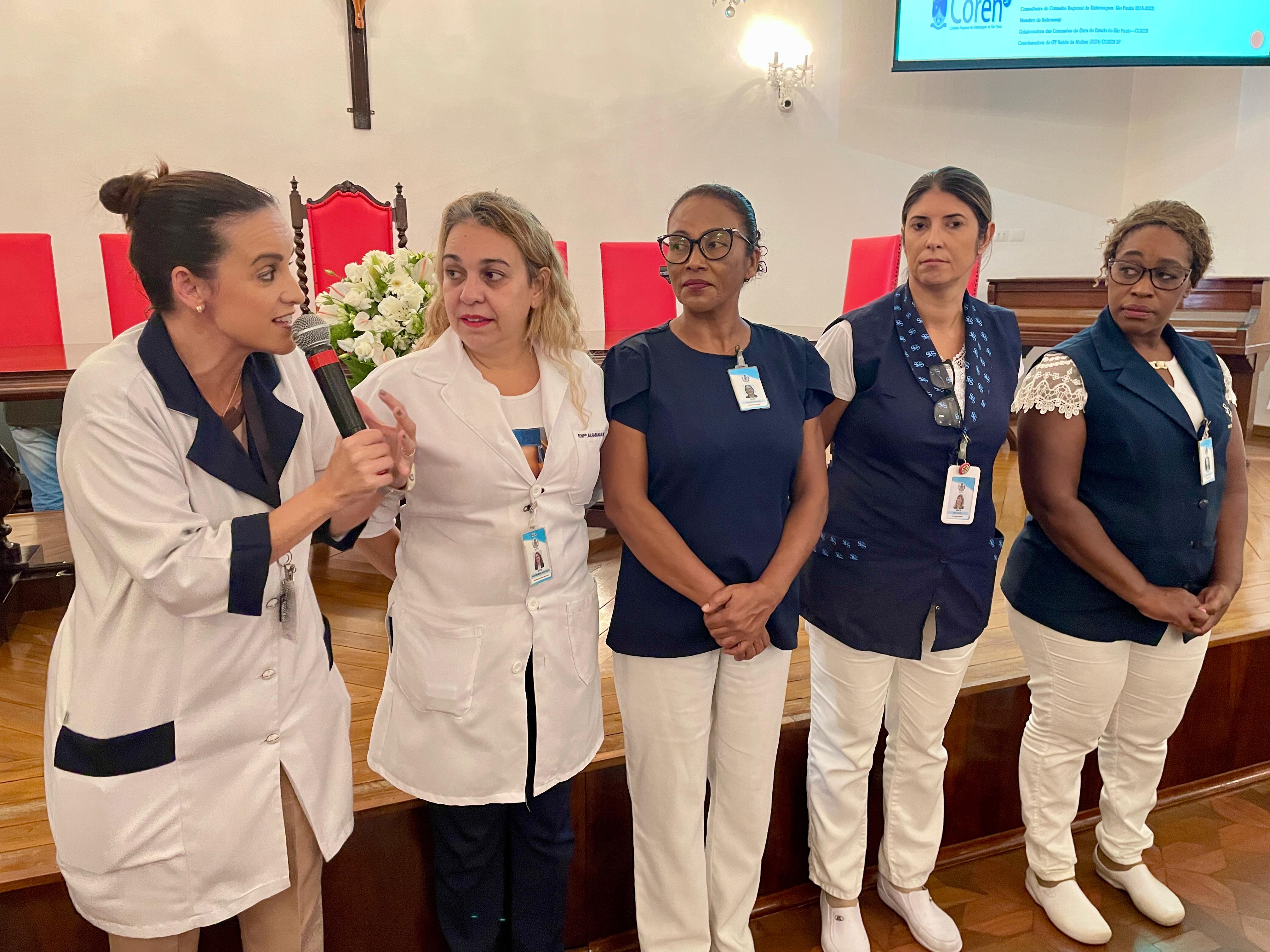 No dia 17/4, a nova gestão da enfermagem da Santa Casa de Santos promoveu uma palestra sobre a Resolução COFEN 736, ministrada pela enfermeira do COREN, Ivete Trotti, especialista em Qualidade em Saúde e Segurança do Paciente.